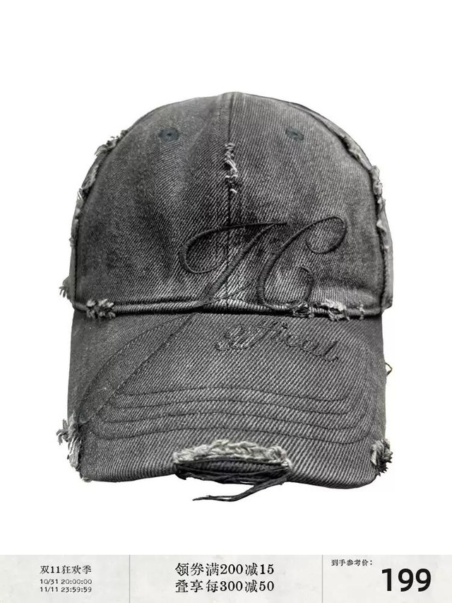 [JCAESAR STUDIO] Dirty Peaked Cap - Distressed Embroidered Long-brim Cap