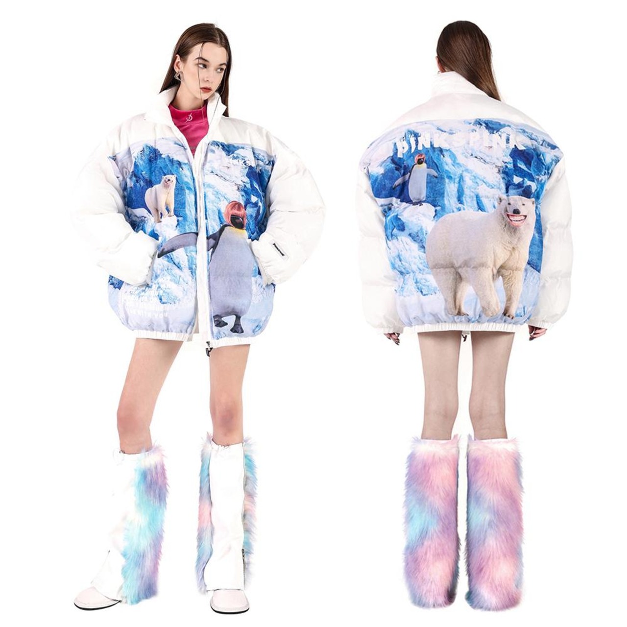 [PINKSPINK] Fur Leg Warmers With Zipper And Furry Splicing