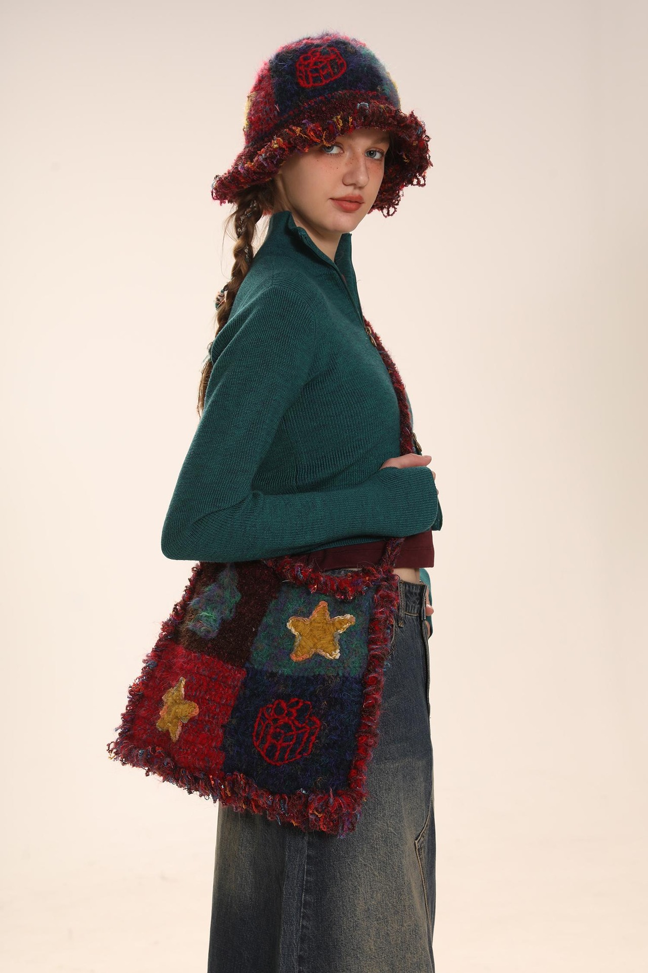 [moromoro2] Hand-stitched Jacquard Knitted Crossbody Bag | creeptrey