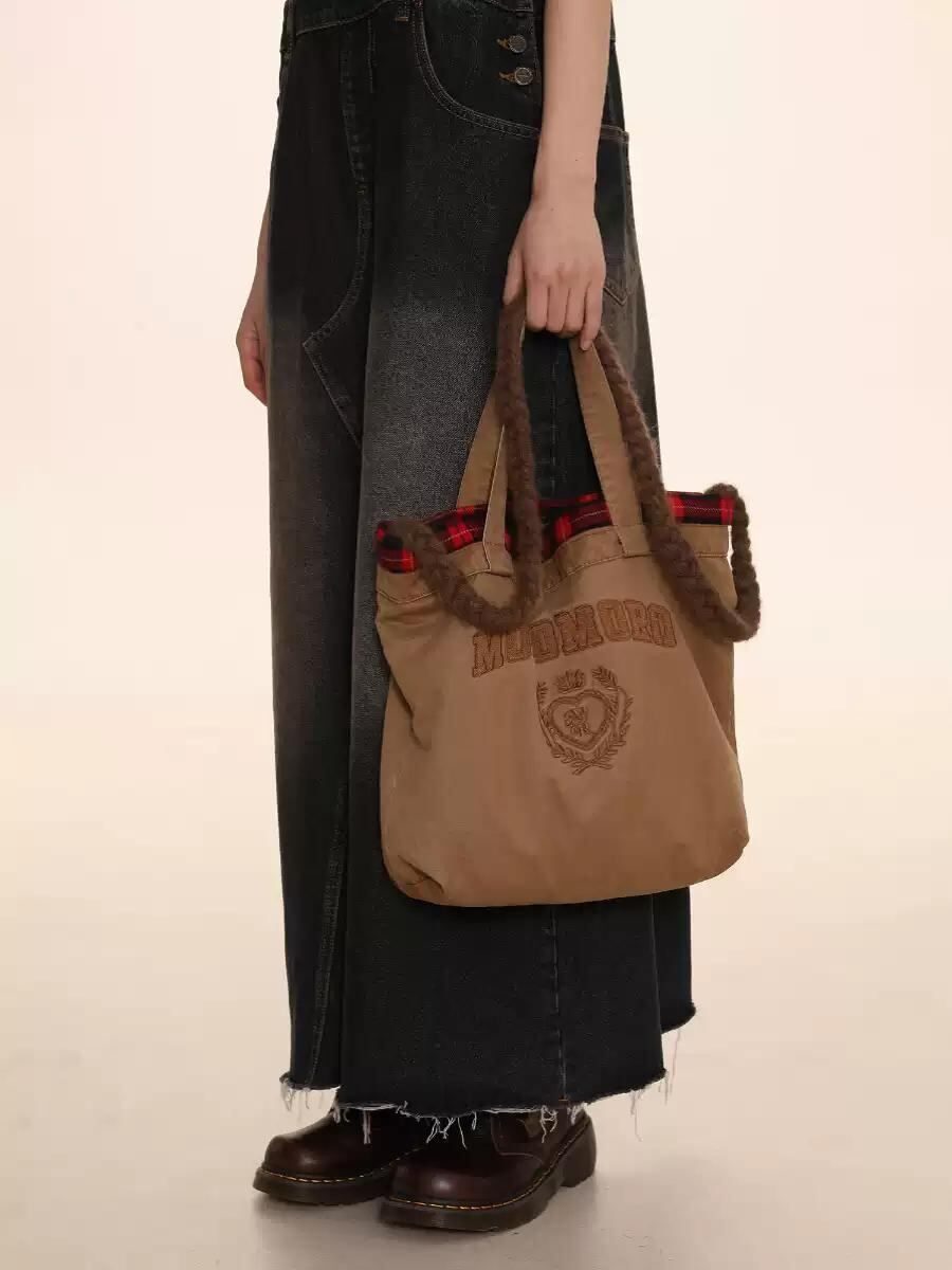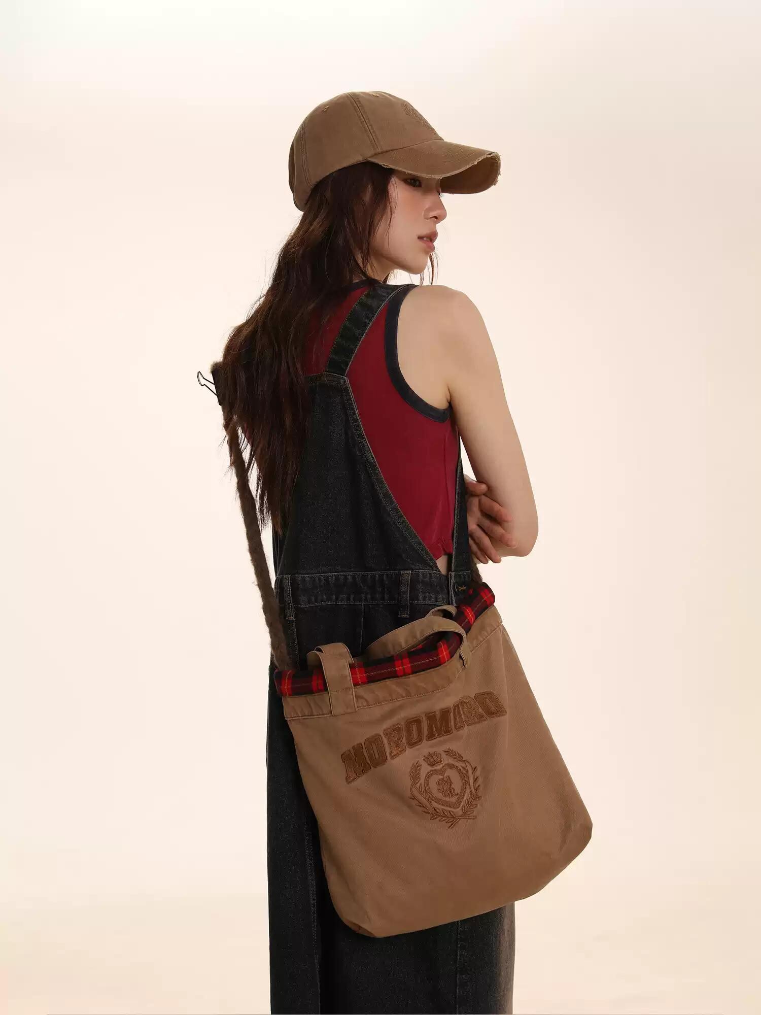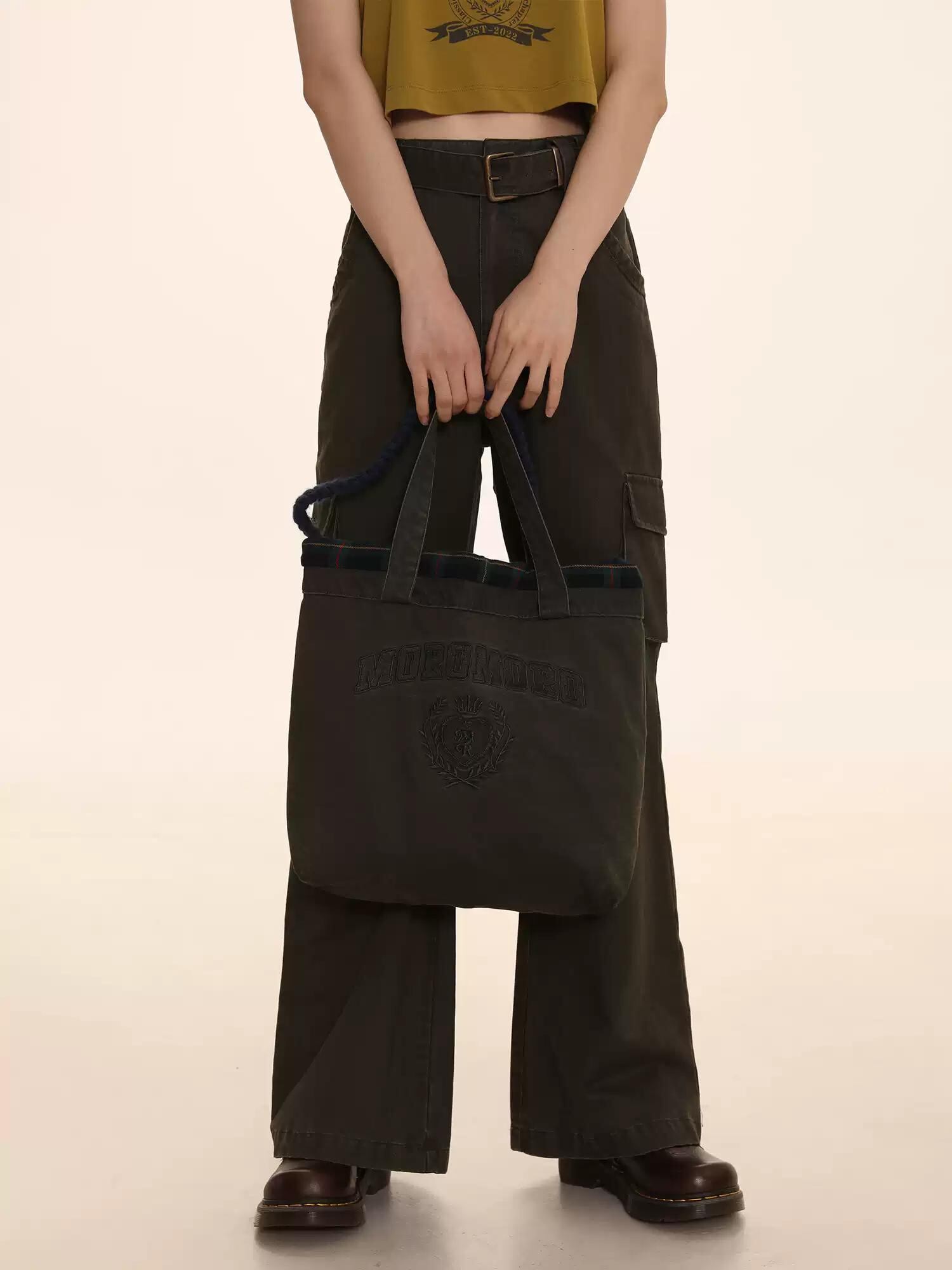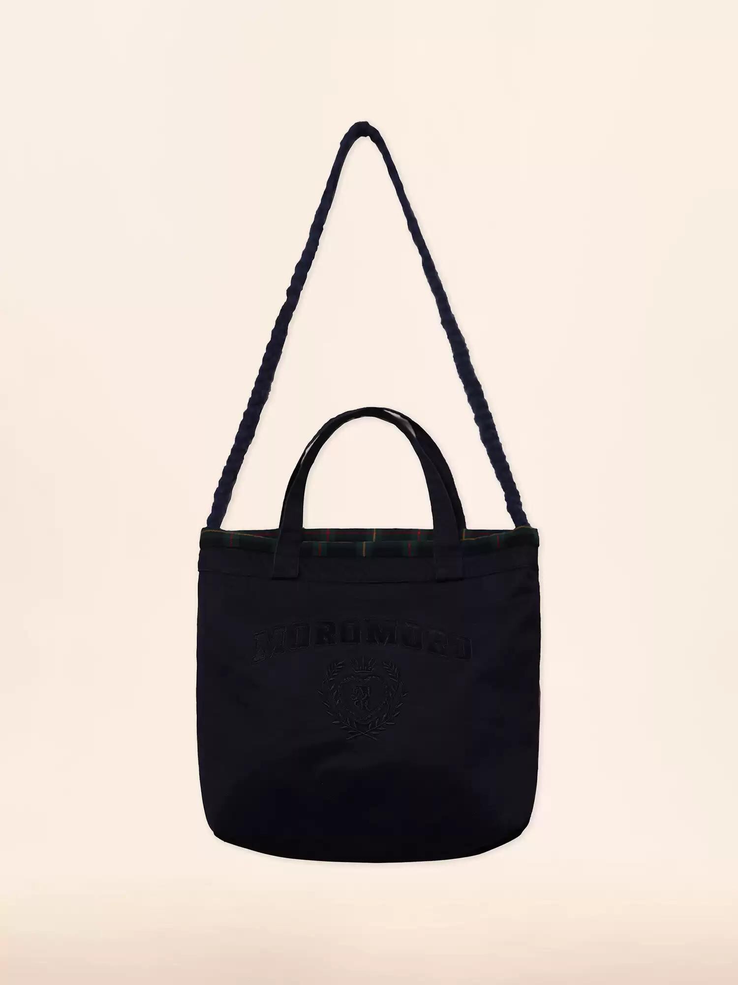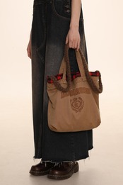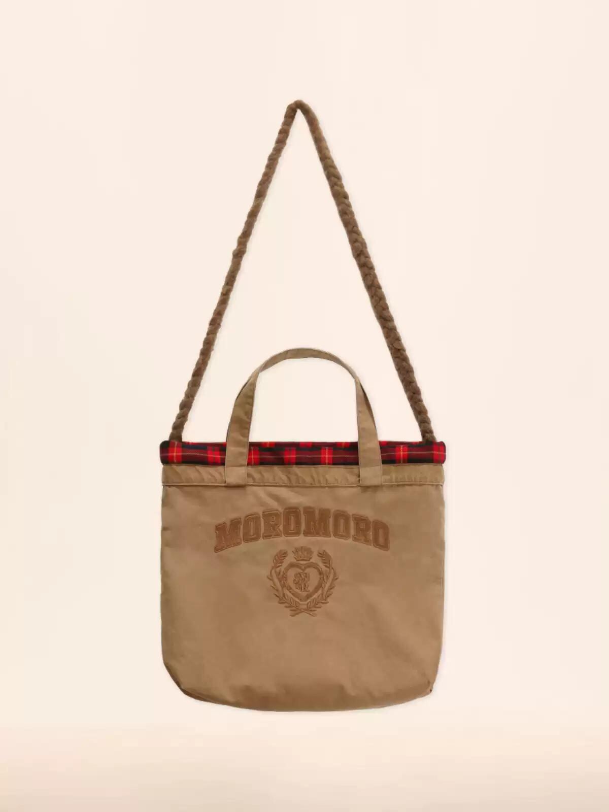 [moromoro2] College Embroidery Plaid Cotton Tote Bag | creeptrey