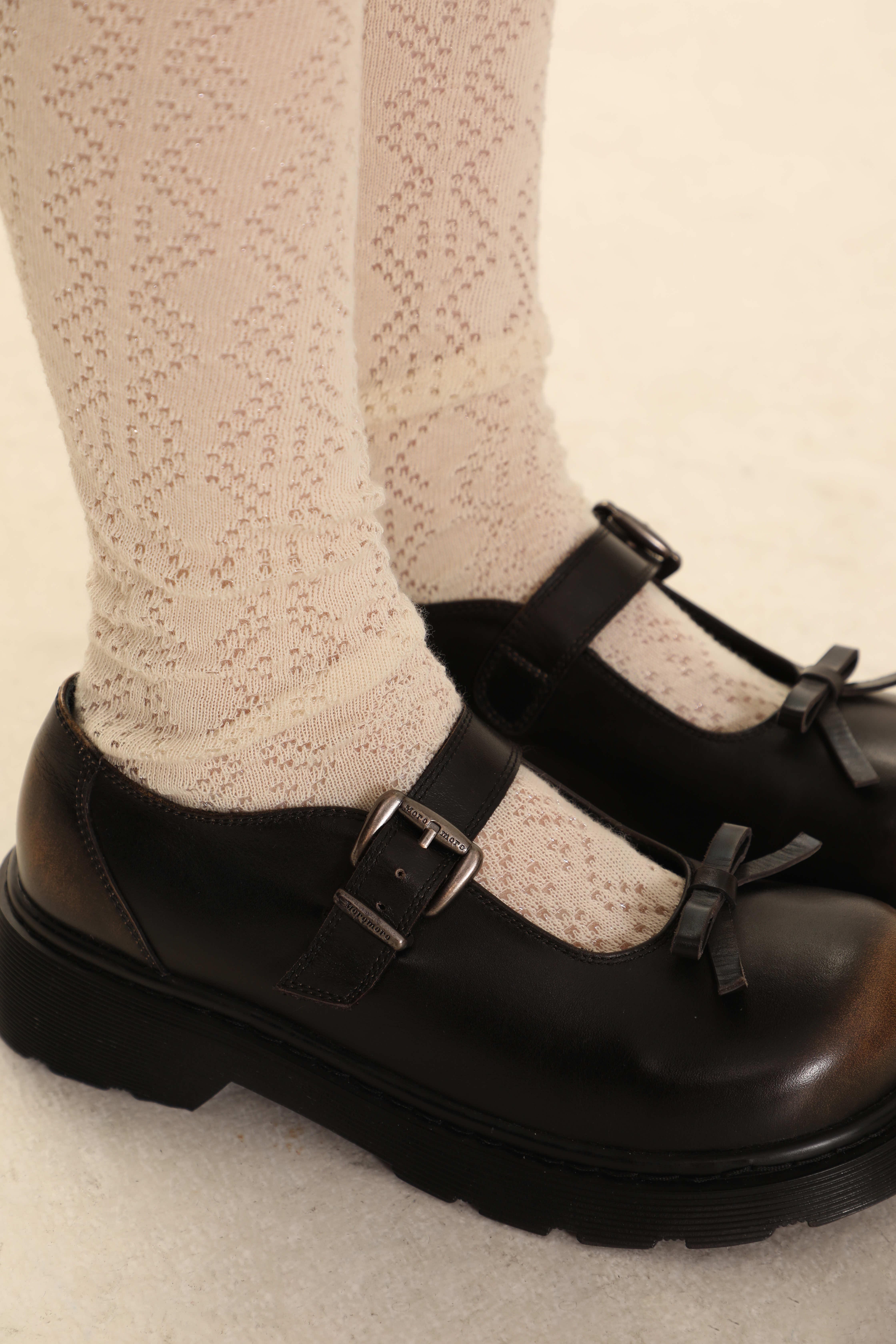 [moromoro2] Lace Trim Diamond Pattern Knee-high Socks