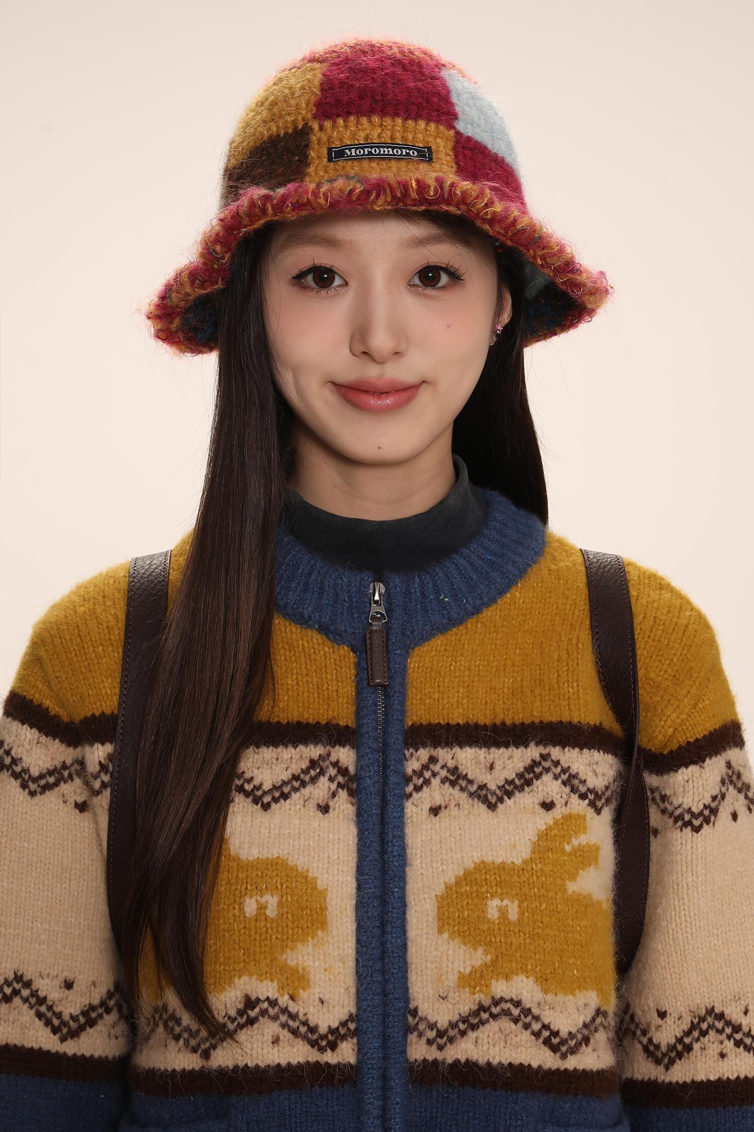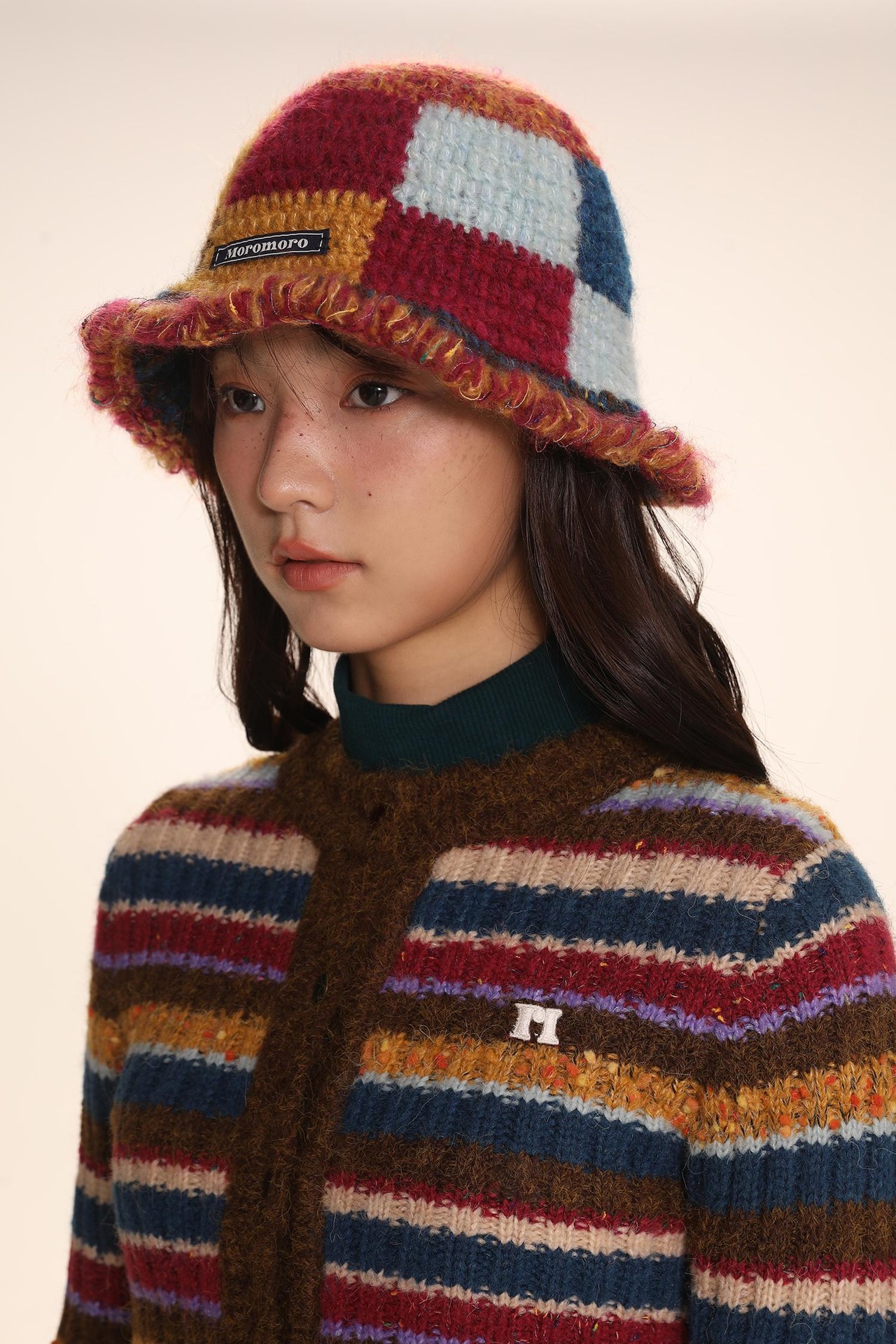 [moromoro2] Hand-crocheted Colorful Checkered Bucket Hat | creeptrey