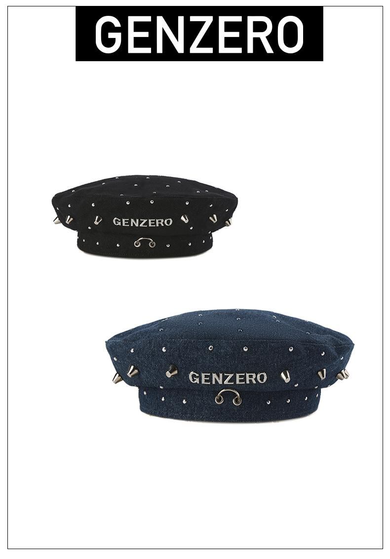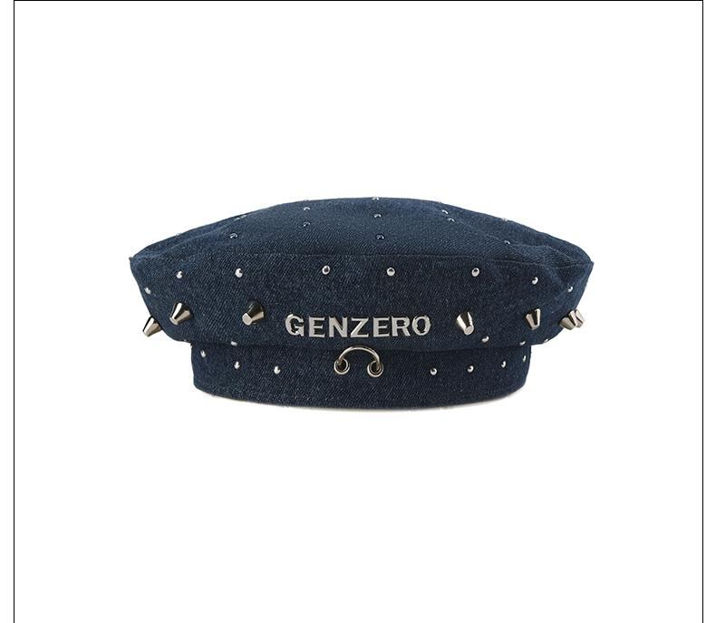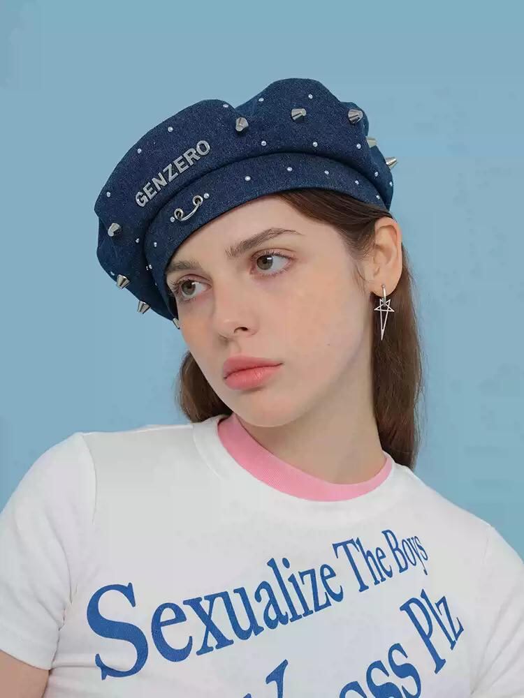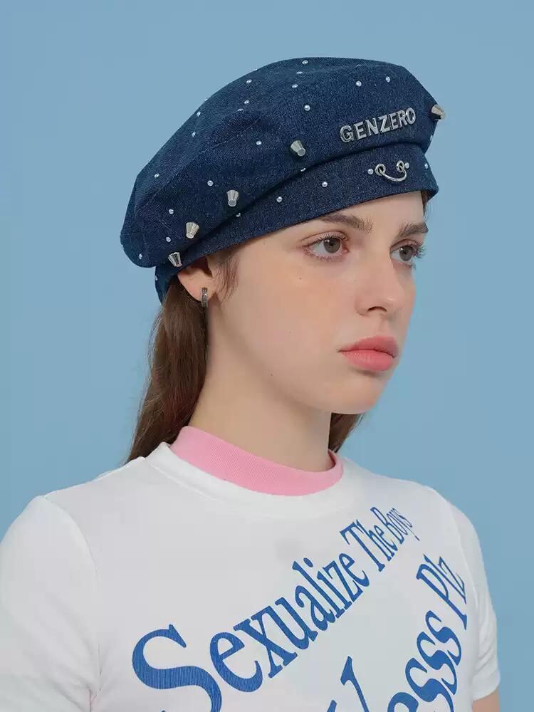 [GENZERO] Denim Rhinestone Rivet Beret | creeptrey
