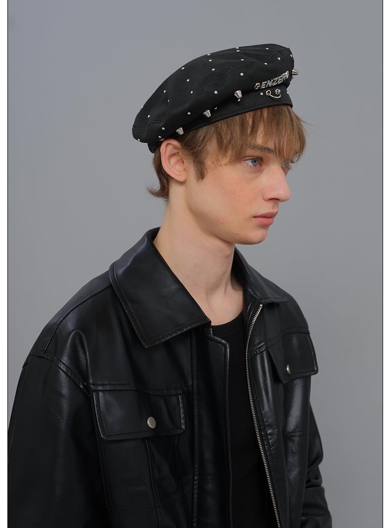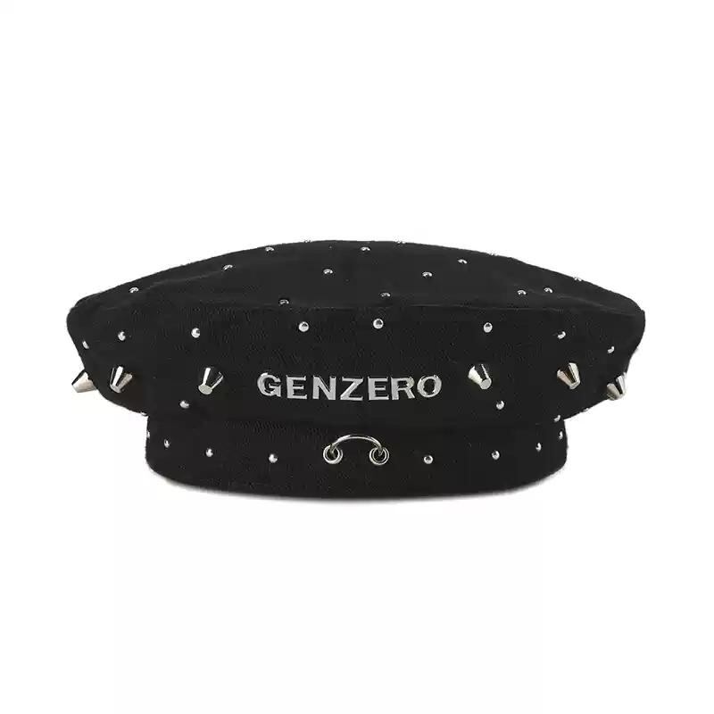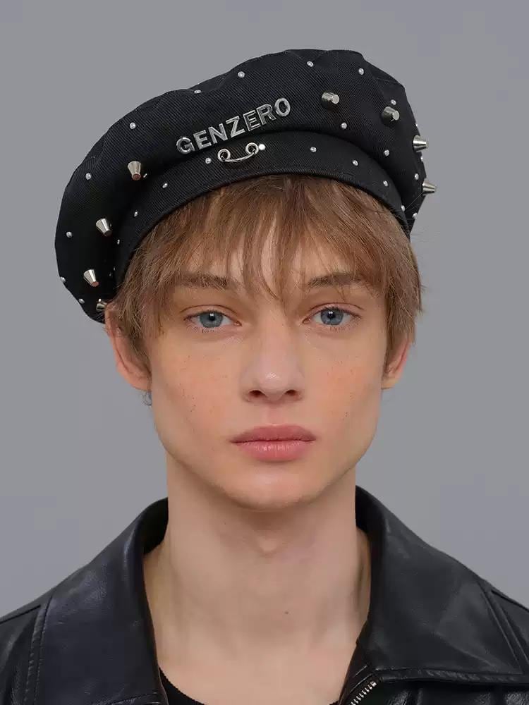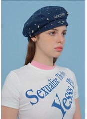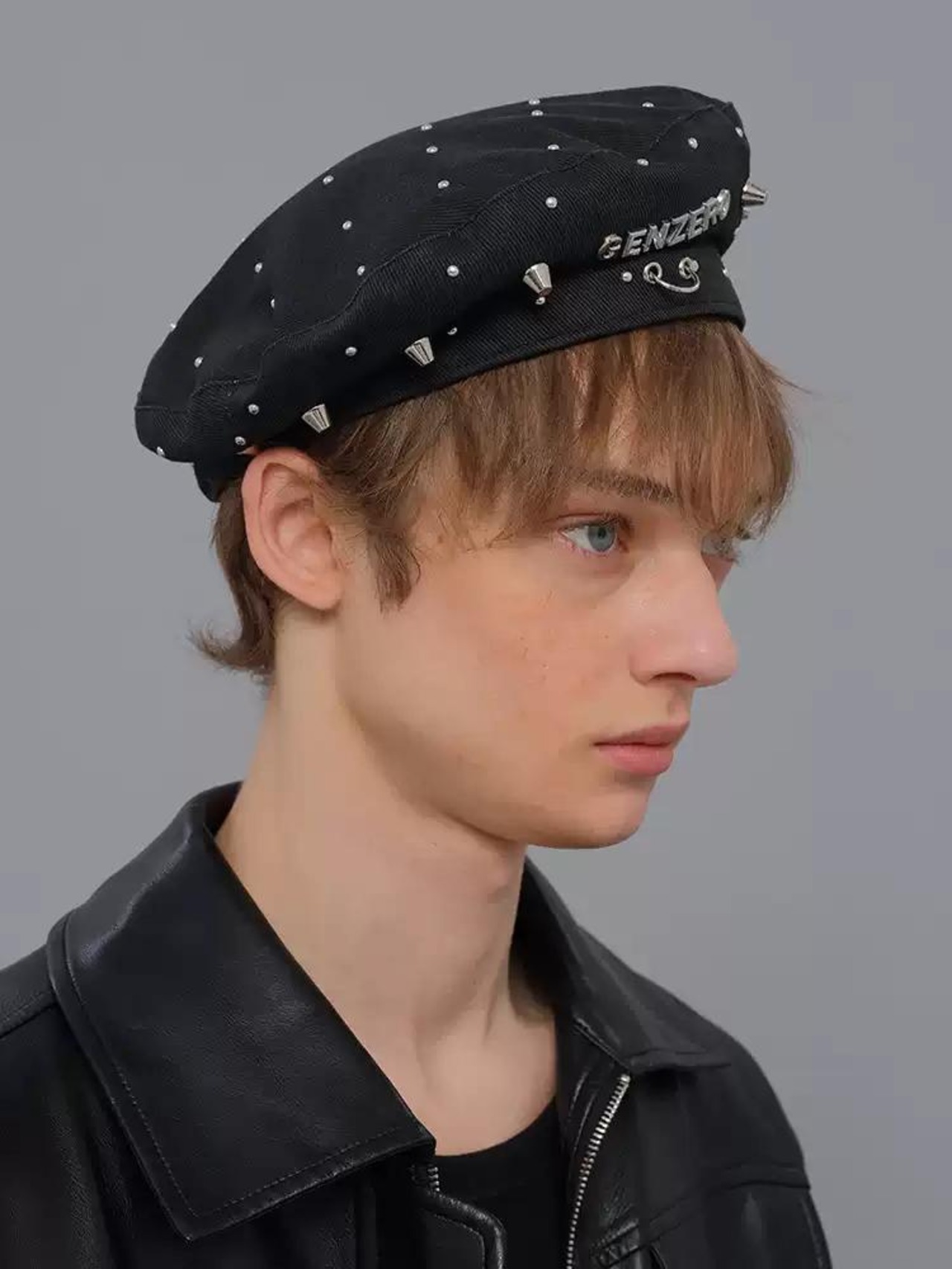 [GENZERO] Denim Rhinestone Rivet Beret | creeptrey