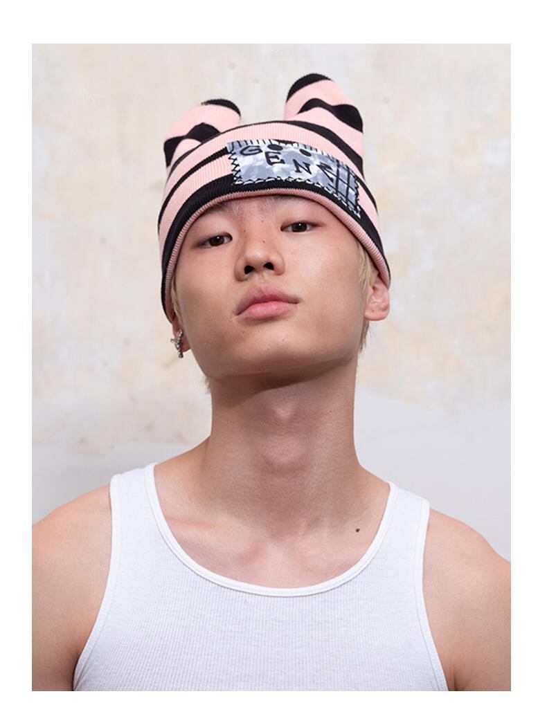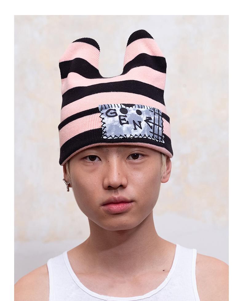 [GENZERO] Striped Knit Ear Hat | creeptrey