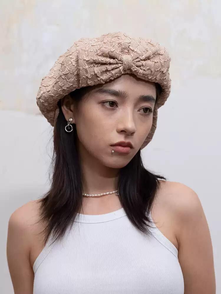 [GENZERO] Embossed Bow Beret | creeptrey