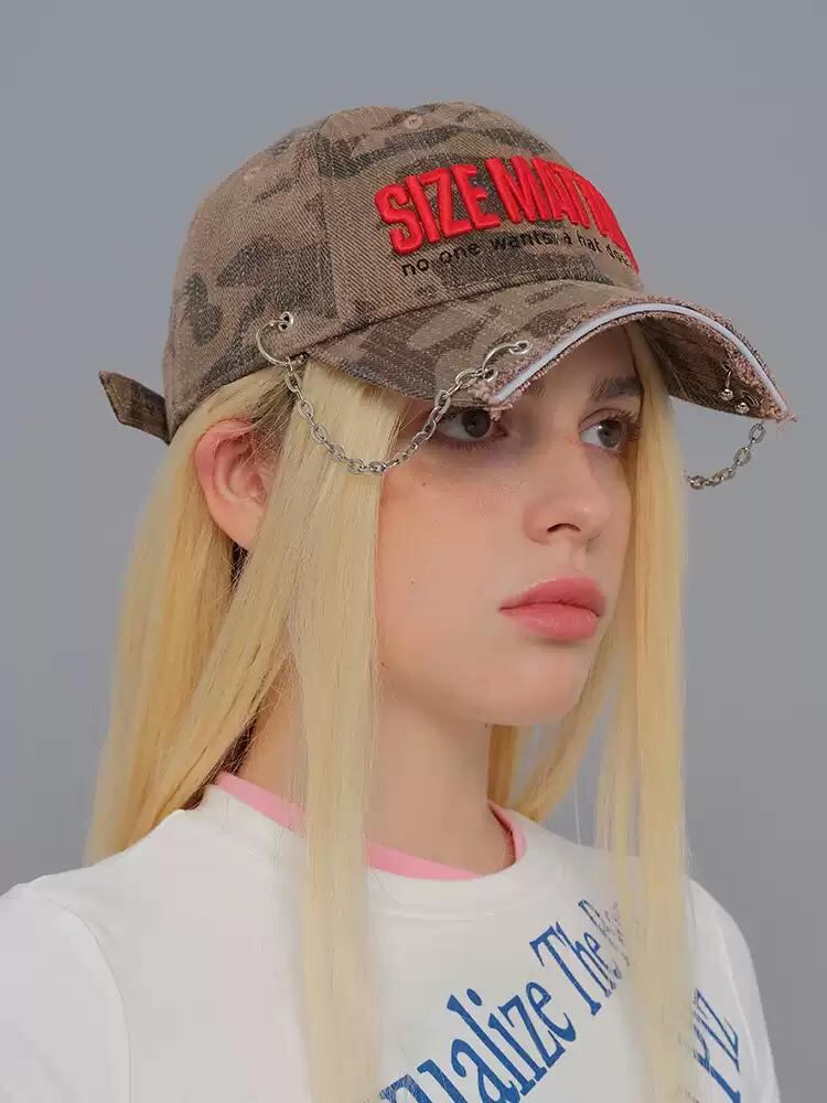 [GENZERO] Embroidered Chain Half-Brim Baseball Cap