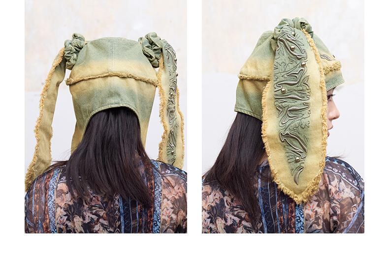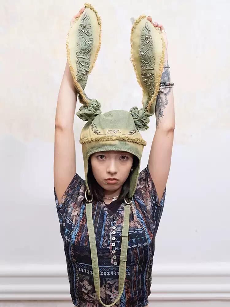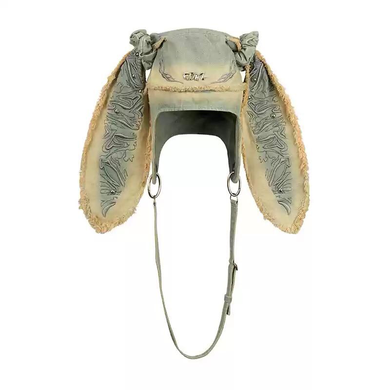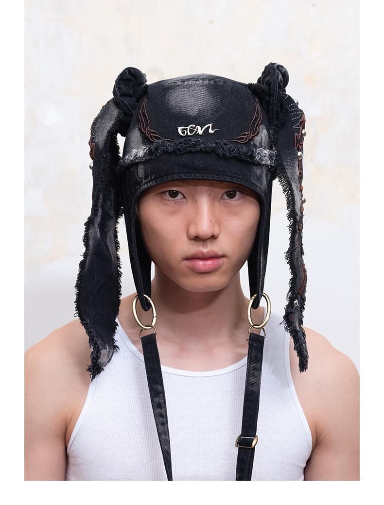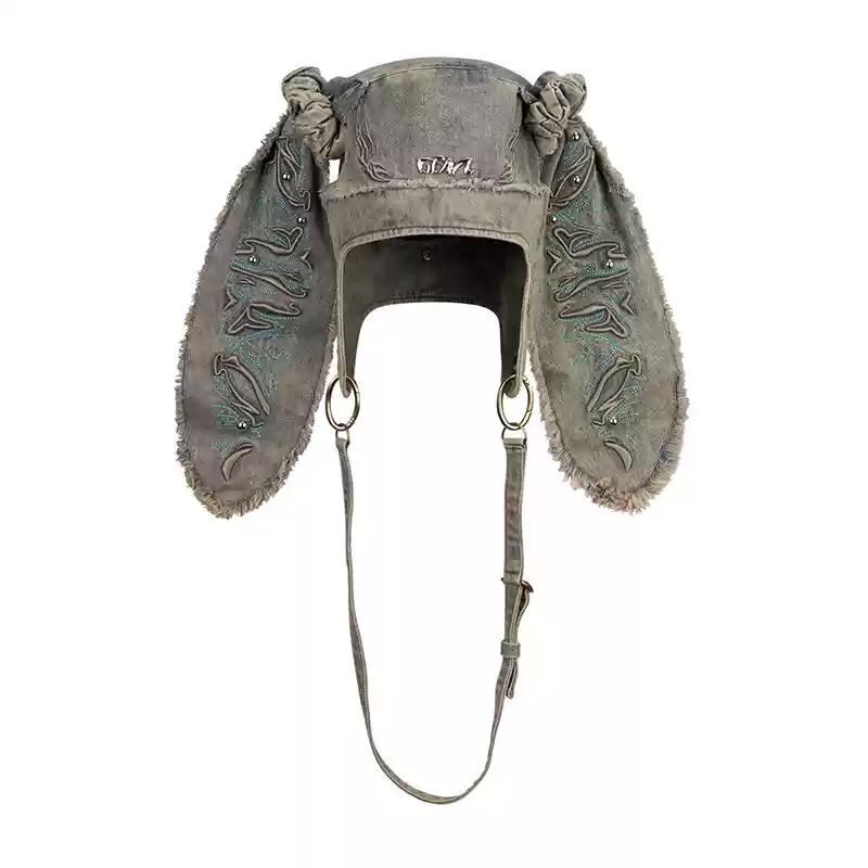 [GENZERO] Gradient Frayed Edge Studded Rabbit Ear Bag Hat | creeptrey