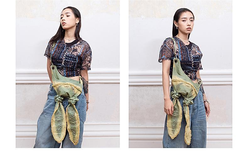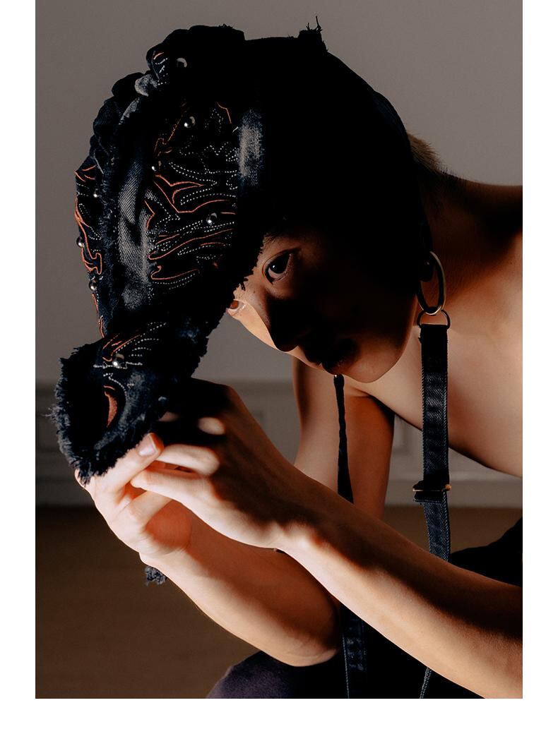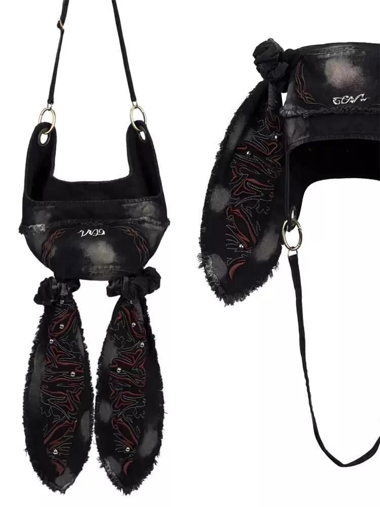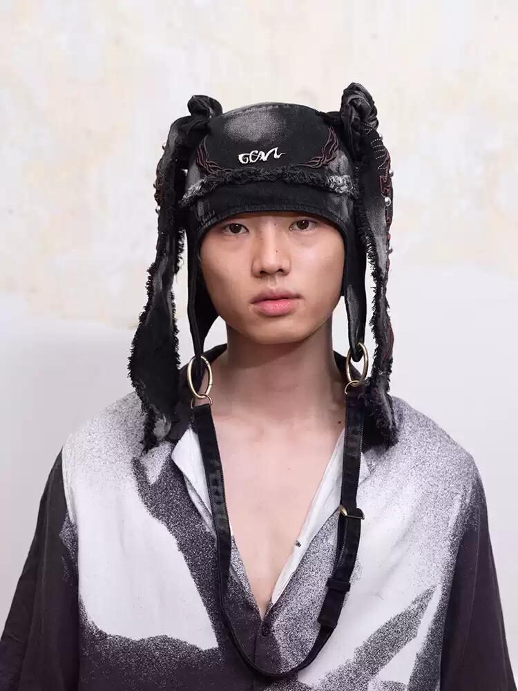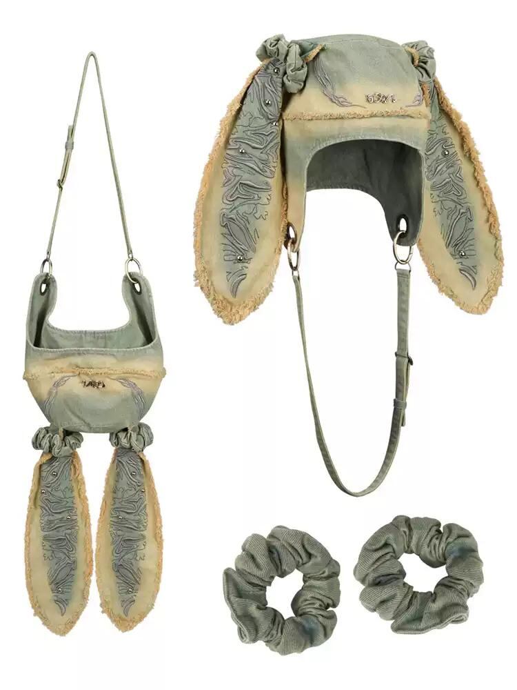 [GENZERO] Gradient Frayed Edge Studded Rabbit Ear Bag Hat | creeptrey