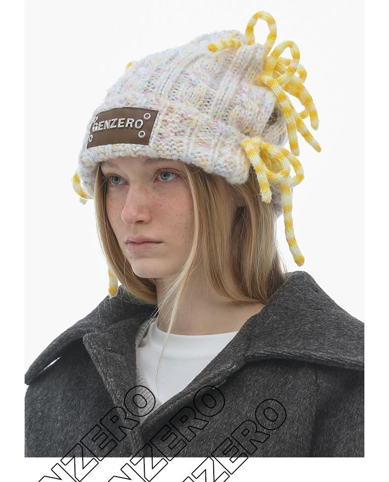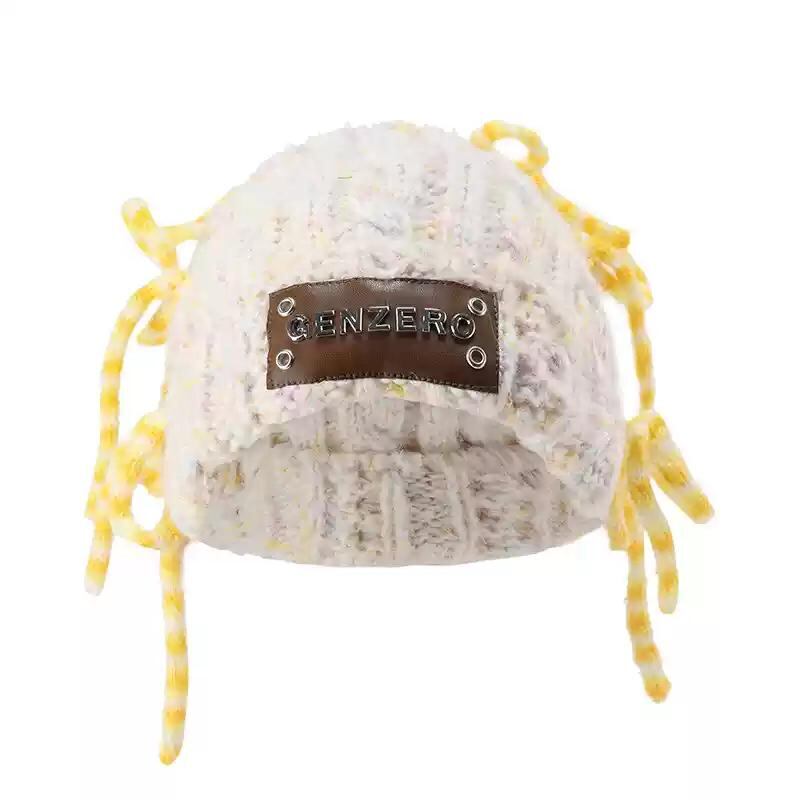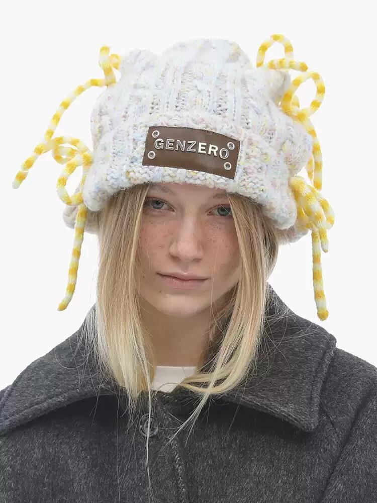 [GENZERO] Patchwork Bow Knit Beanie | creeptrey