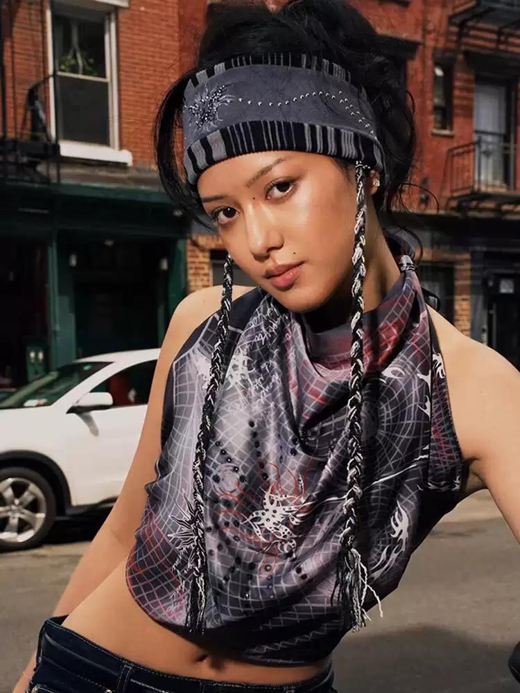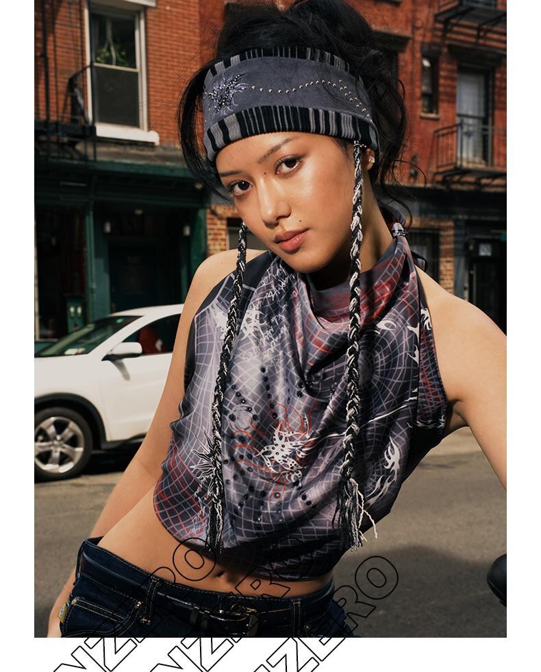 [GENZERO] Hand-Painted Austrian Crystal Print Bandana | creeptrey