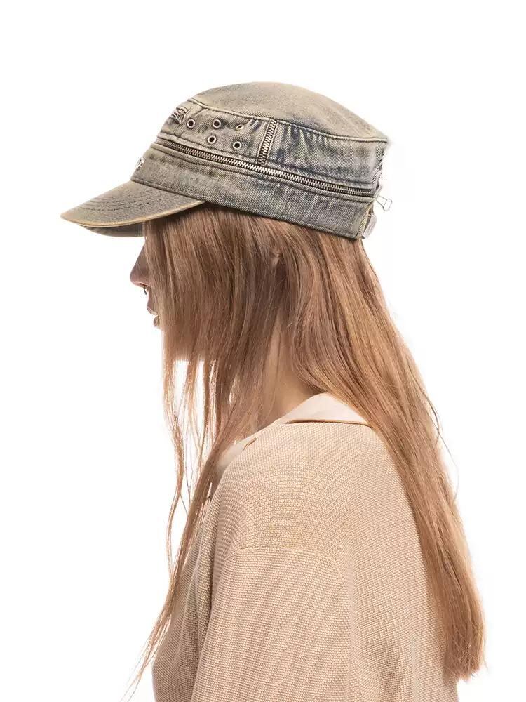 [GENZERO] Washed Denim Zip Flat Cap | creeptrey