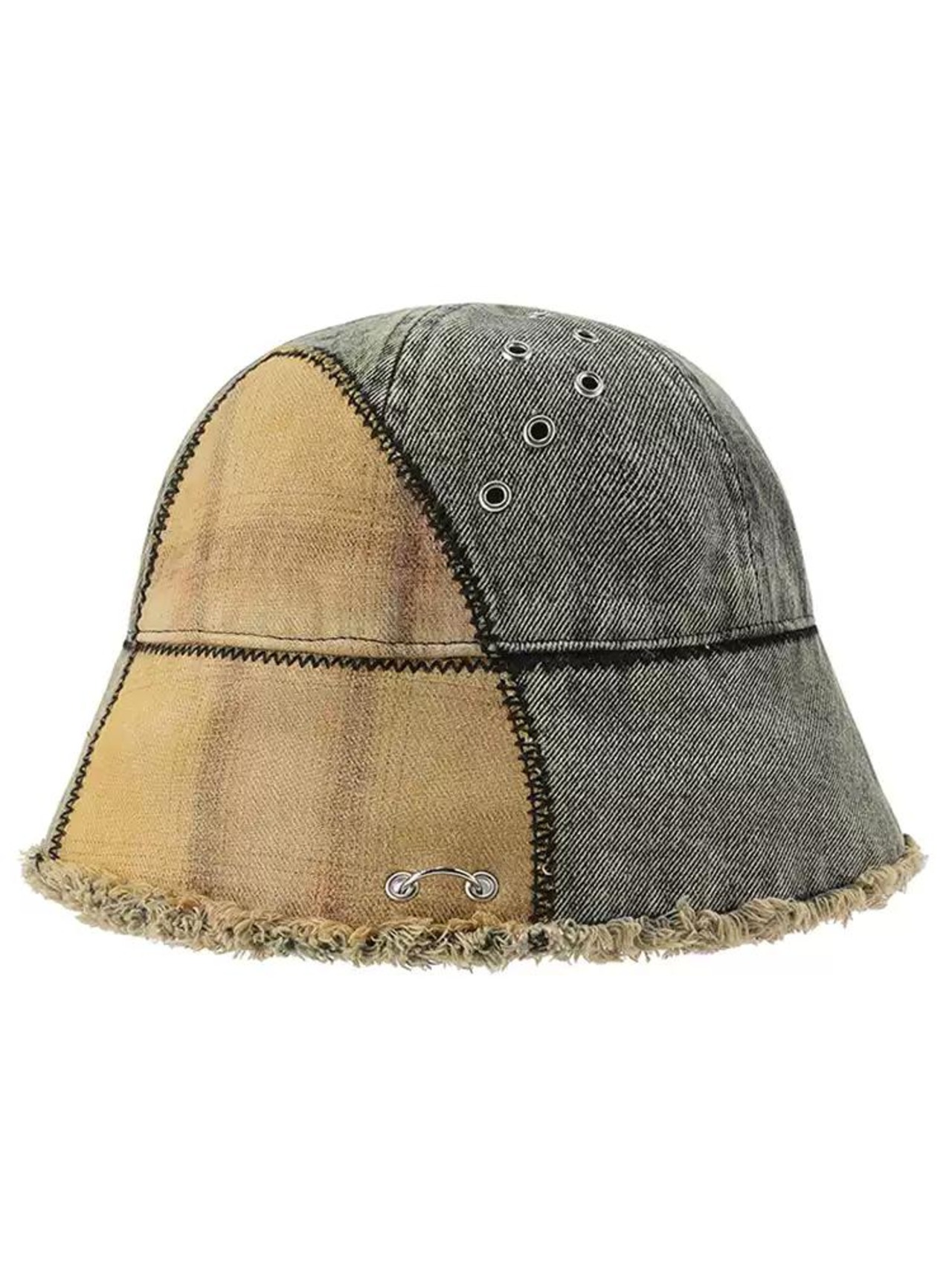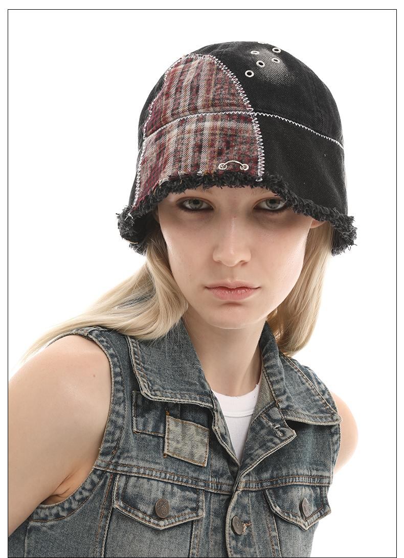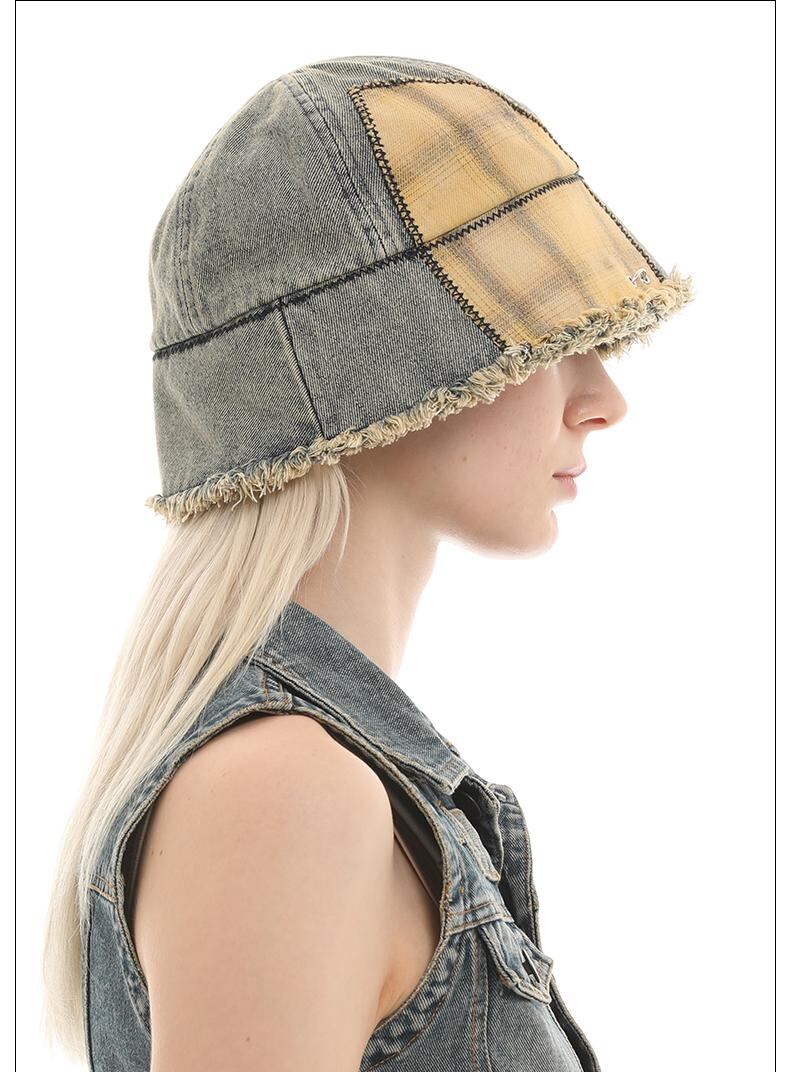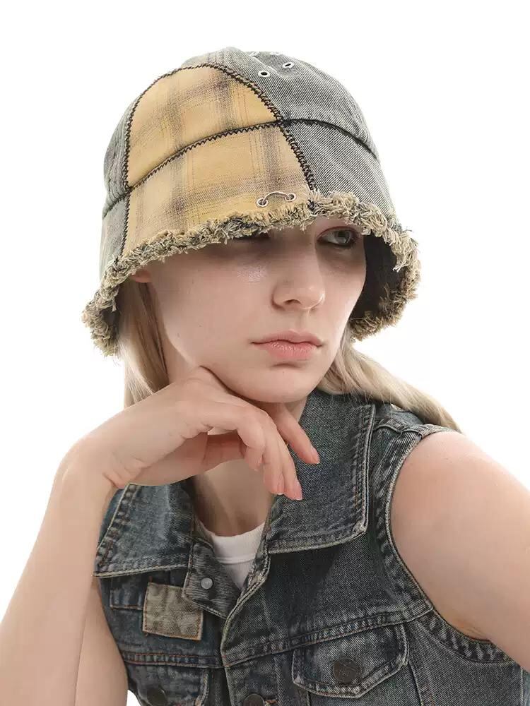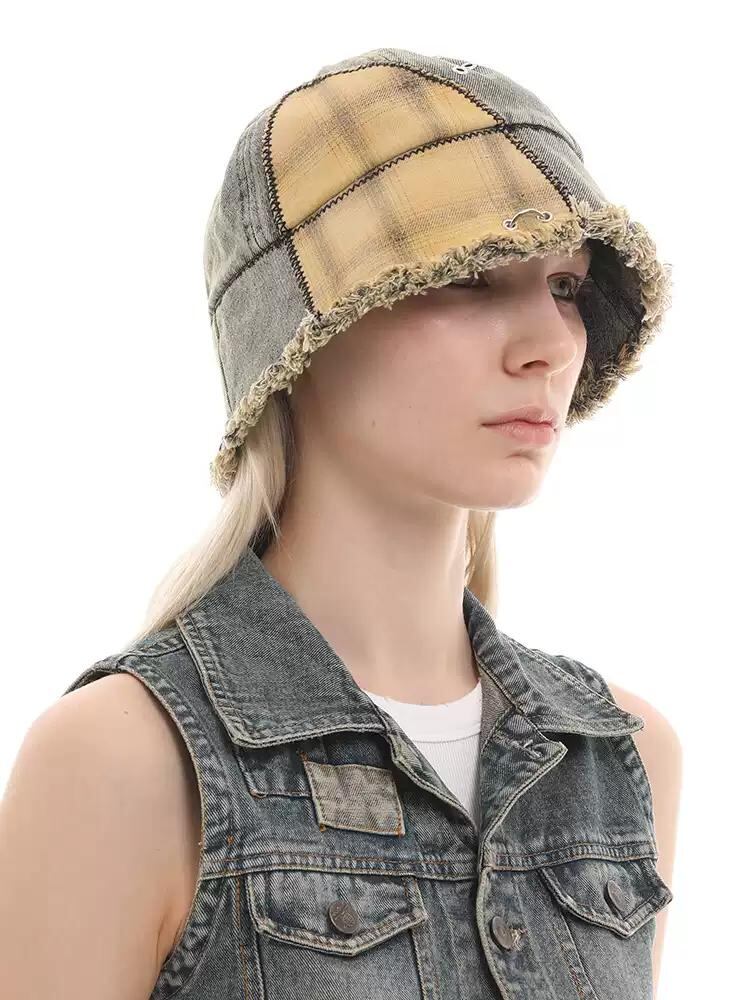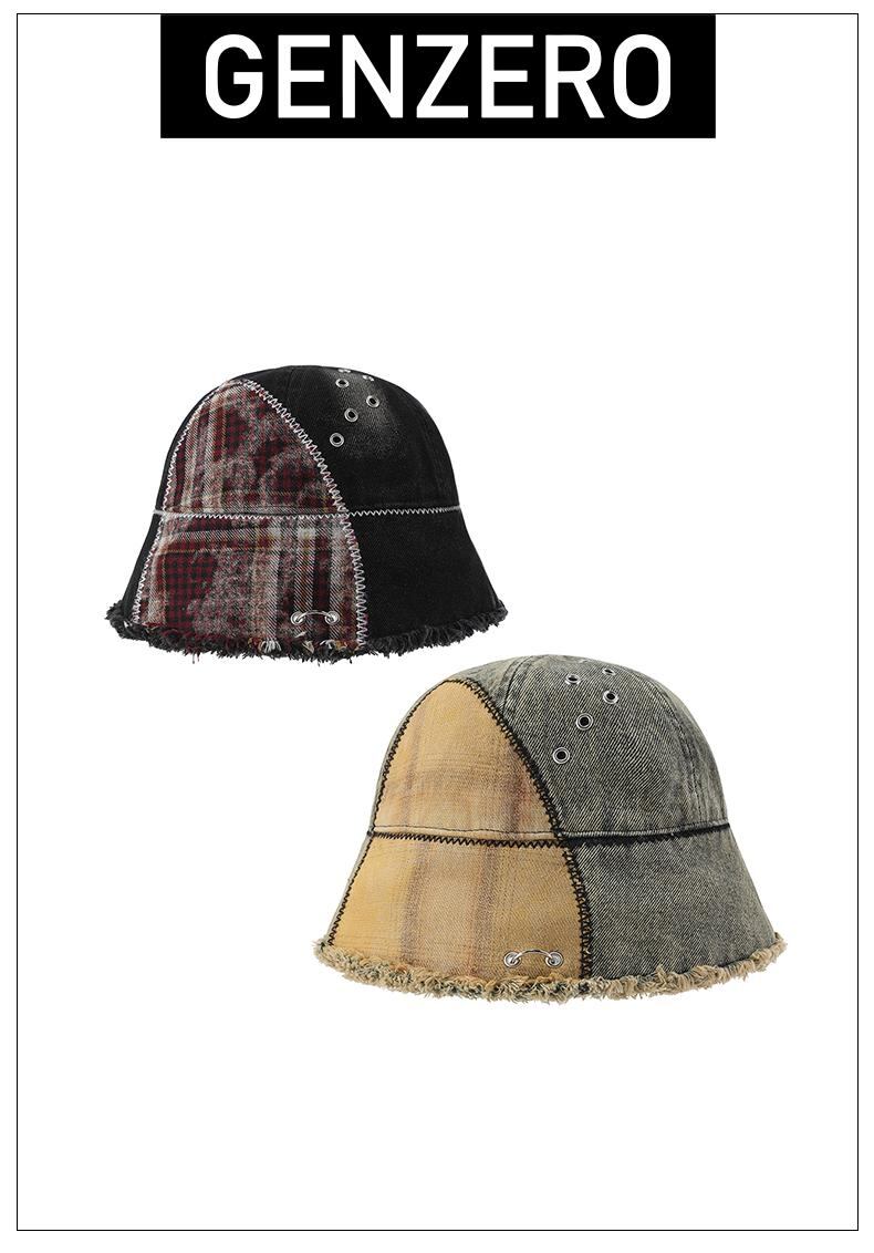 [GENZERO] Washed Patchwork Plaid Bucket Hat | creeptrey