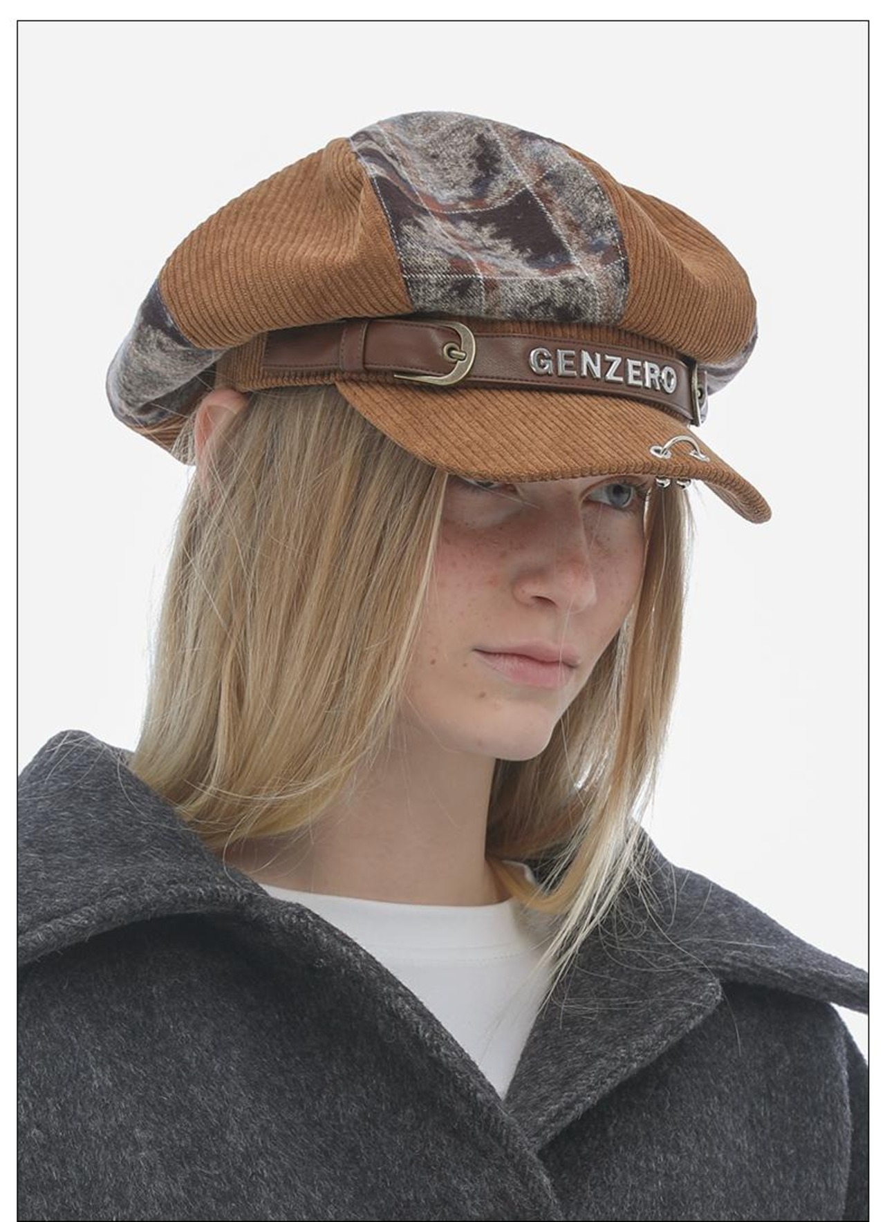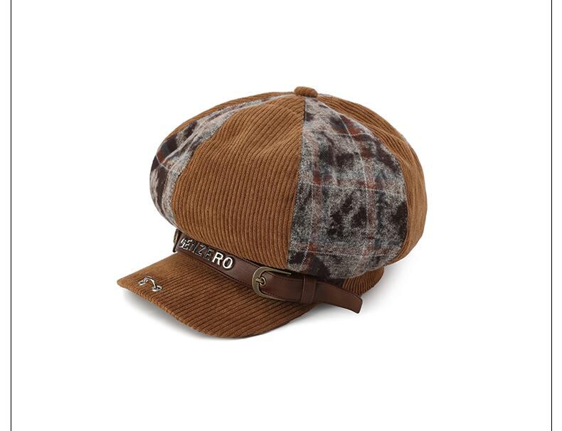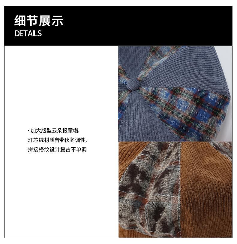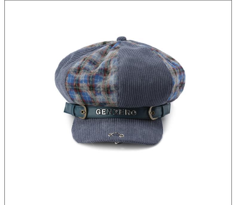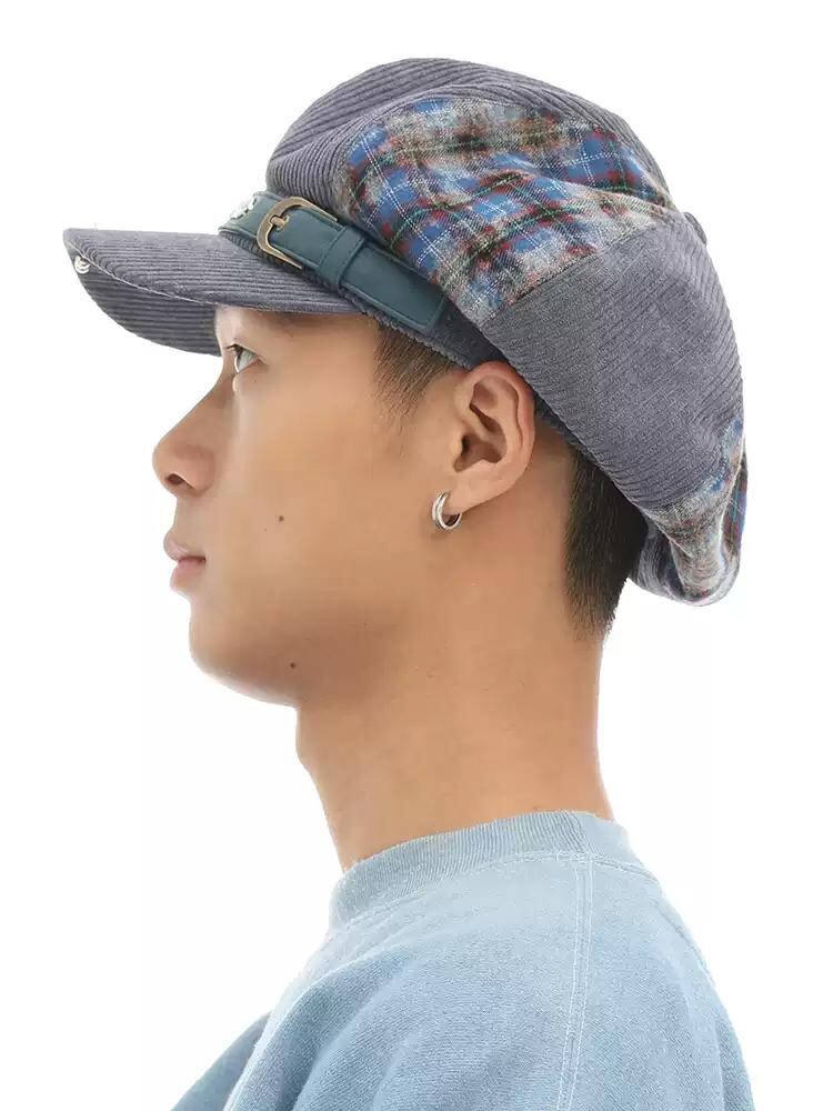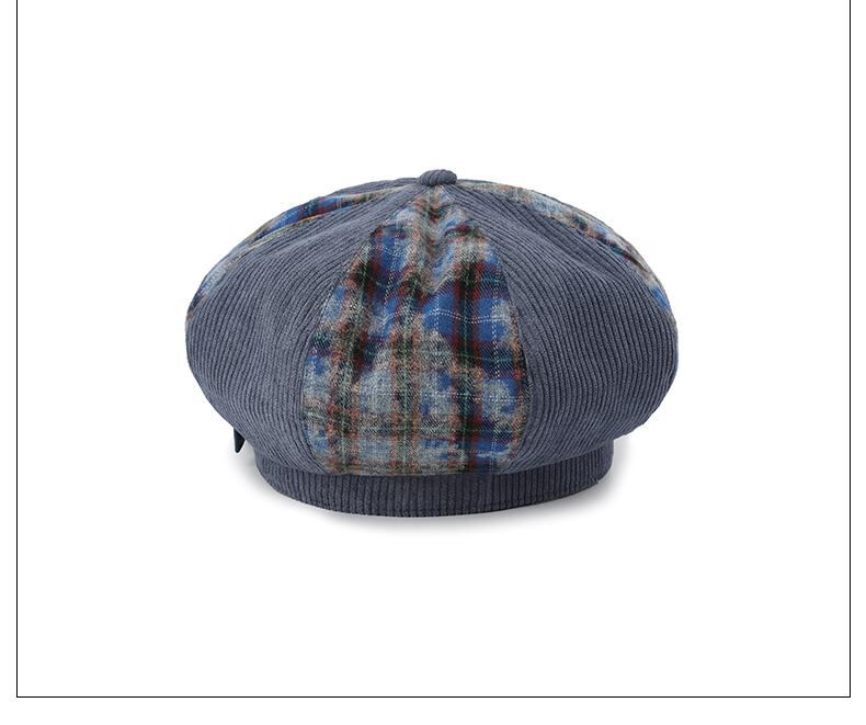 [GENZERO] Corduroy Plaid Patchwork Beret