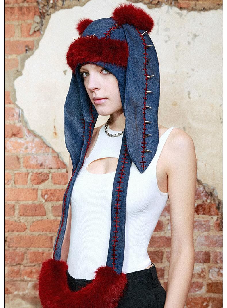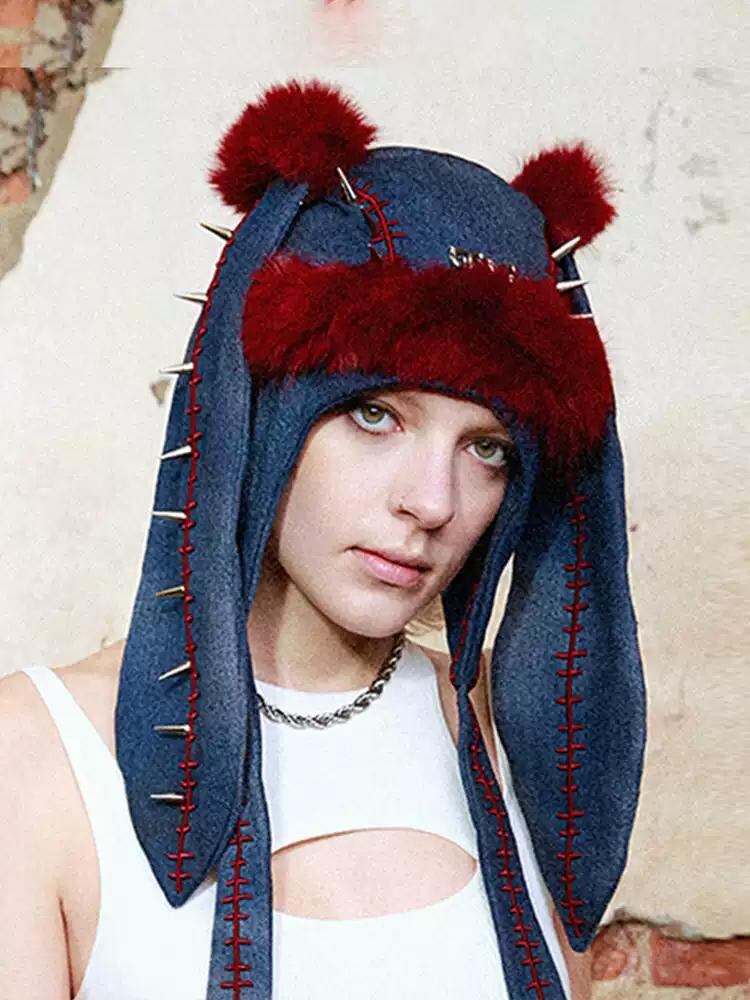[GENZERO] "Prickly" Series Huang Minghao Denim Studded Bunny Ear Hat | creeptrey