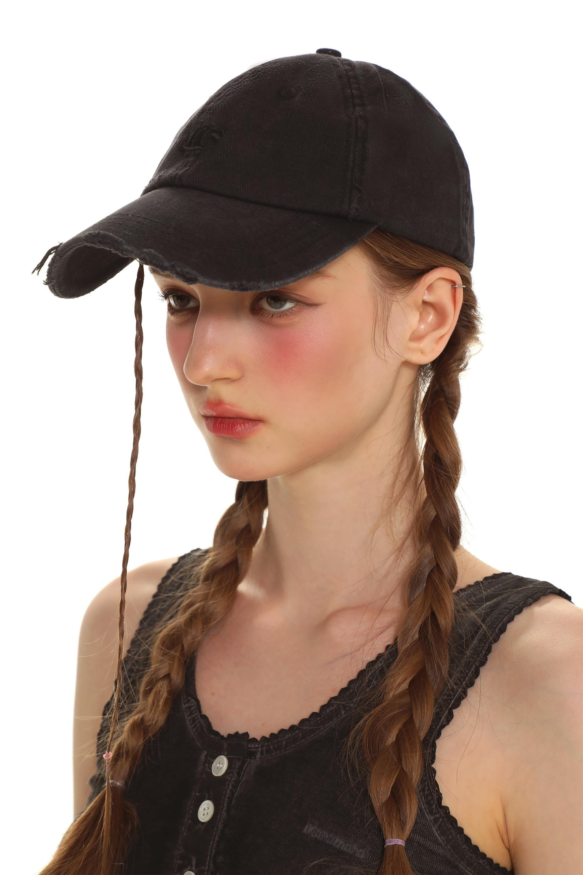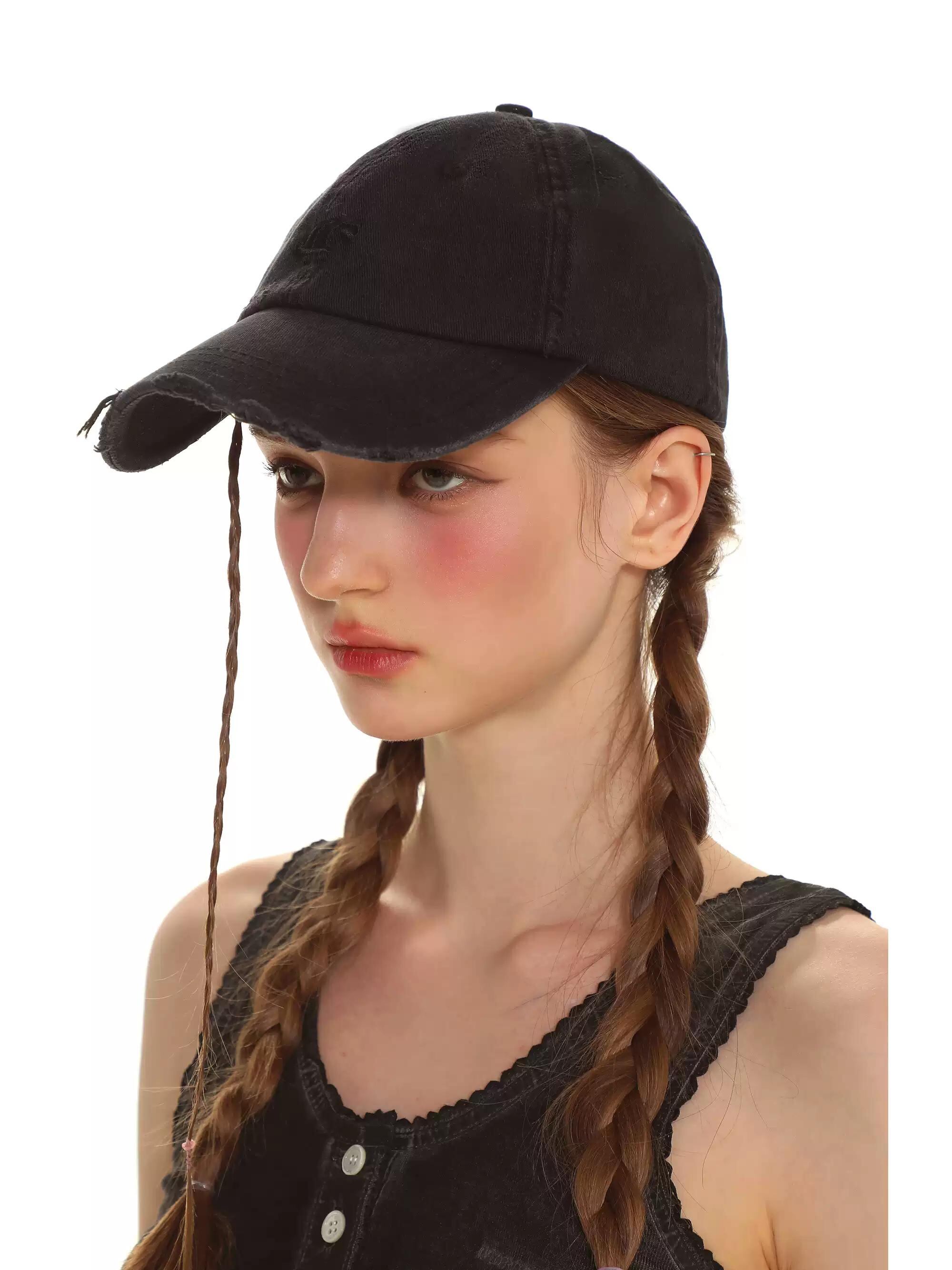 [moromoro2] Retro Distressed Baseball Cap with Embroidery | creeptrey