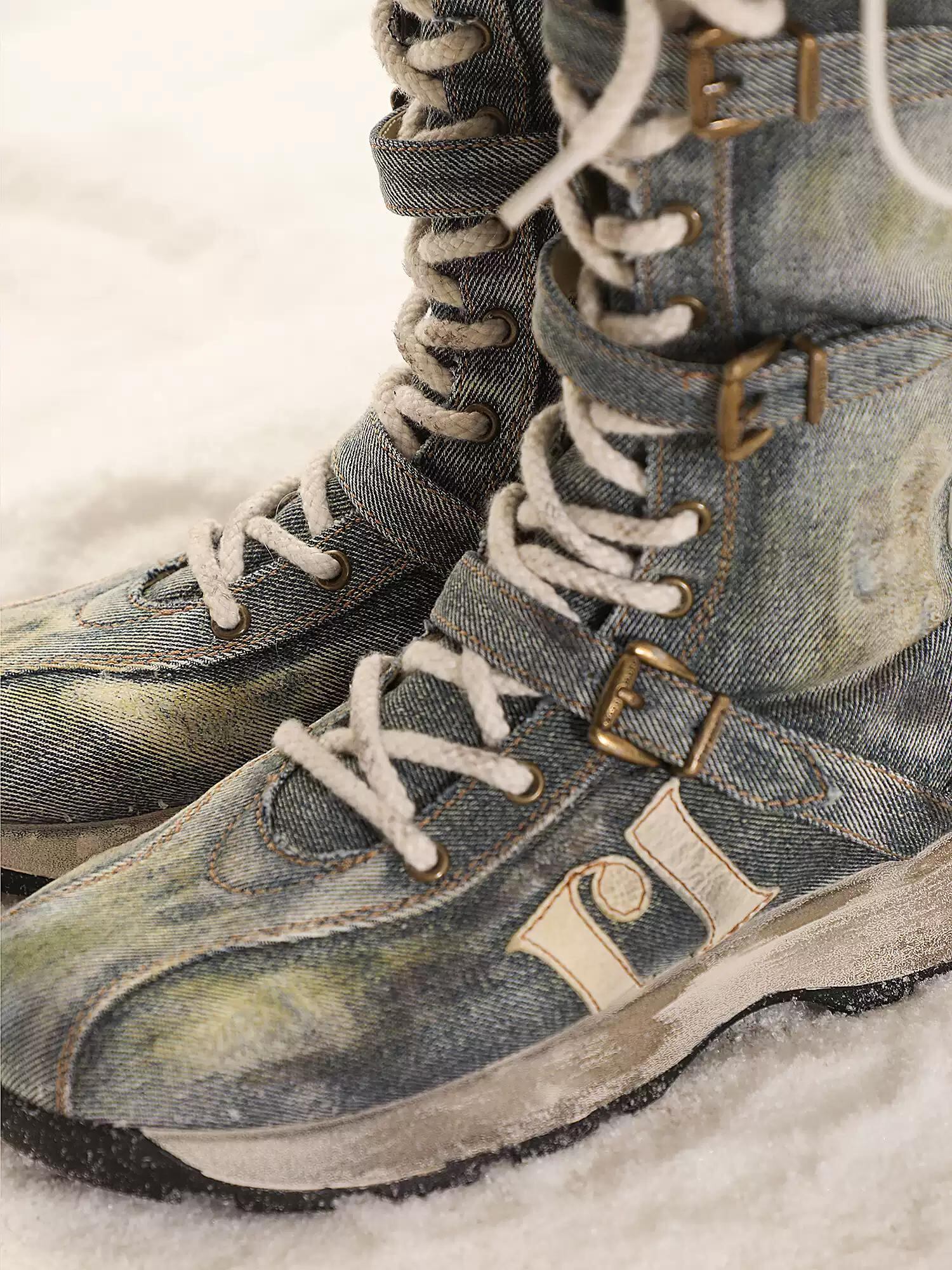 [moromoro2] Retro Distressed Leather Boxing Boots | creeptrey