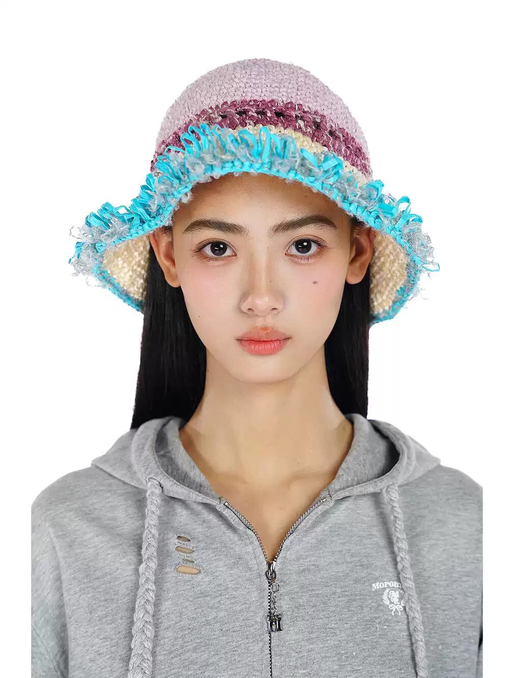 [moromoro2] Raffia Crochet Stripe Fisherman Hat