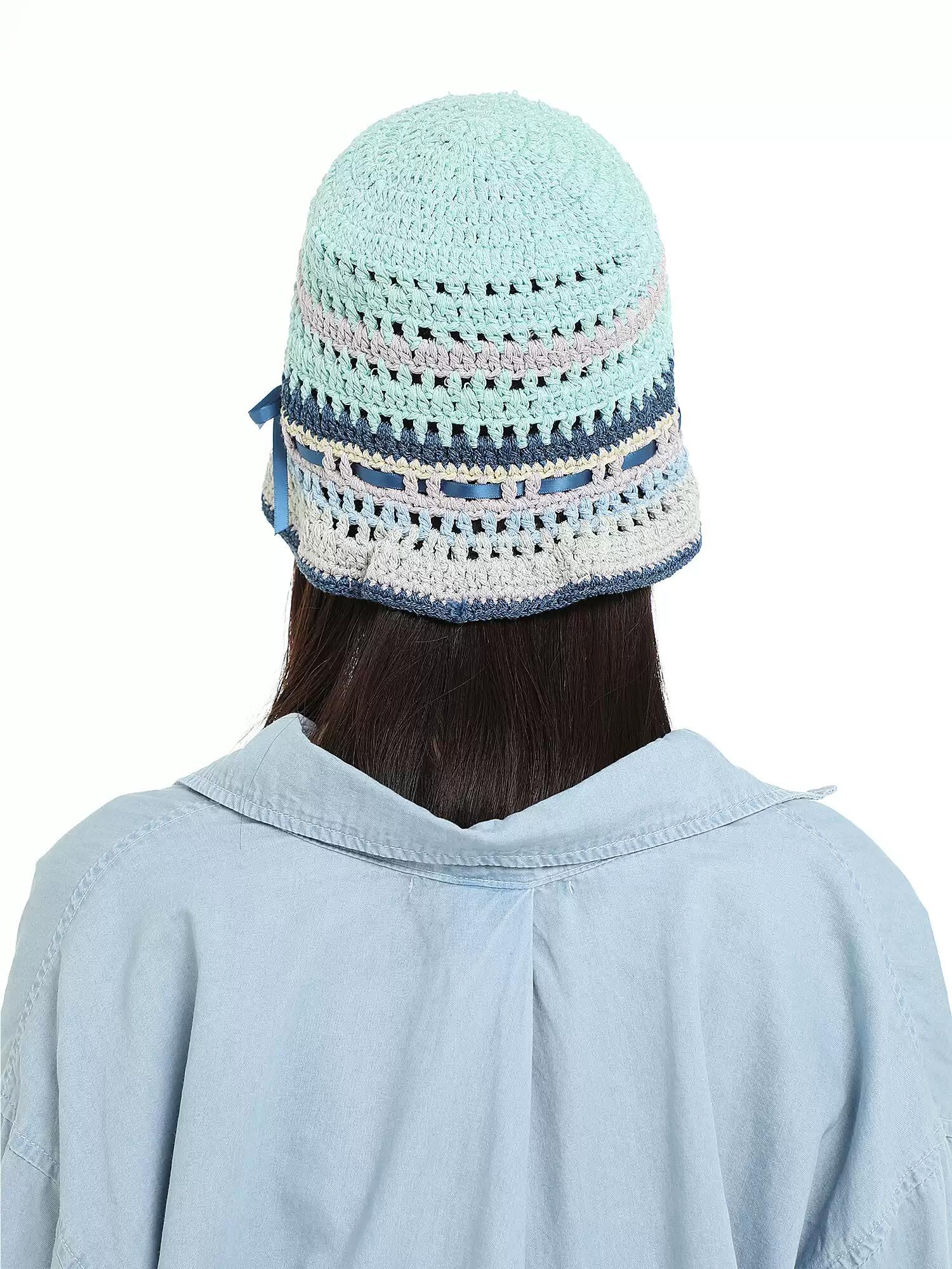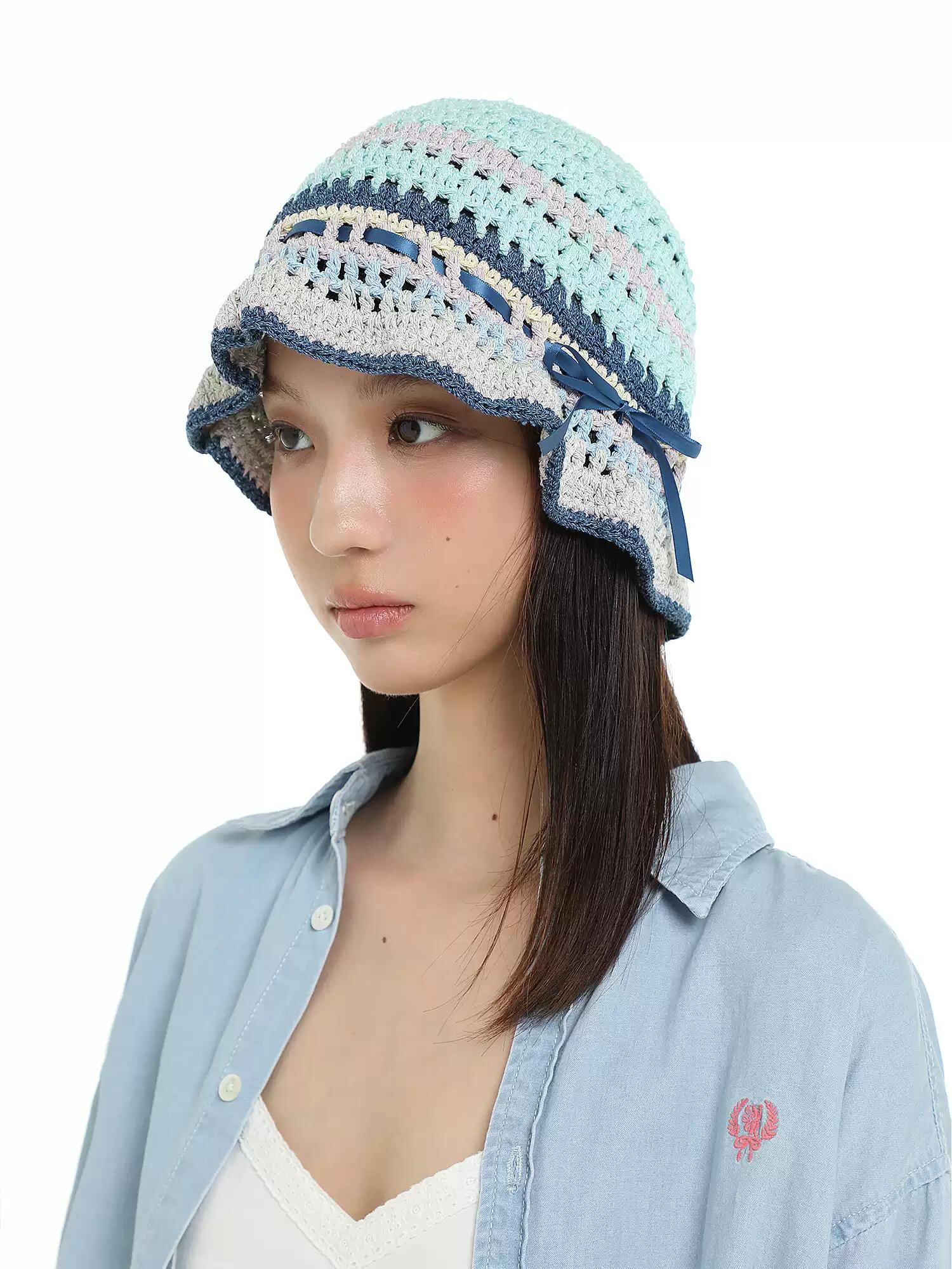 [moromoro2] Fresh Color Crochet Bow Hollow Fisherman Hat | creeptrey