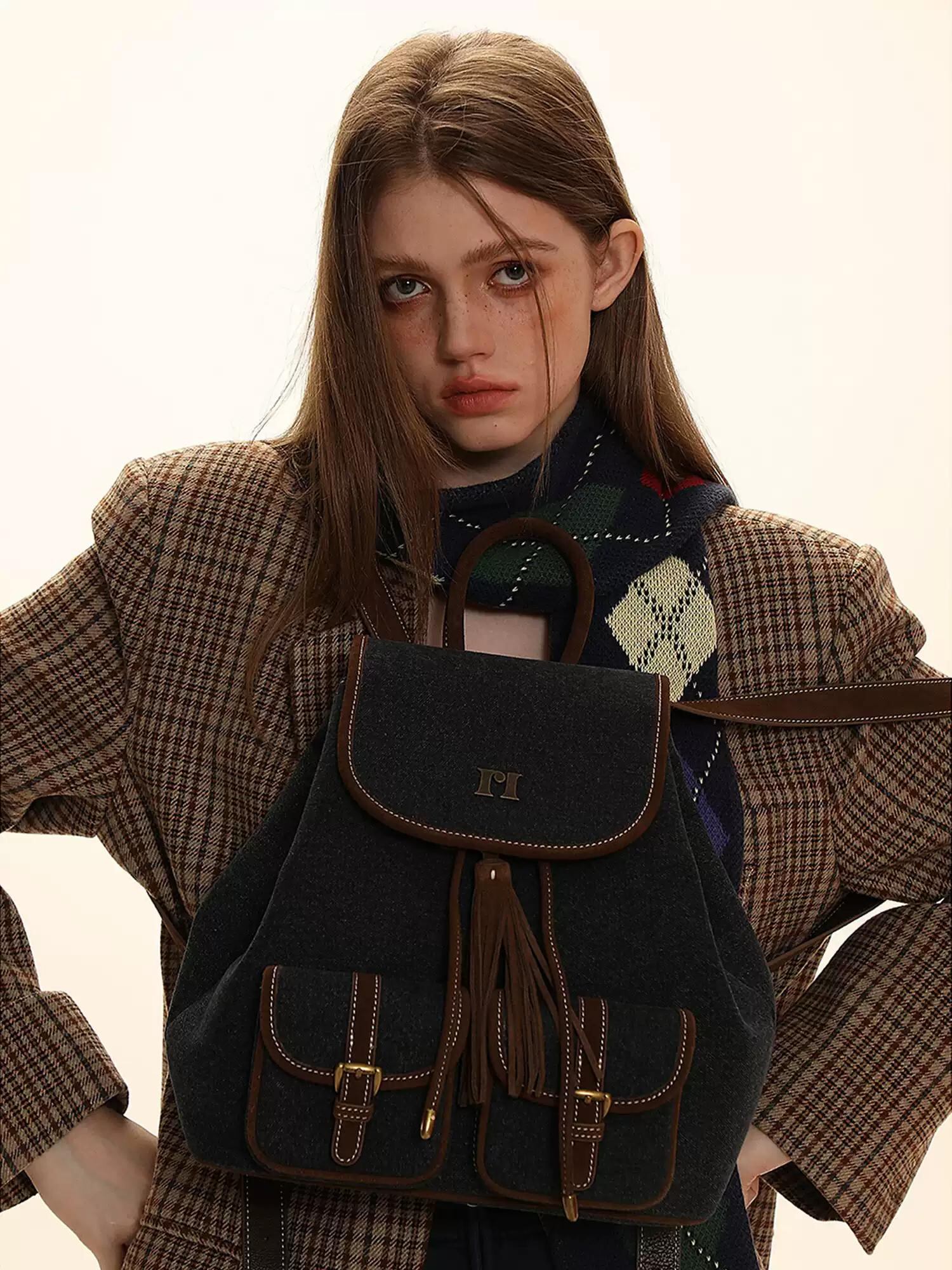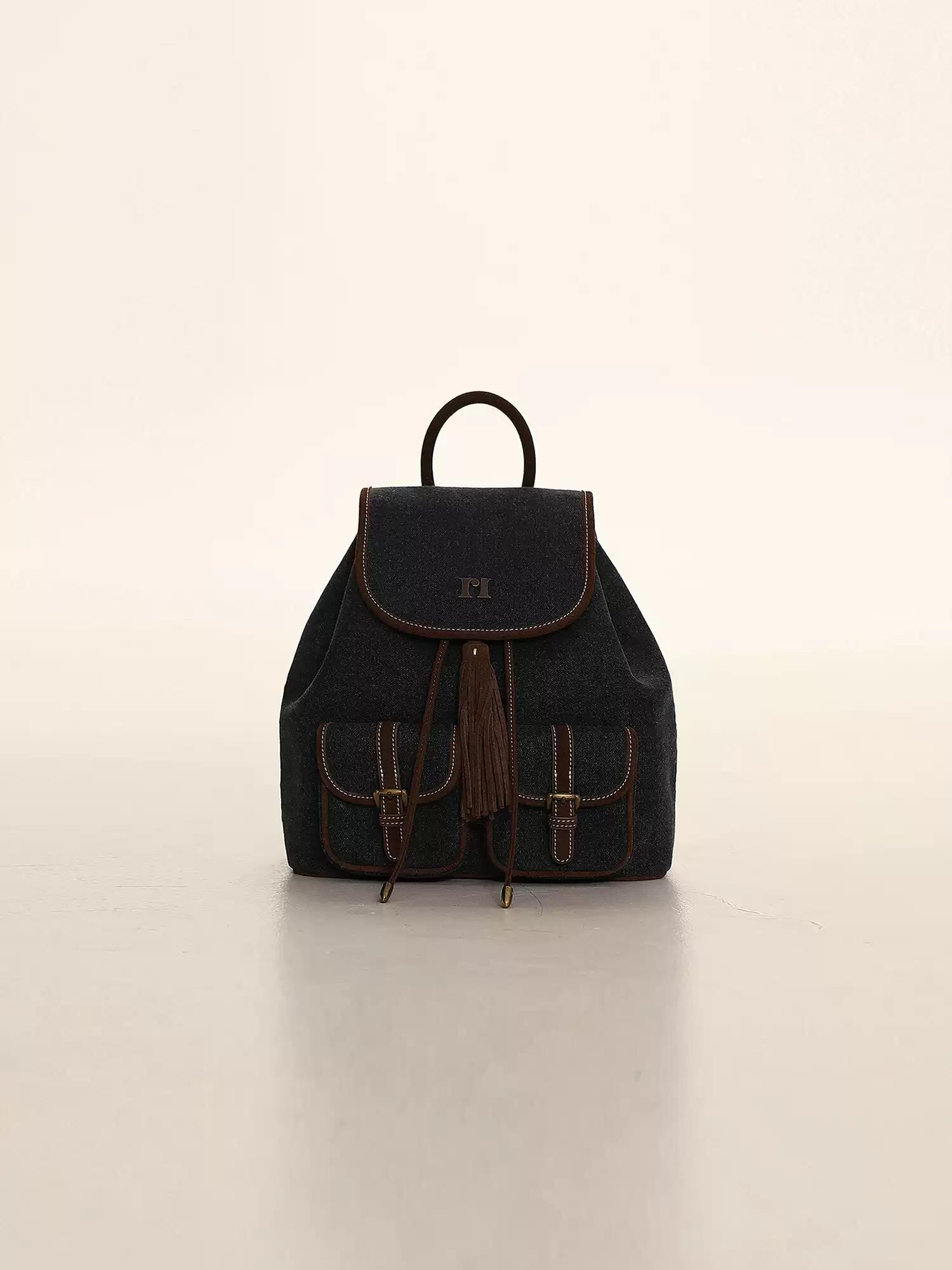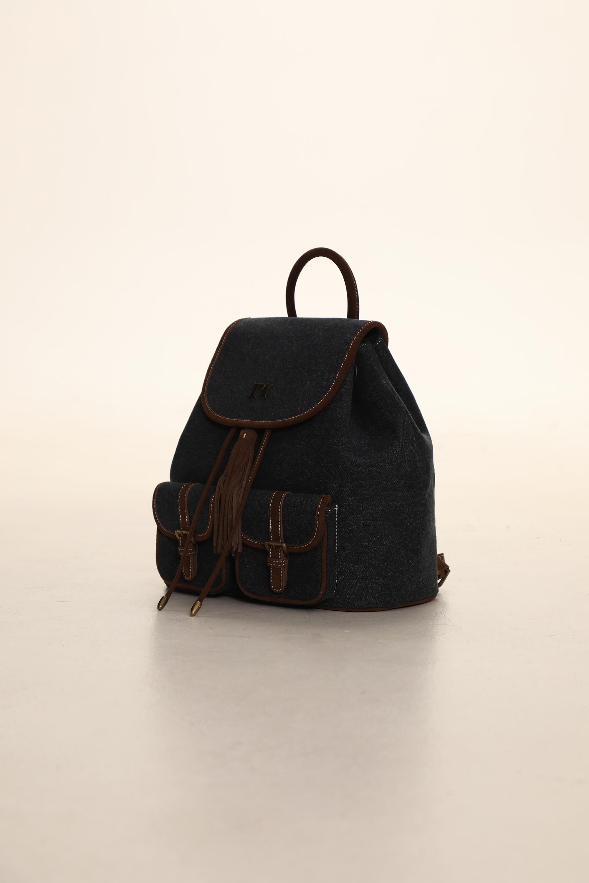 [moromoro2] Retro Denim-Suede Two Pocket Backpack | creeptrey