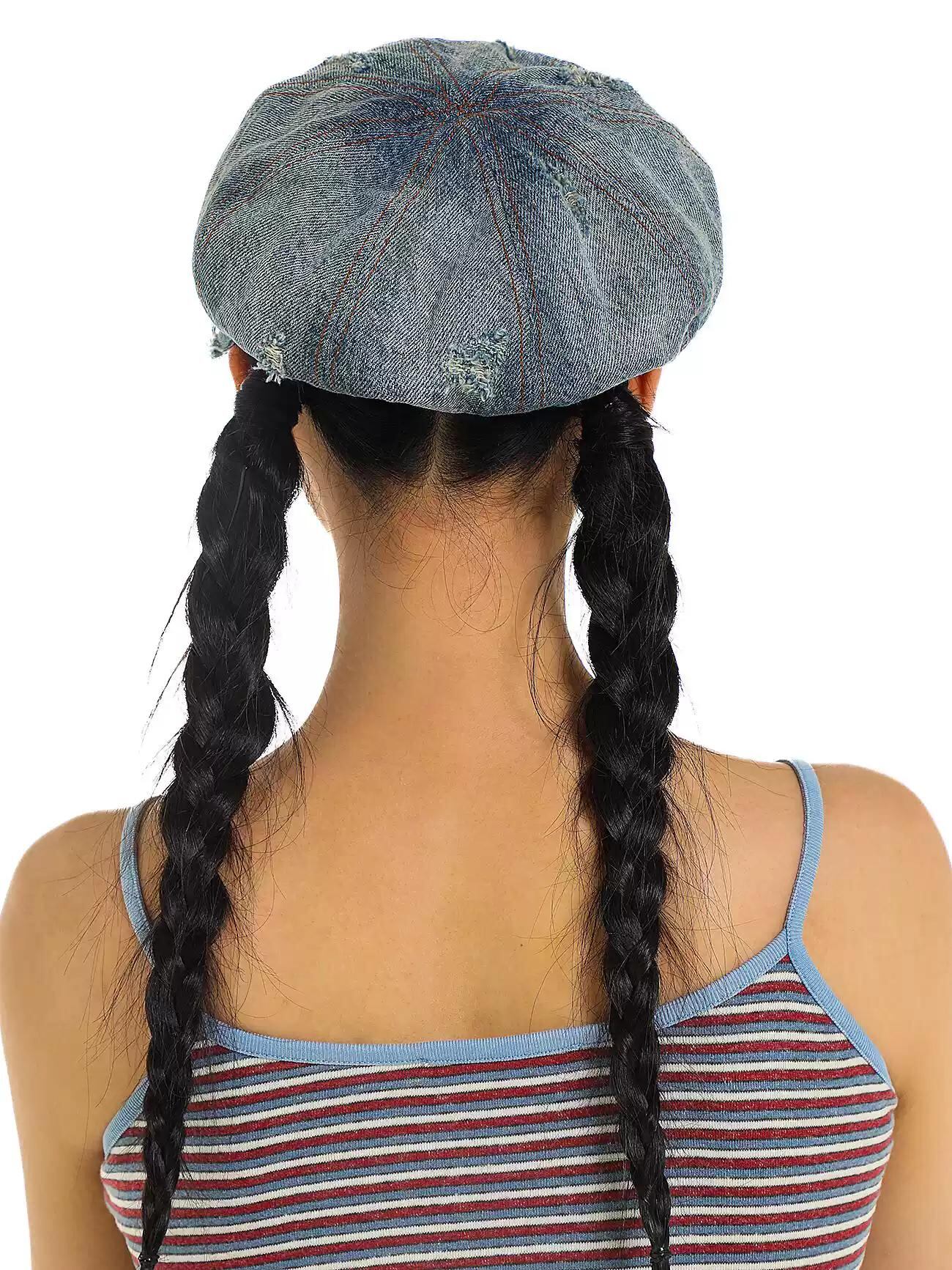 [moromoro2] Retro Washed Eight-Panel Denim Baker Cap | creeptrey