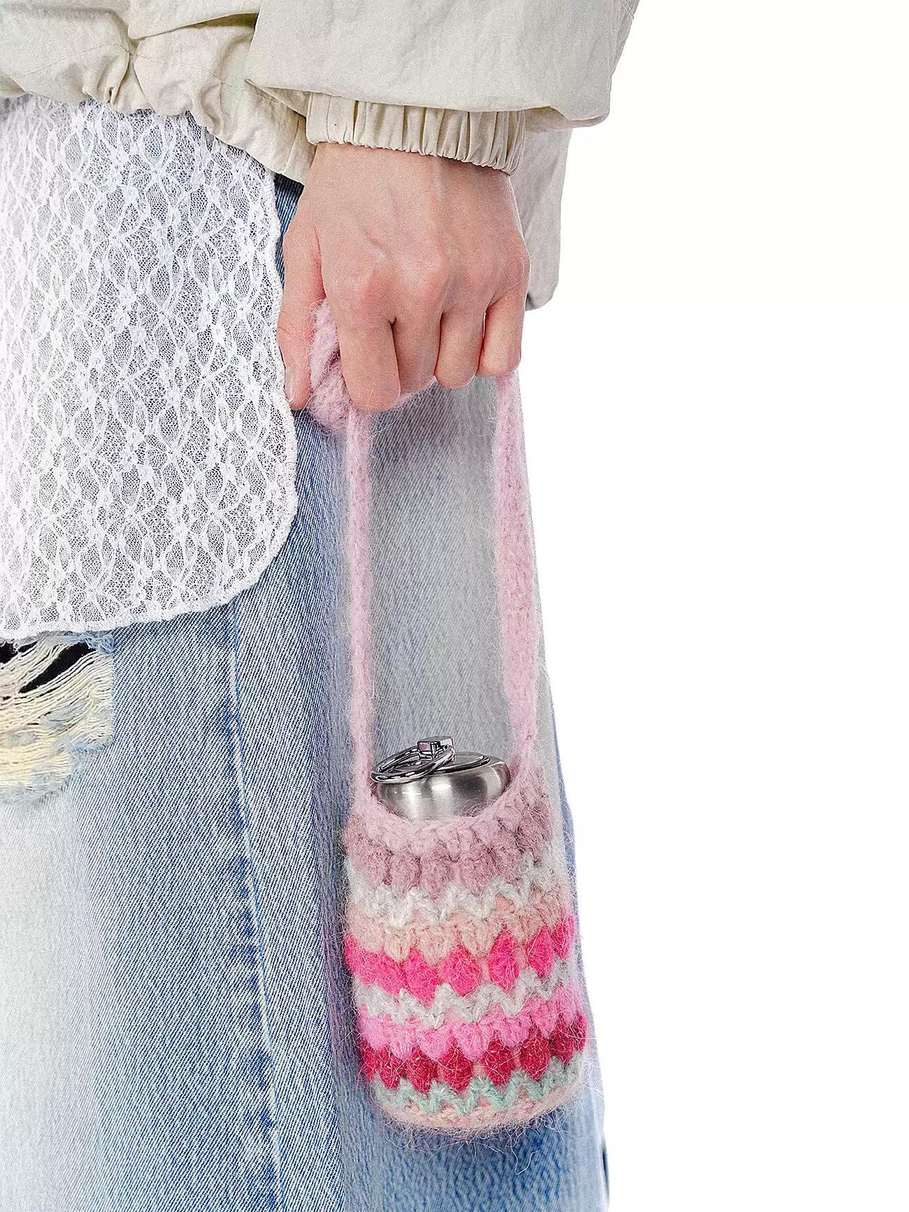 [moromoro2] Crochet Rose Stripe Bottle Crossbody Bag