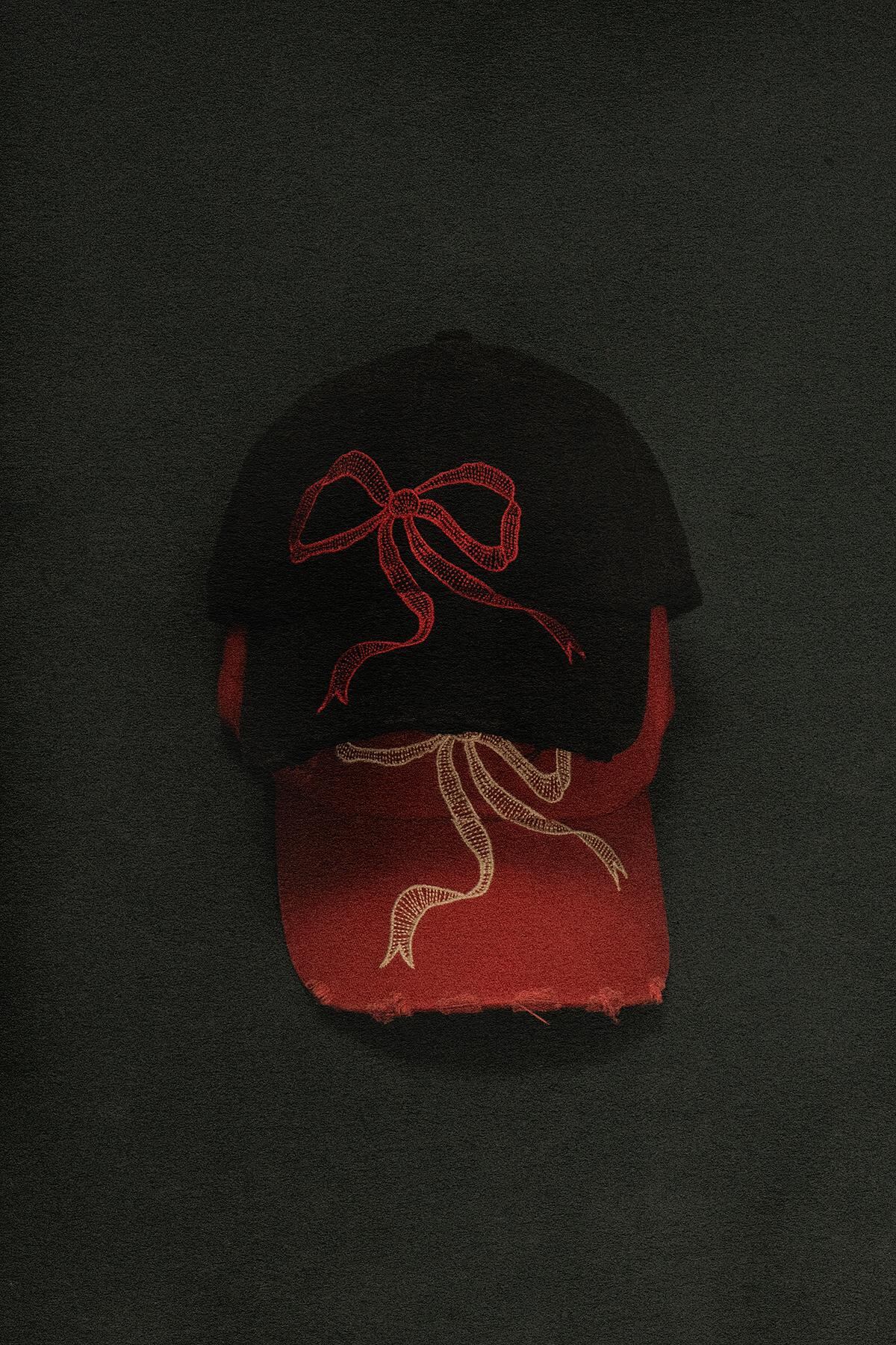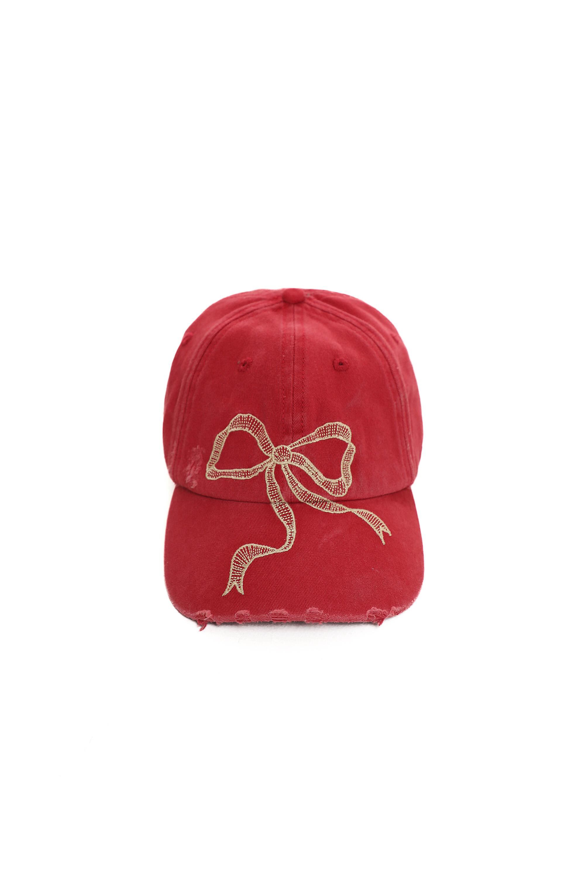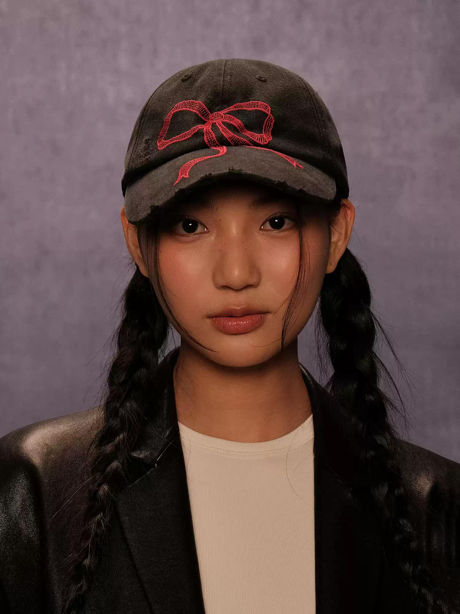 [moromoro2] Distressed Bow Embroidered Baseball Cap | creeptrey