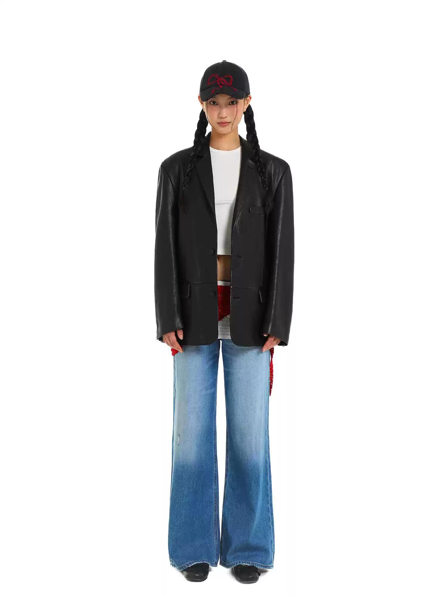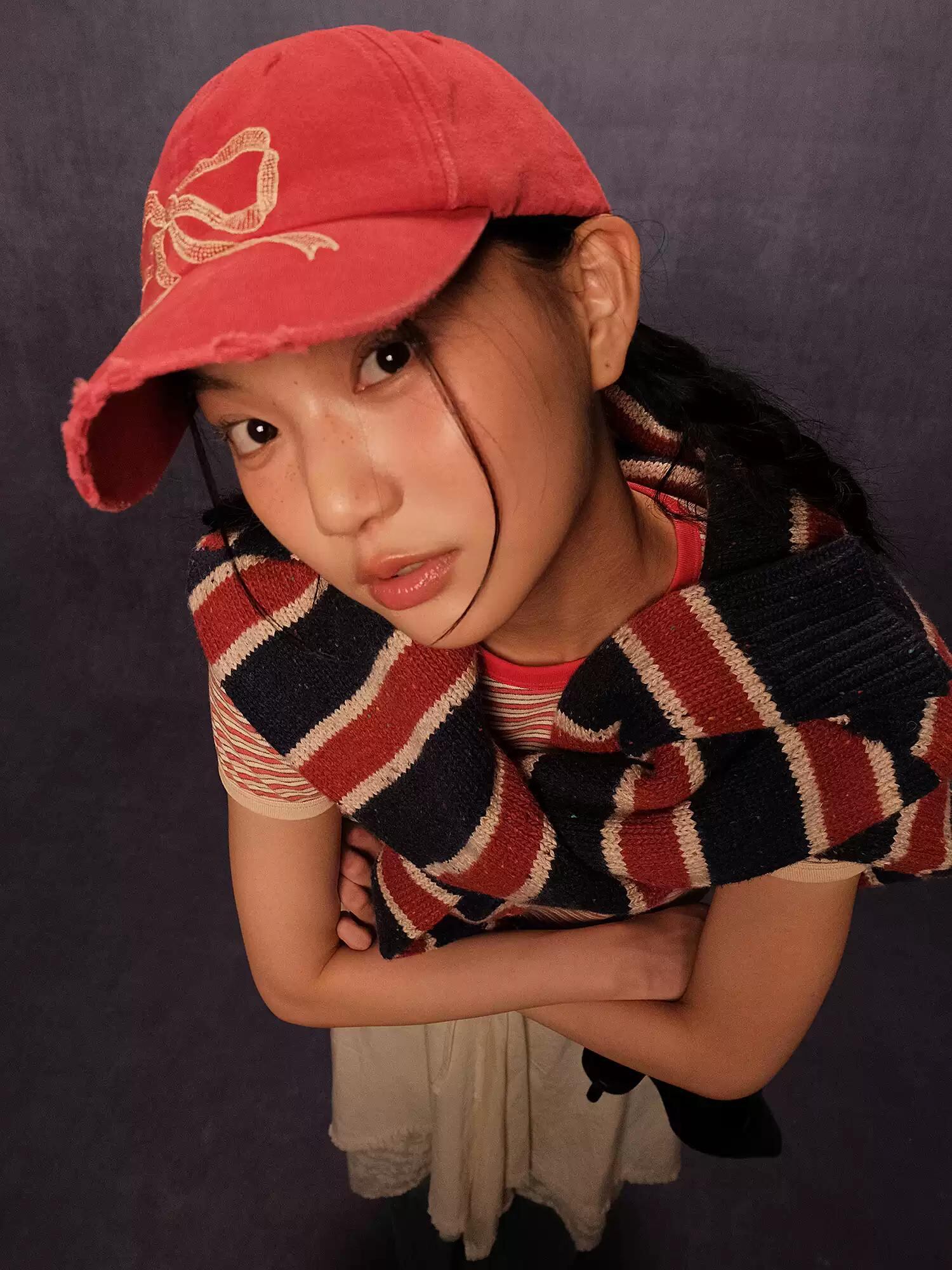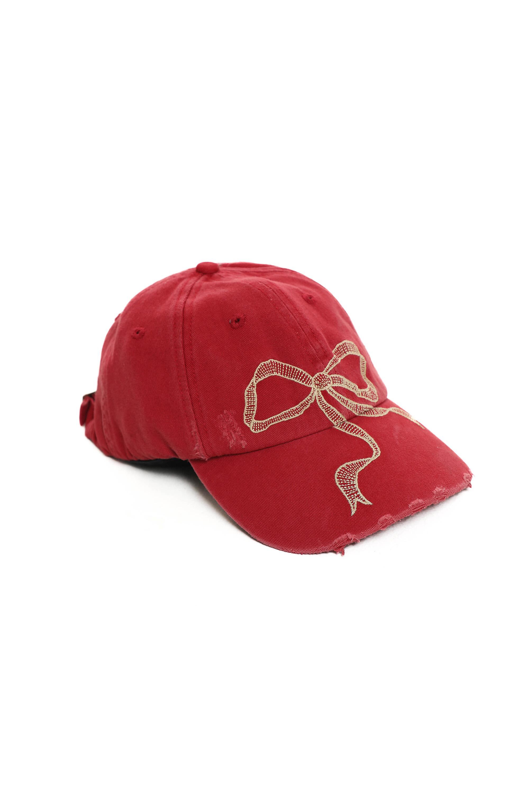 [moromoro2] Distressed Bow Embroidered Baseball Cap | creeptrey