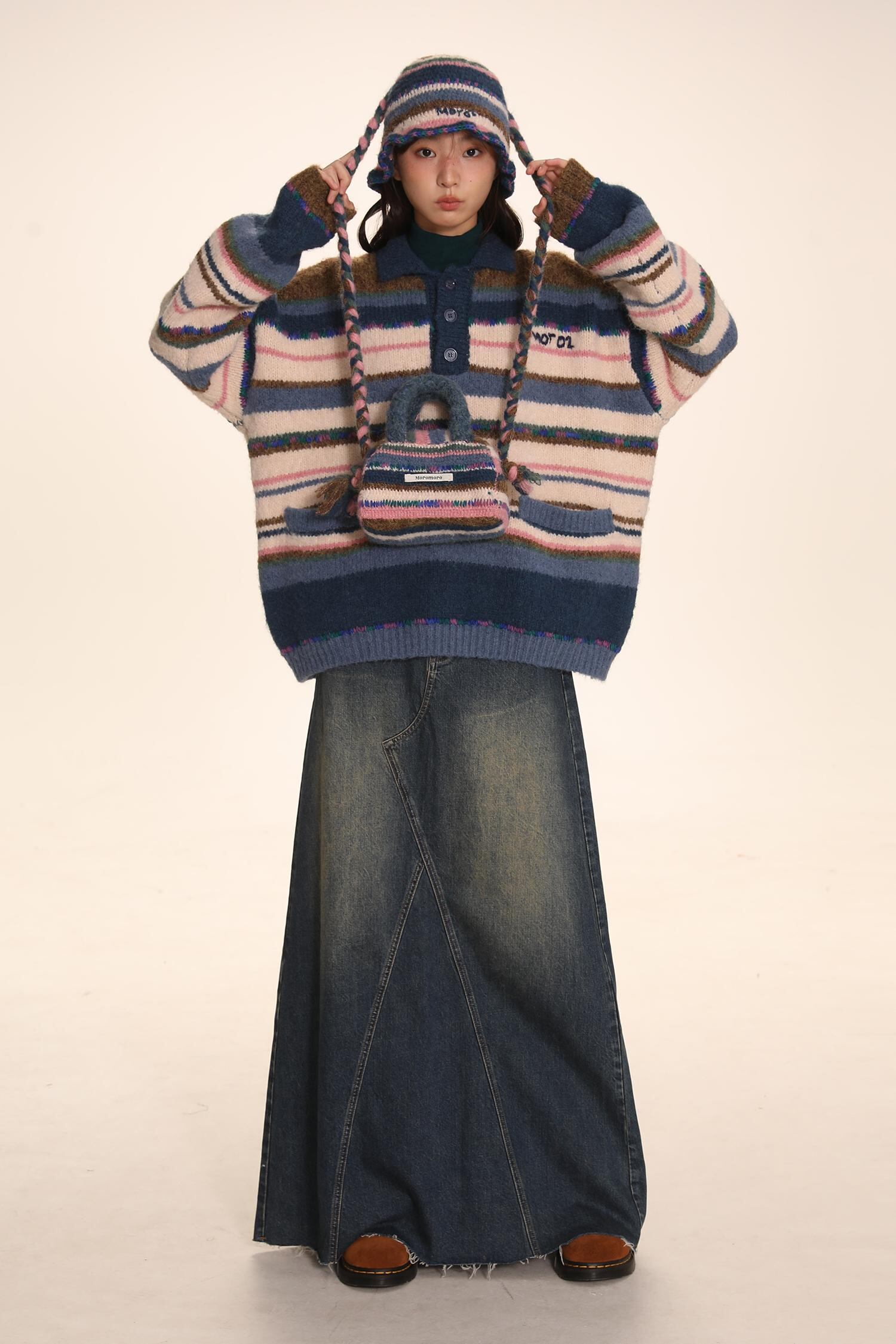 [moromoro2] Hand-knitted Striped Fisherman Hat | creeptrey