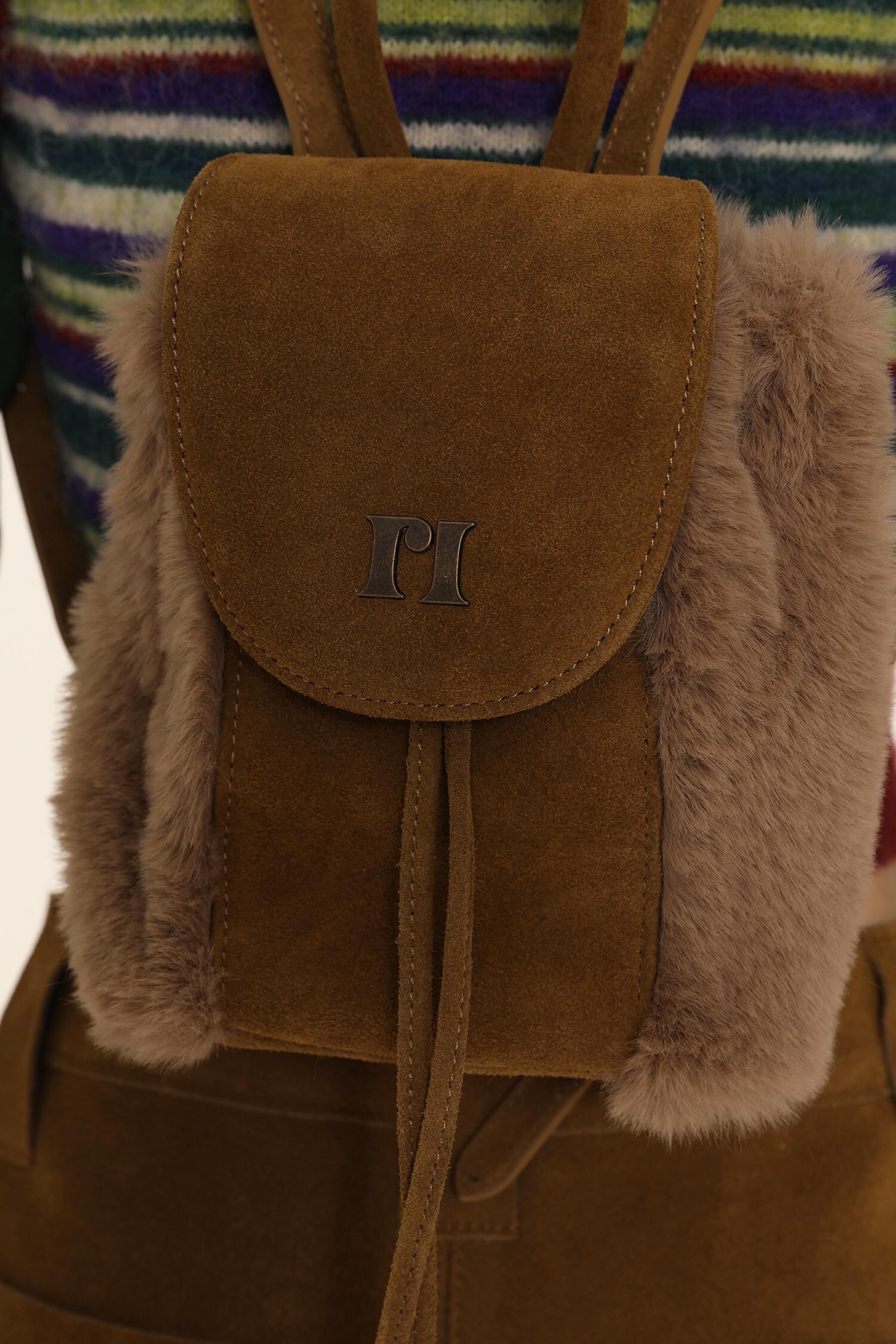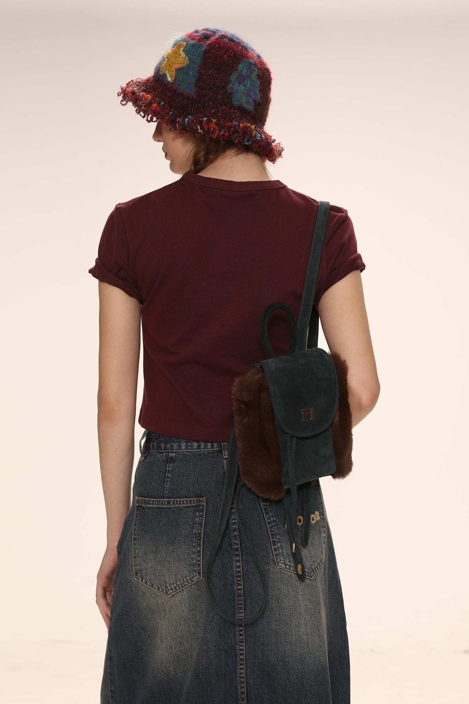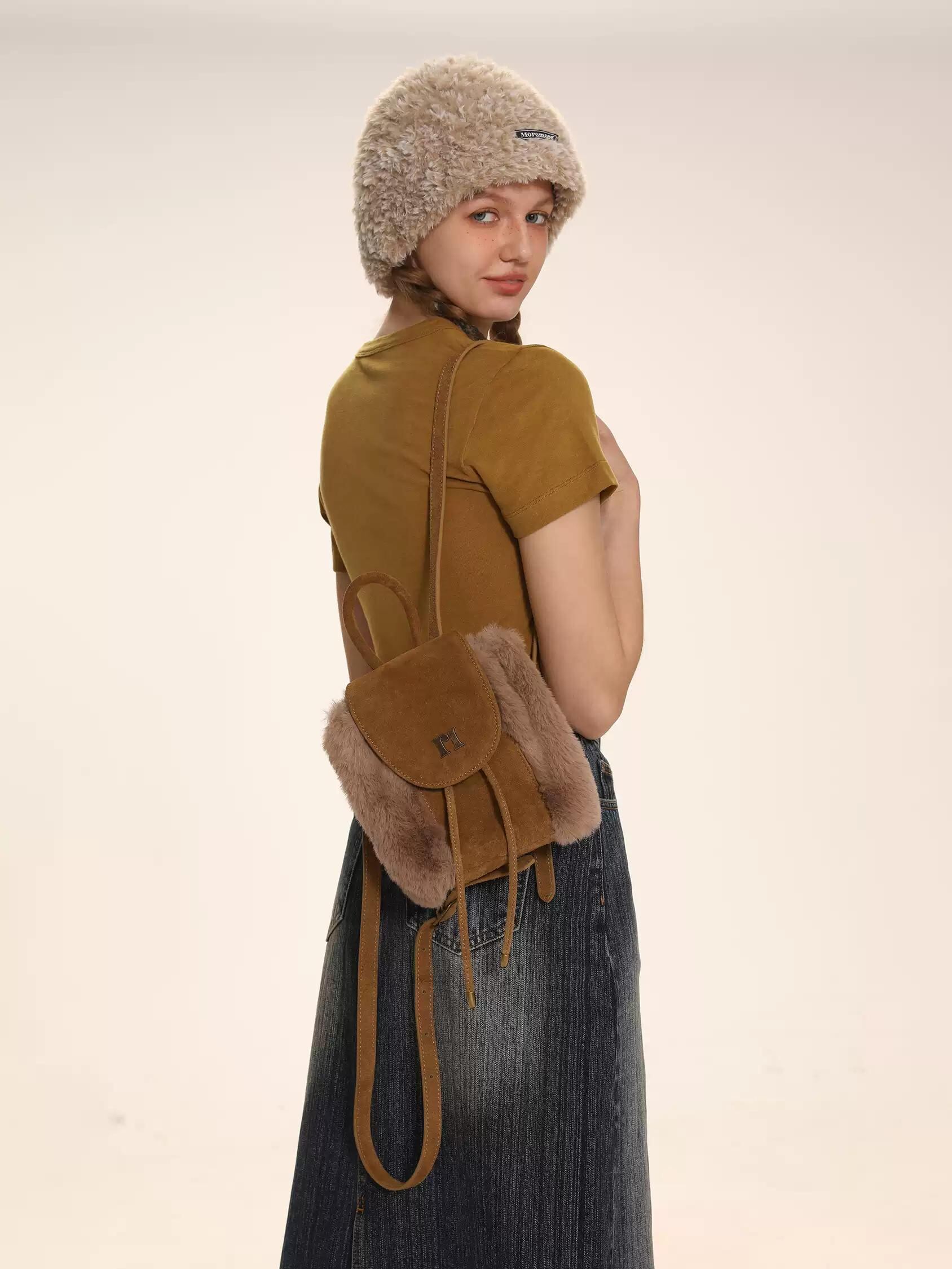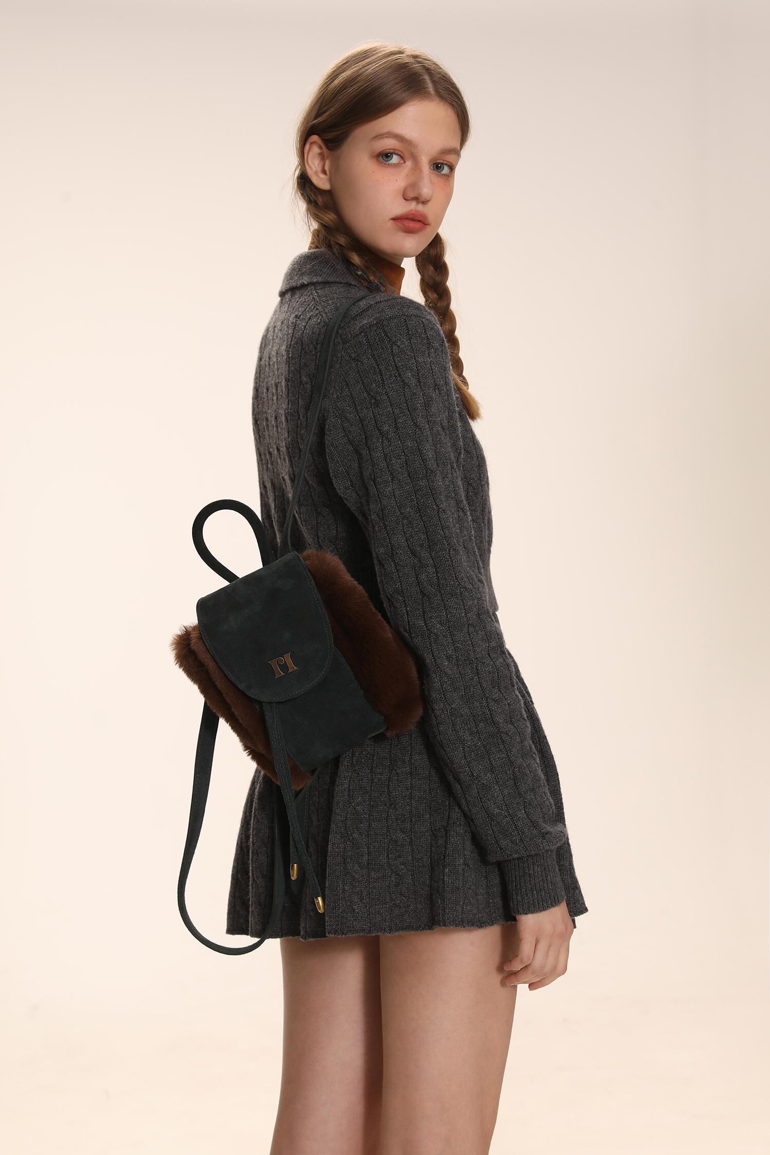[moromoro2] Suede & Faux Mink Mini Backpack | creeptrey