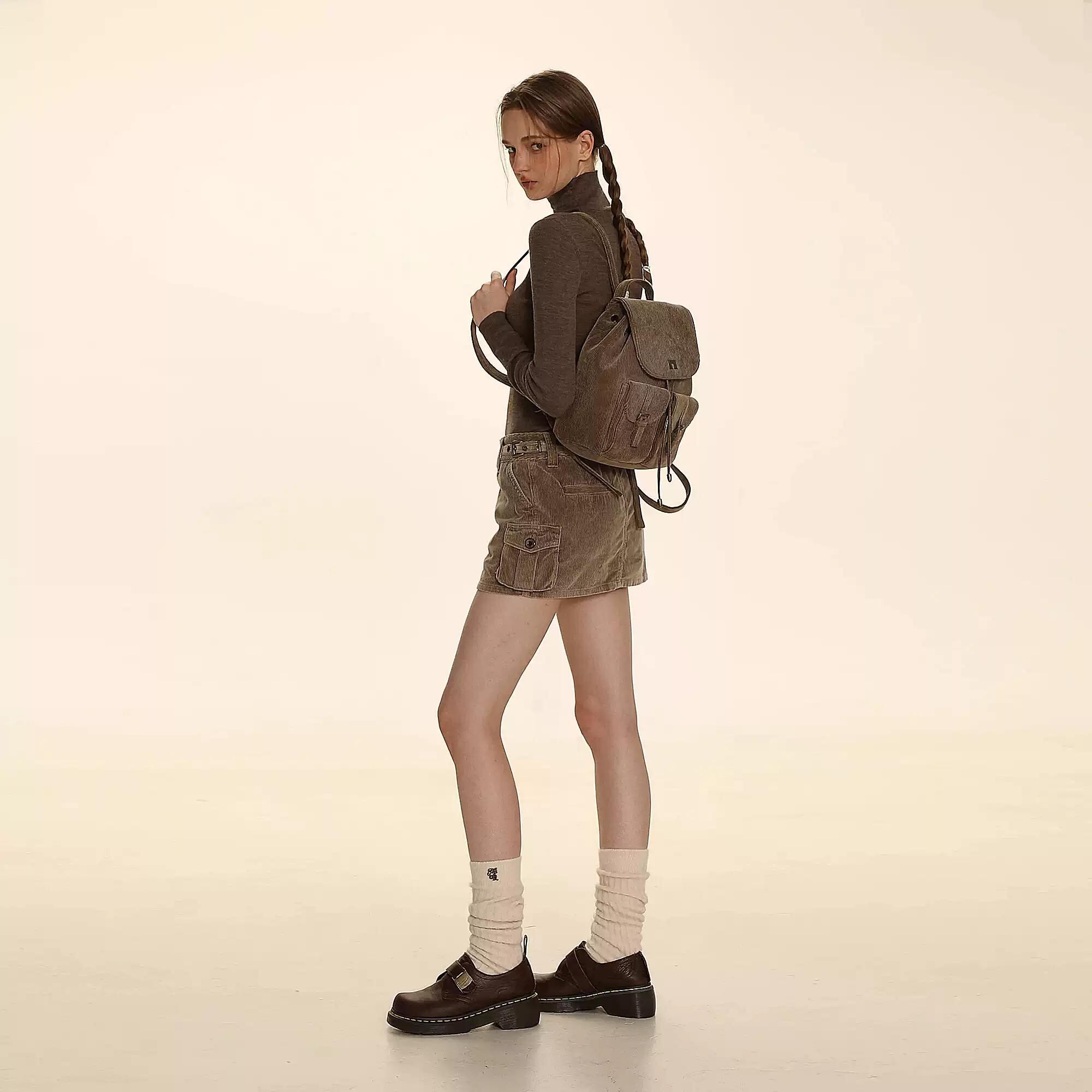 [moromoro2] Corduroy Double-pocket Backpack | creeptrey