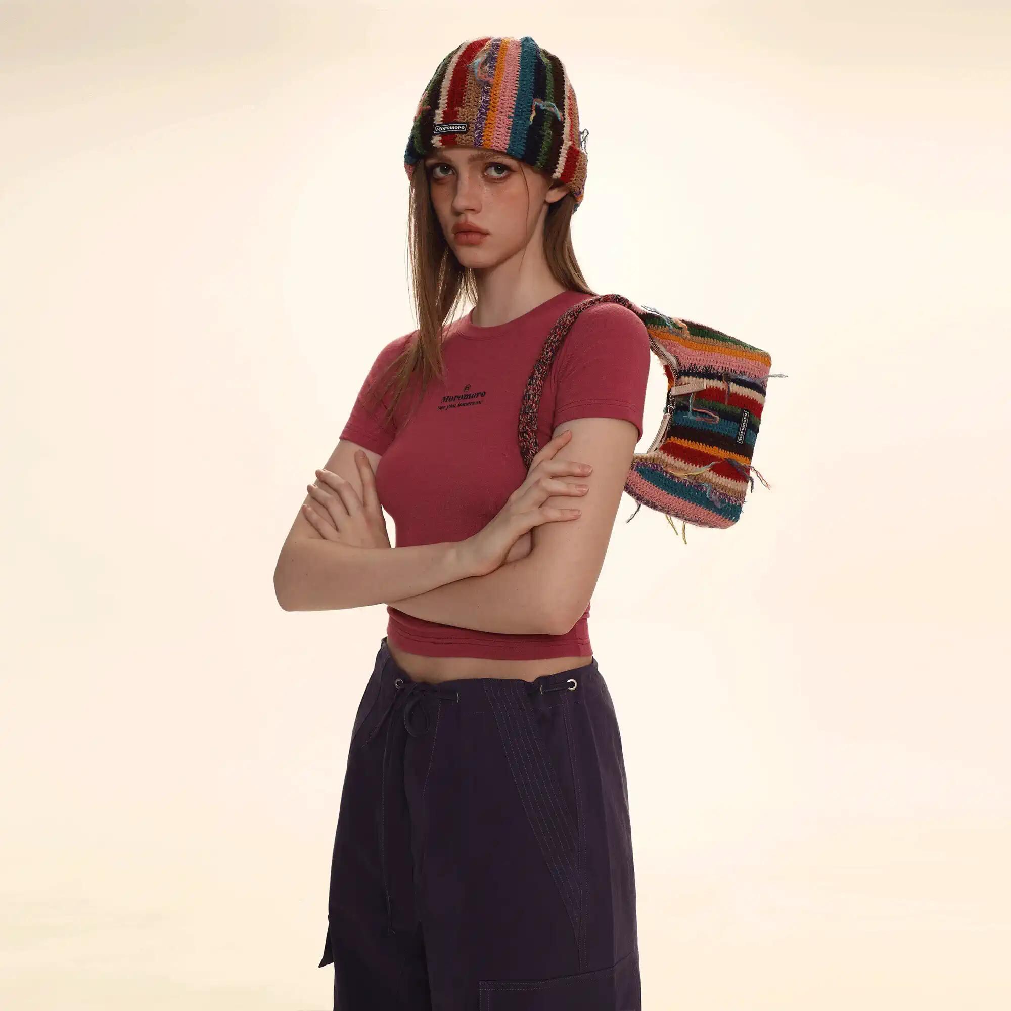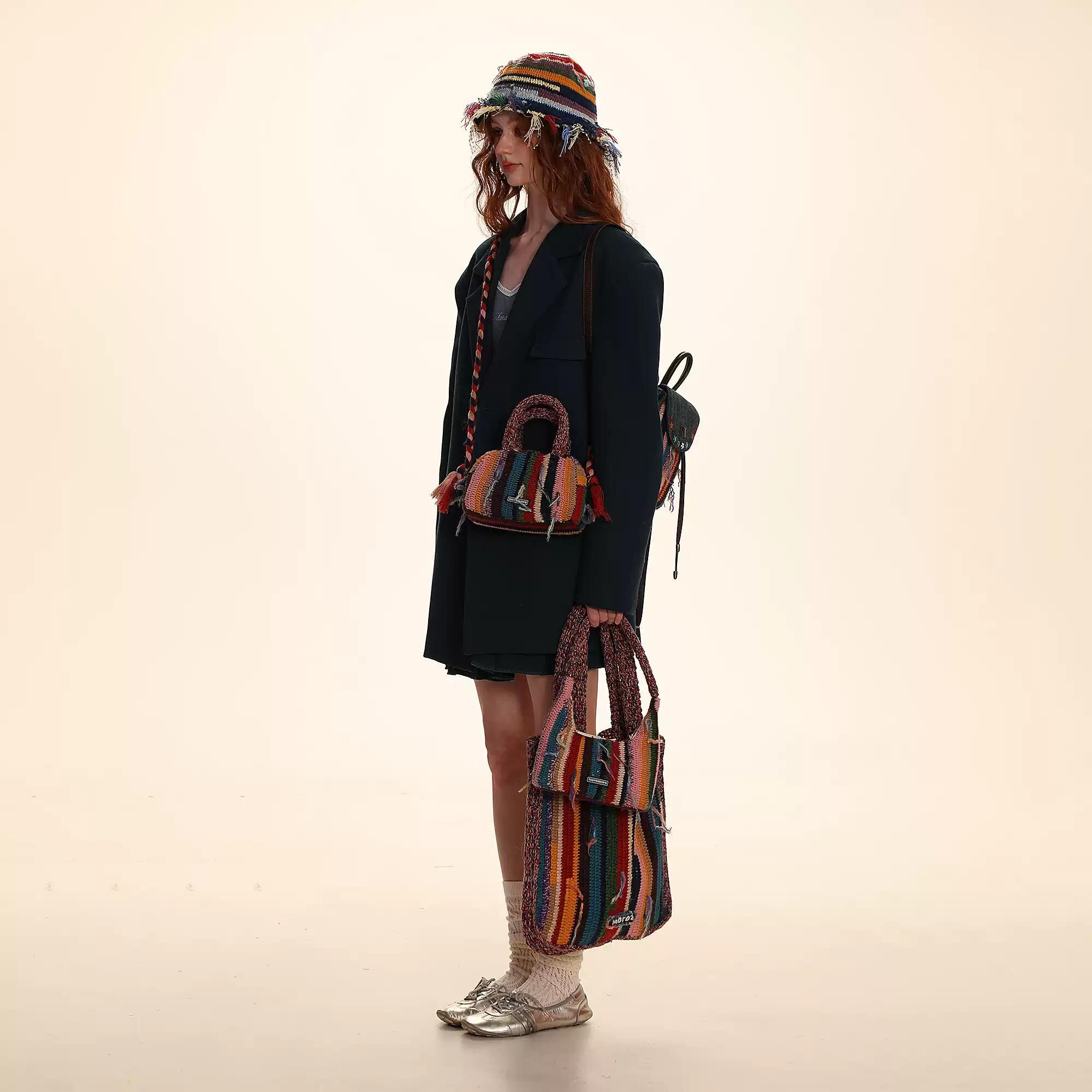 [moromoro2] Gradient Fringe Striped Shoulder Bag