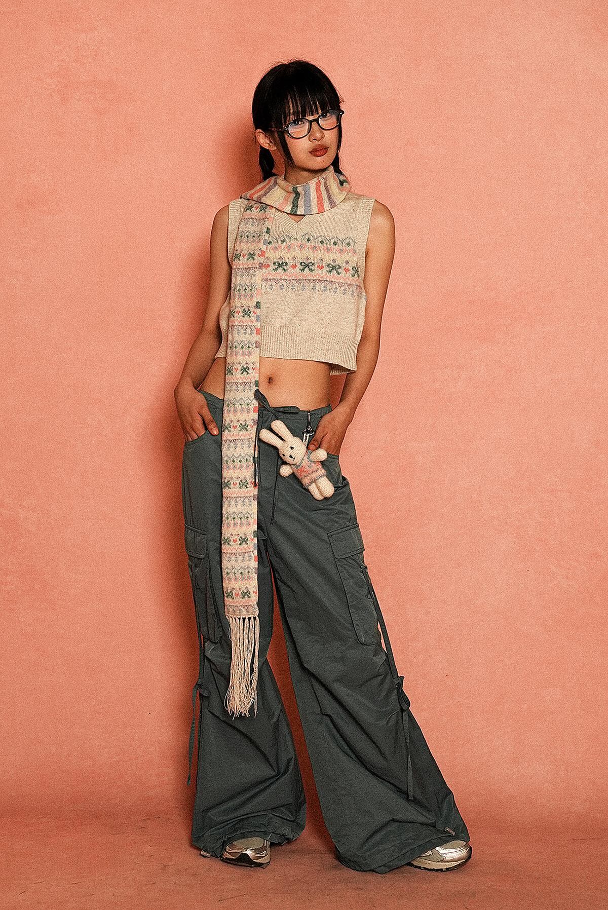 [moromoro2] Fair Isle Patterned Bow Scarf | creeptrey