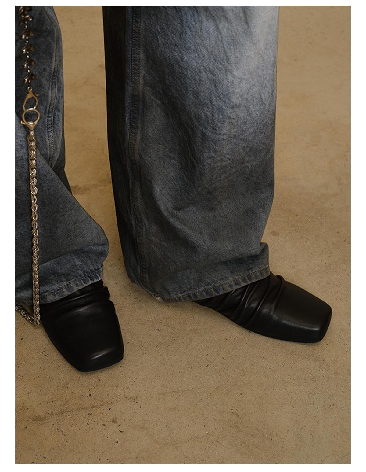[JCAESAR STUDIO] Leather Slipper - Wrinkled Leather Soft Ballet-style Slip-ons | creeptrey