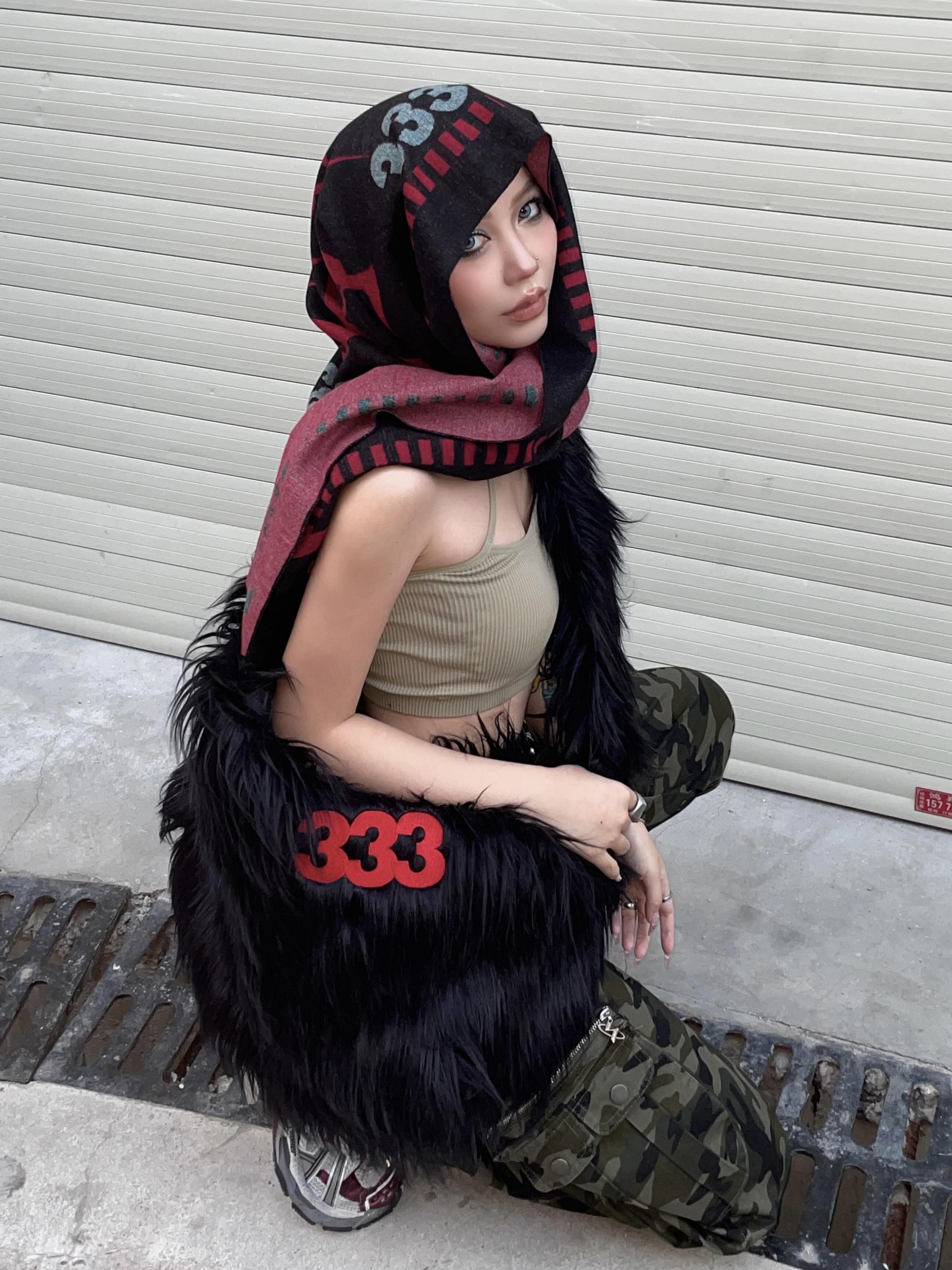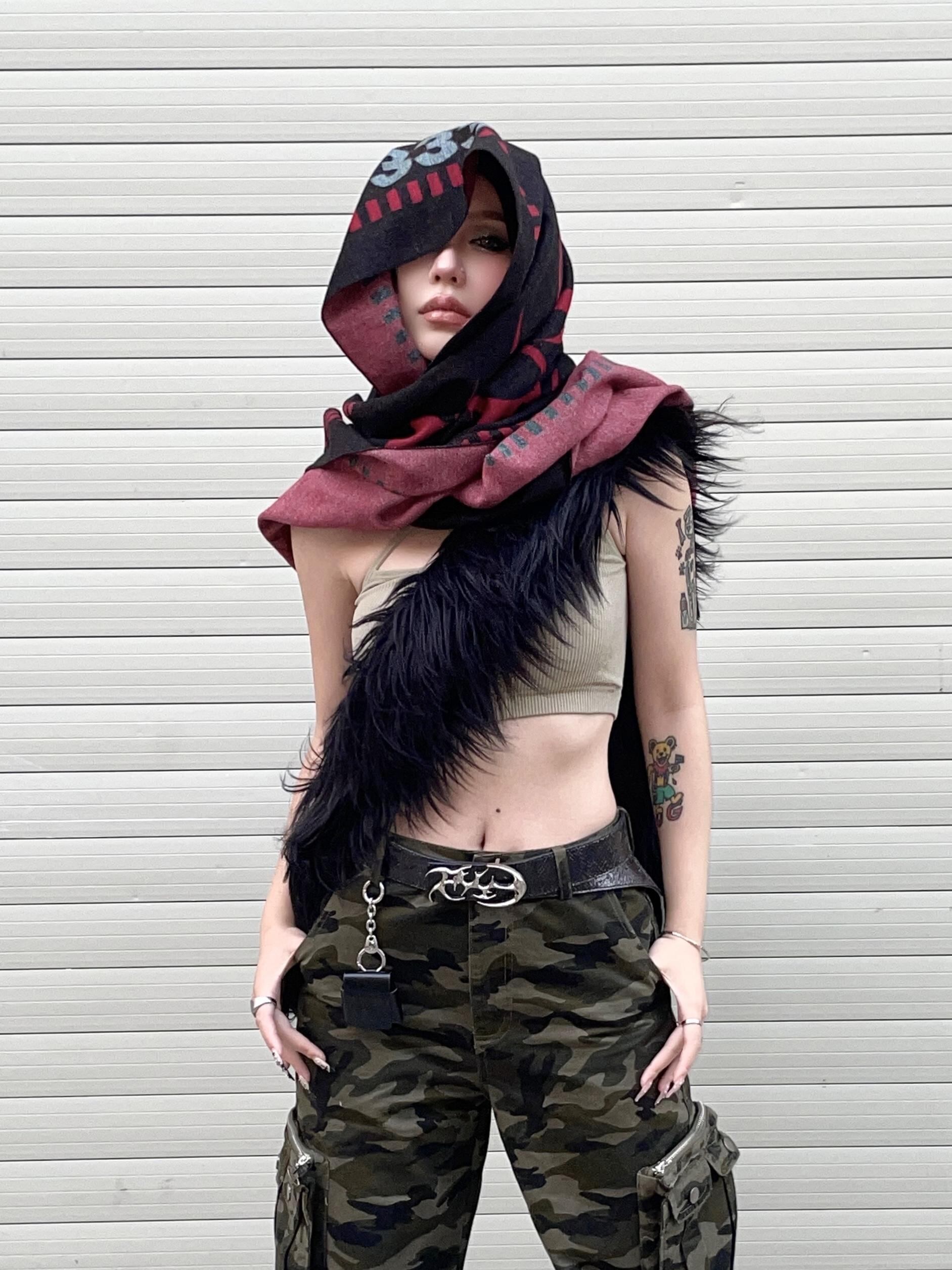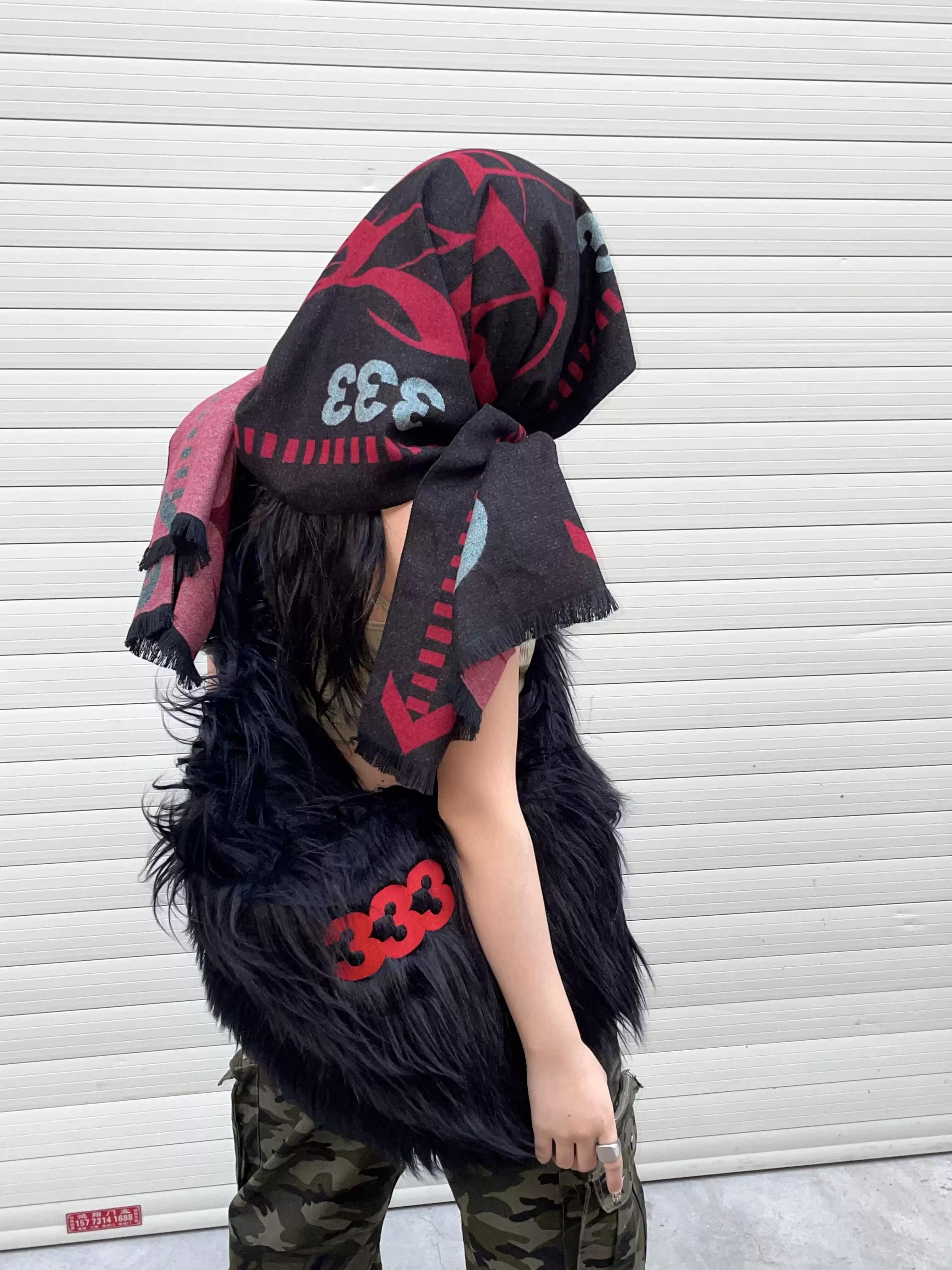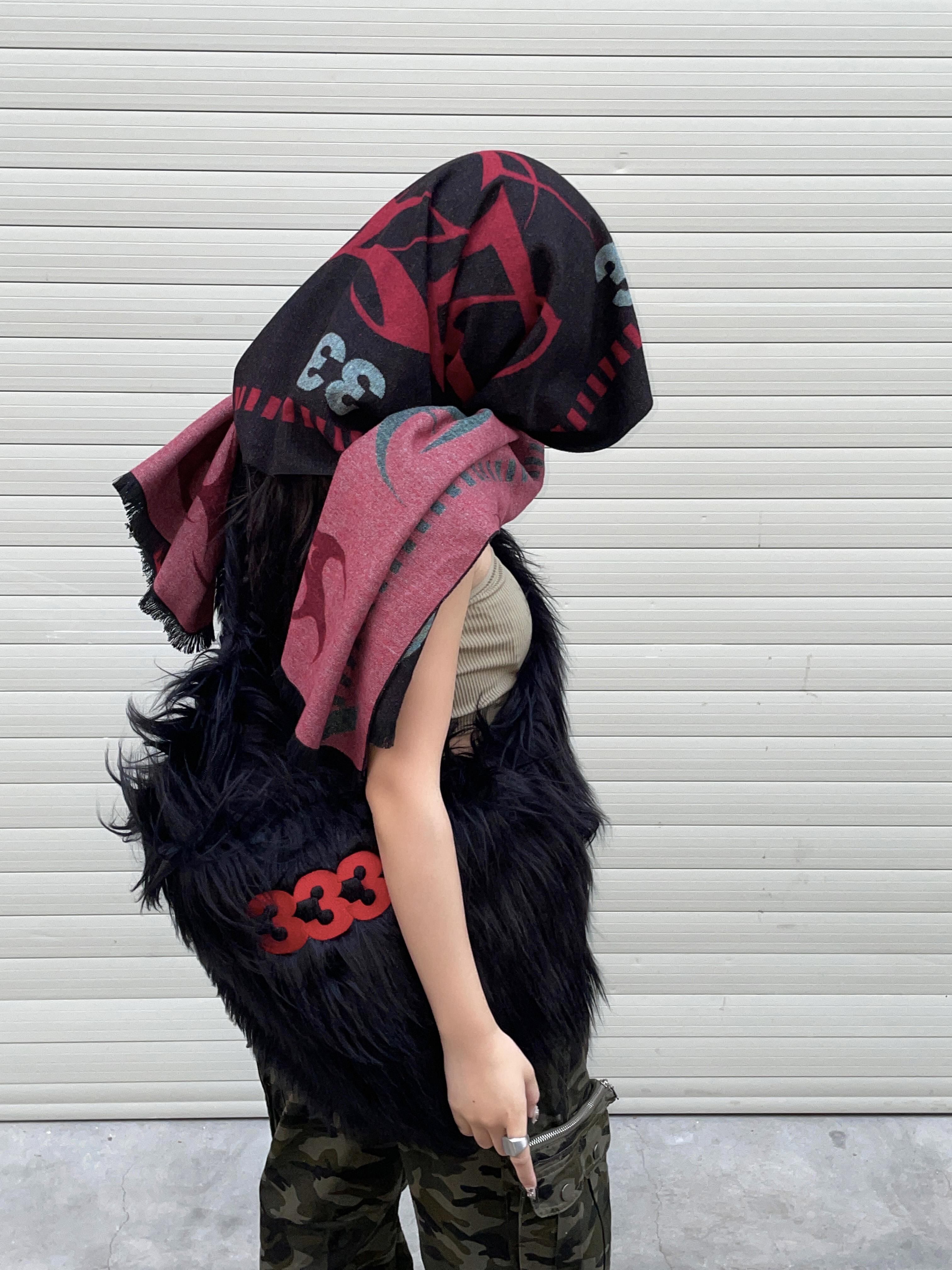 [PCCVISION] 3MAN0N Black & Red Long Wool-like Scarf | creeptrey