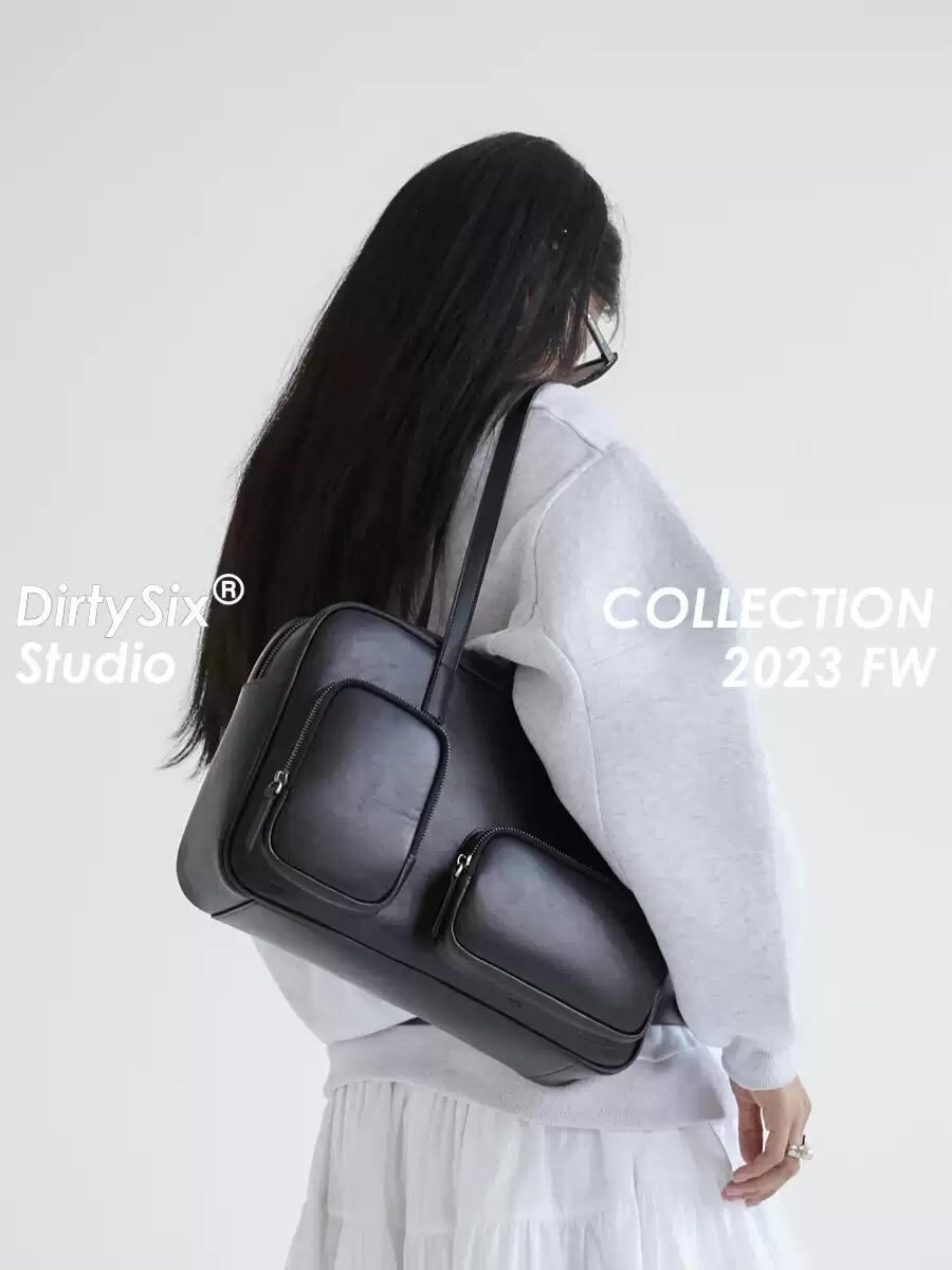 [DIRTY SIX] "Piye Toast" Bag - Large Capacity Multi-pocket Leather Shoulder Bag | creeptrey