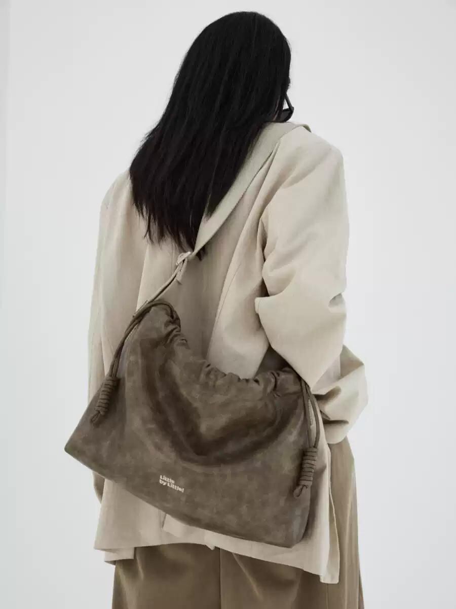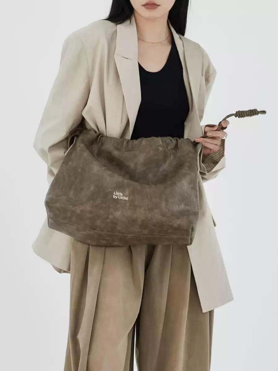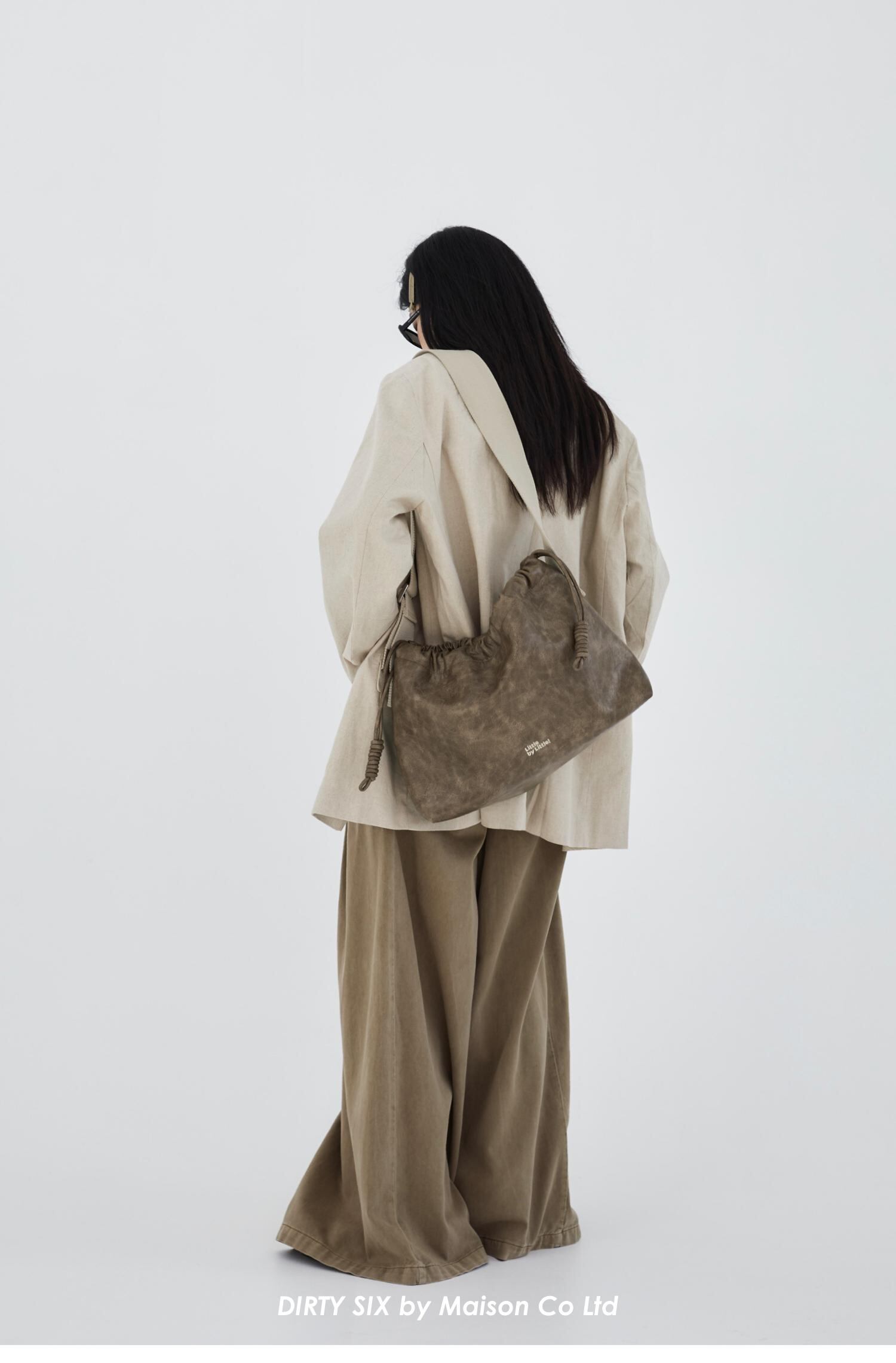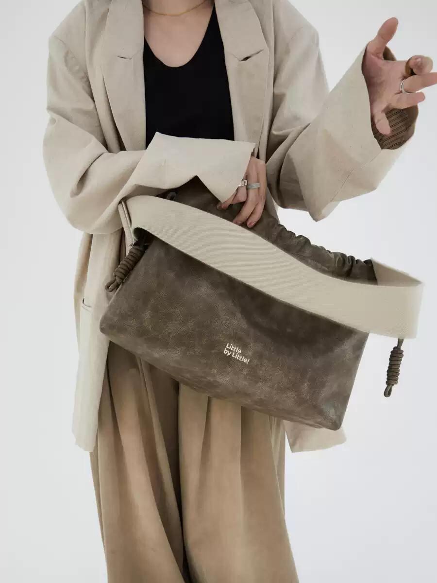 [DIRTY SIX] "Little by Little" Wide Strap Leather Drawstring Brick Bag | creeptrey