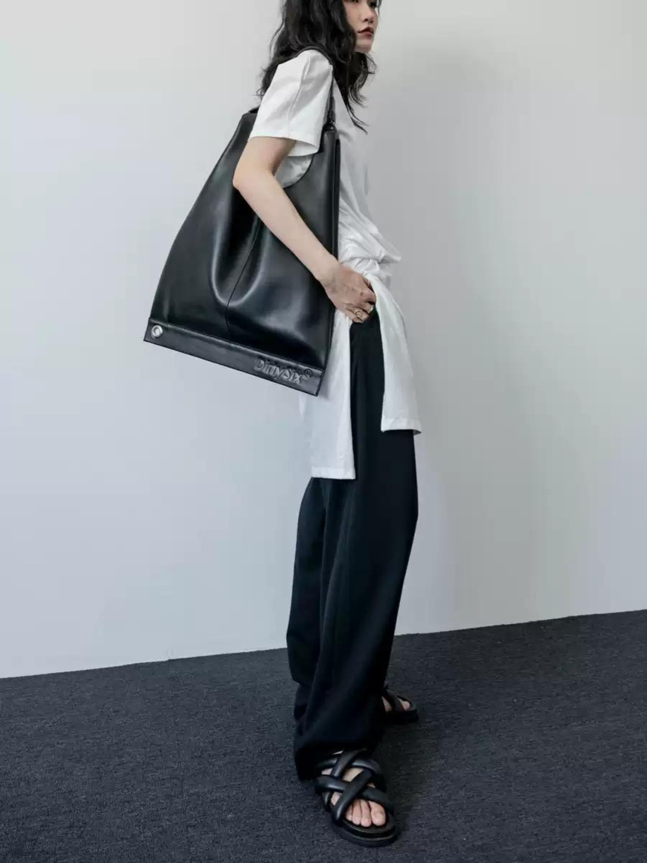 [DIRTY SIX] "Grocery 01" Logo Printed Leather Tote