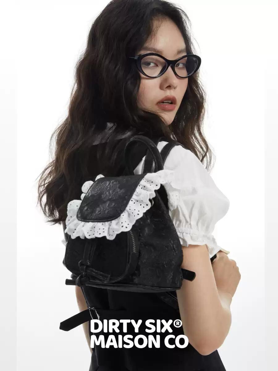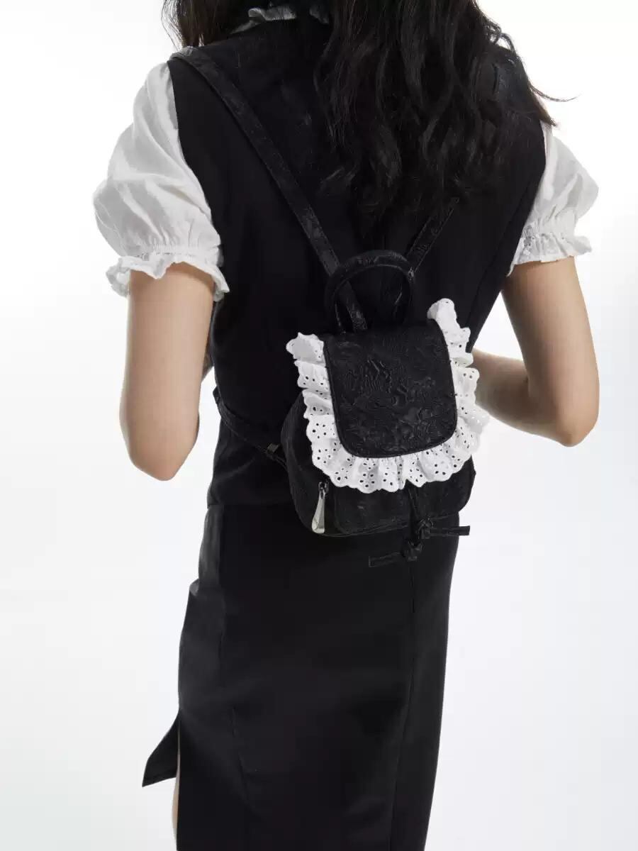 [DIRTY SIX] "Bonjour!" Playful Ruffled Drawstring Backpack | creeptrey