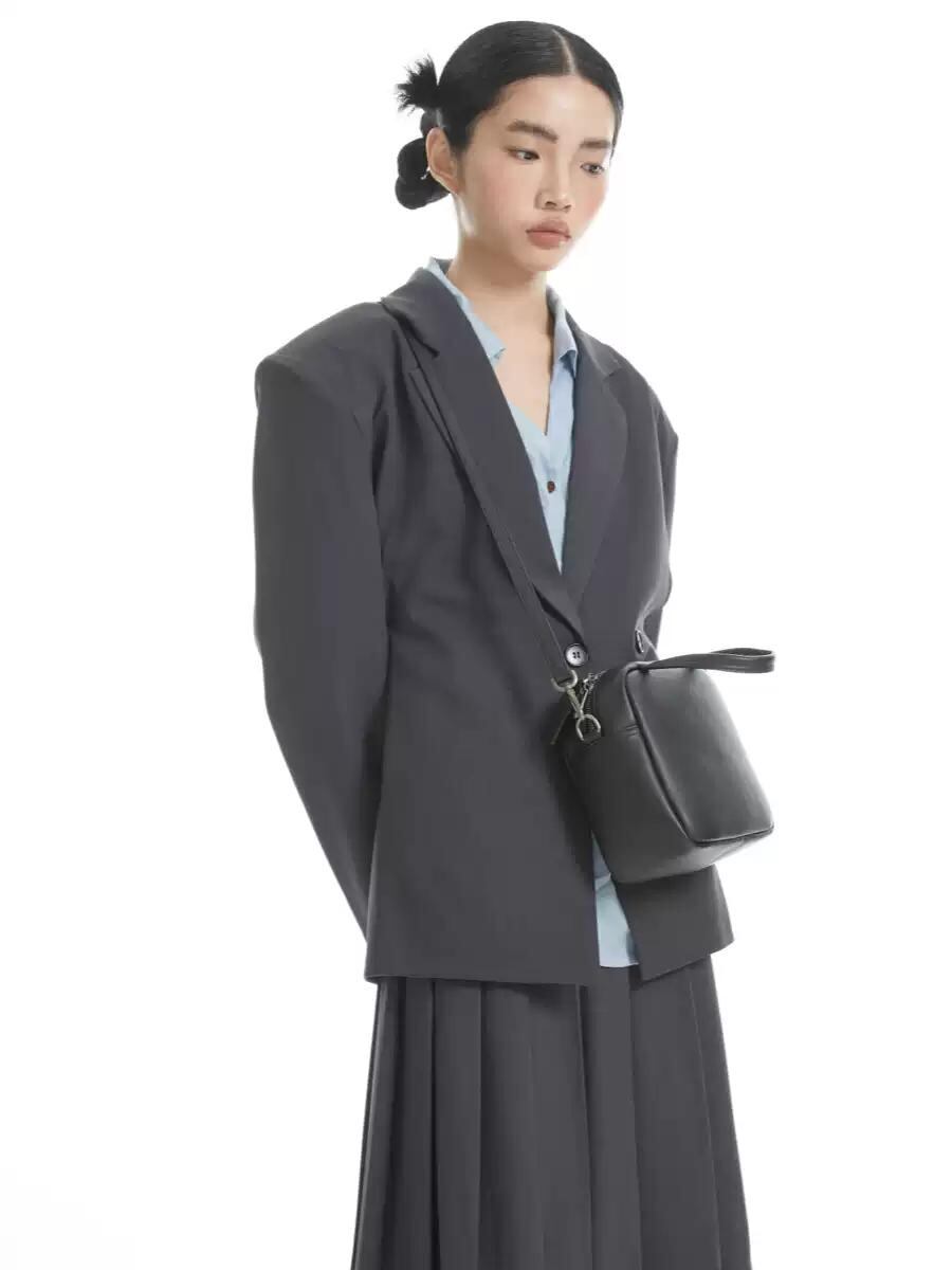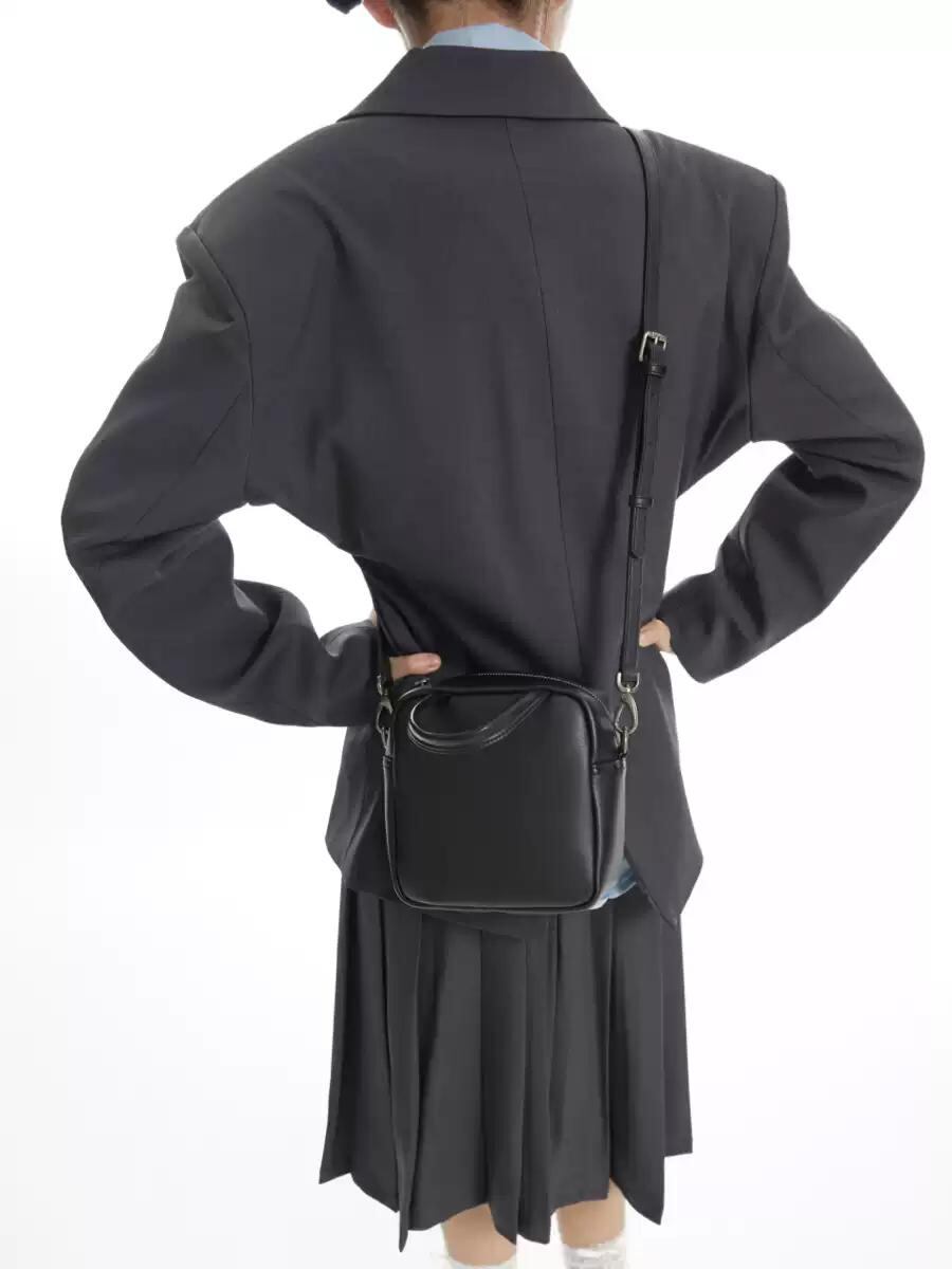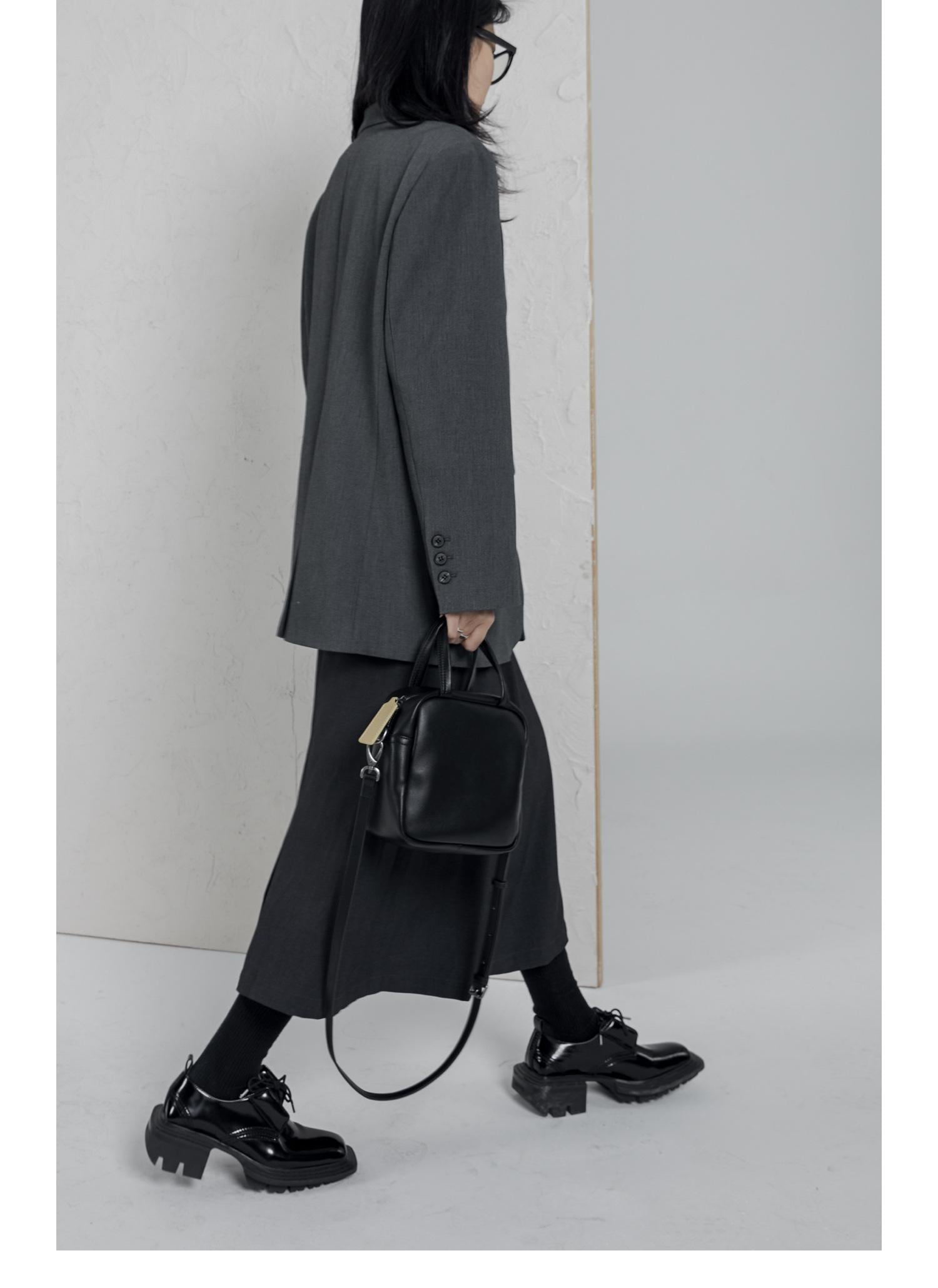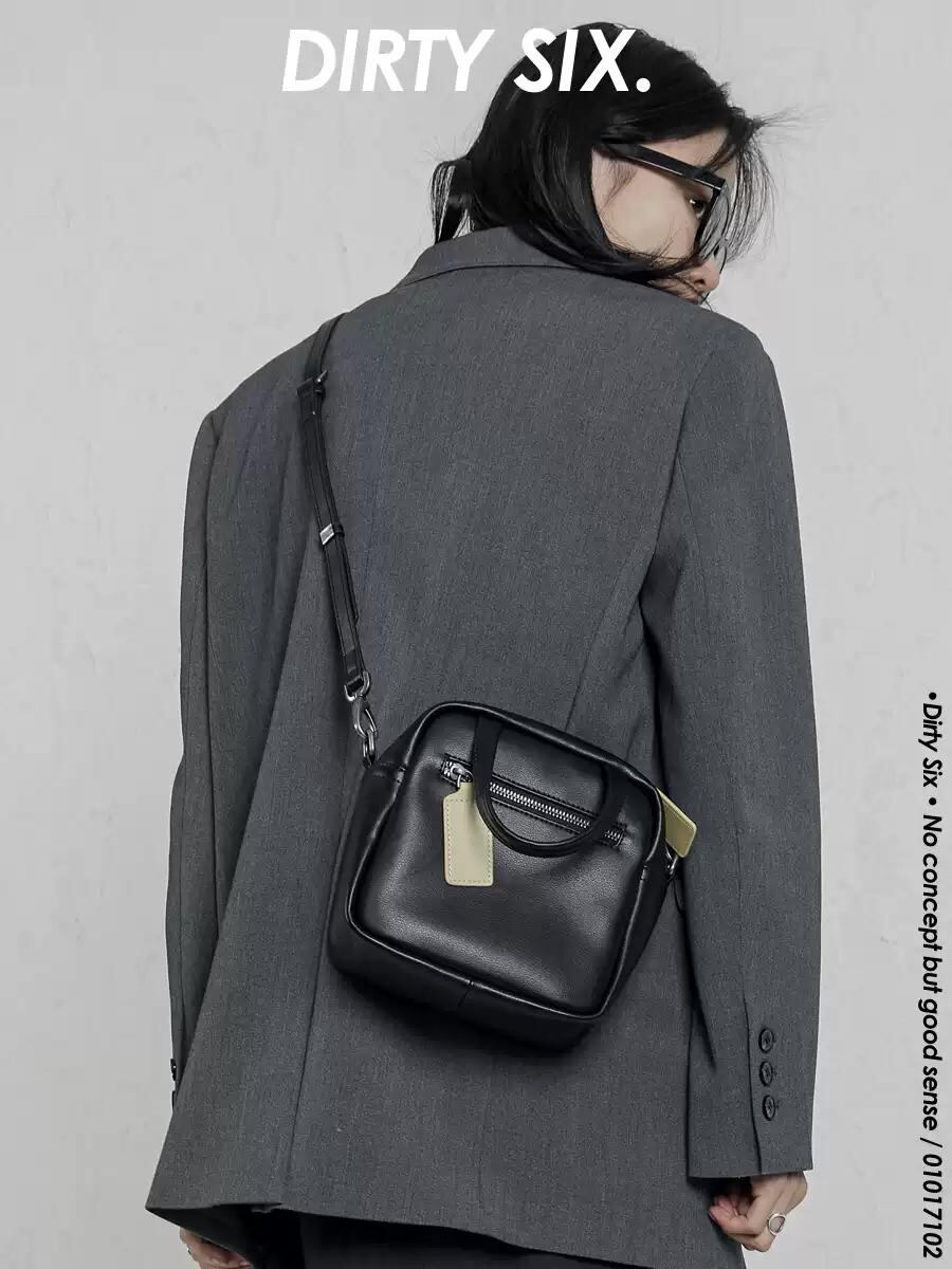 [DIRTY SIX] "Brown Sugar Custard" Leather Small Box Bag with Contrast Stitching | creeptrey