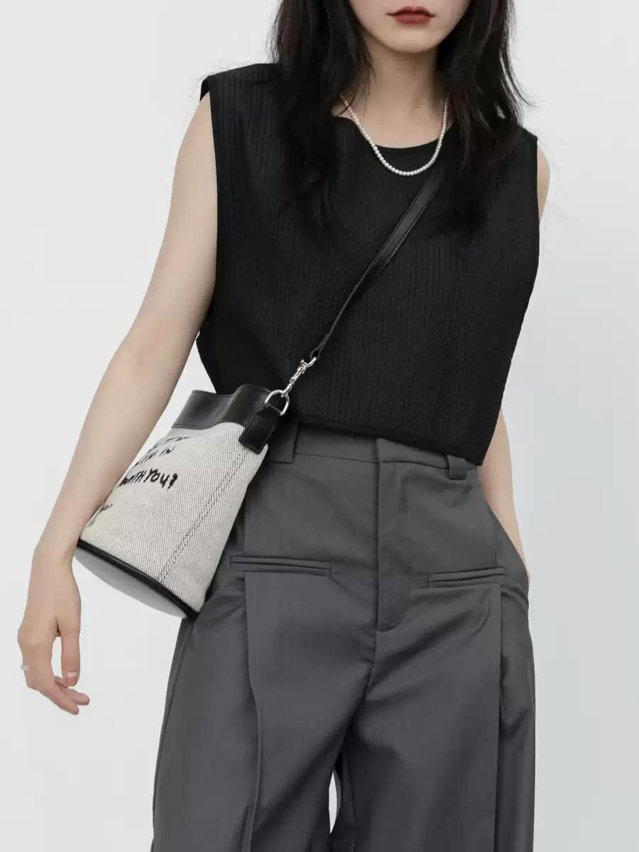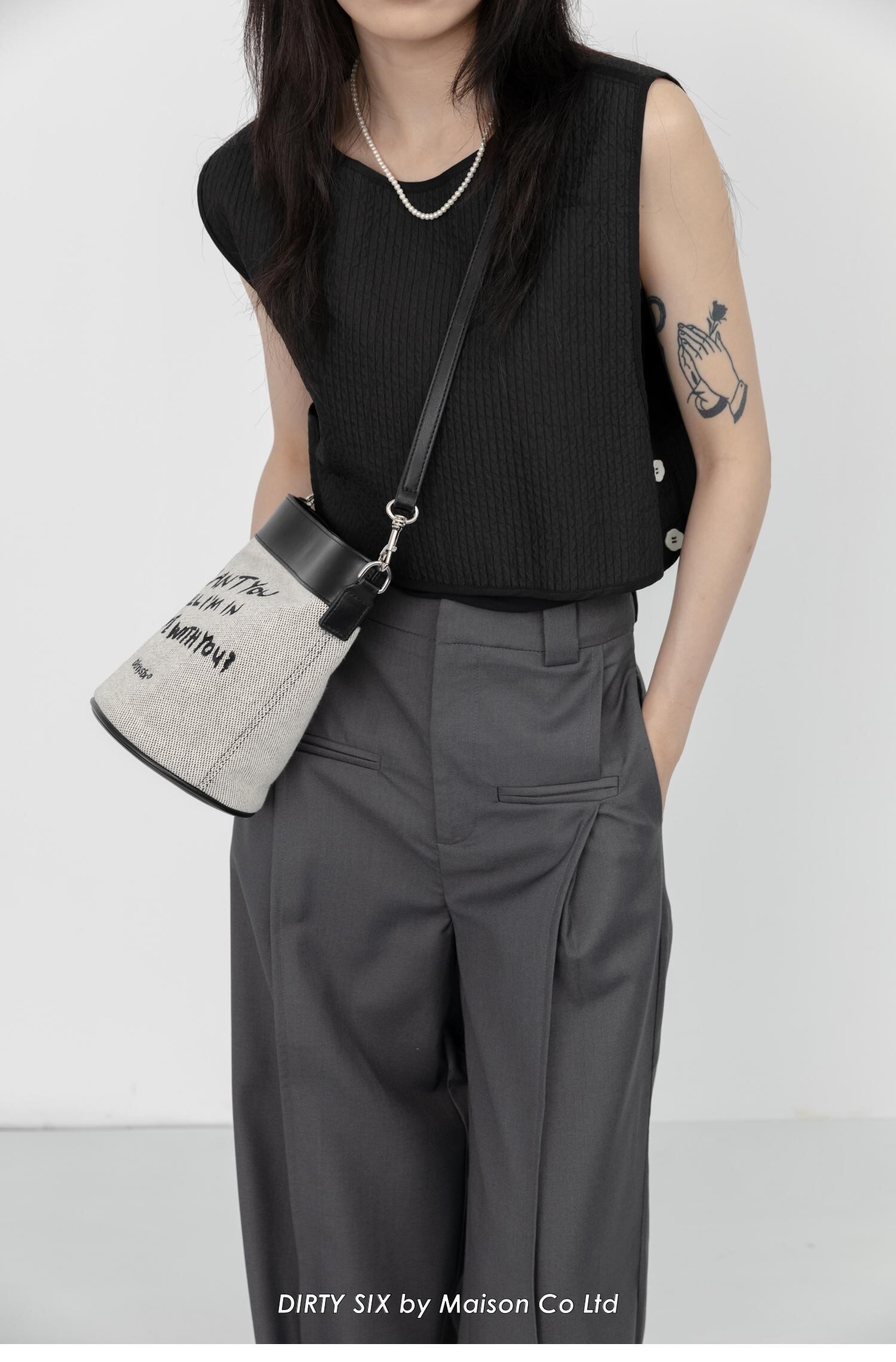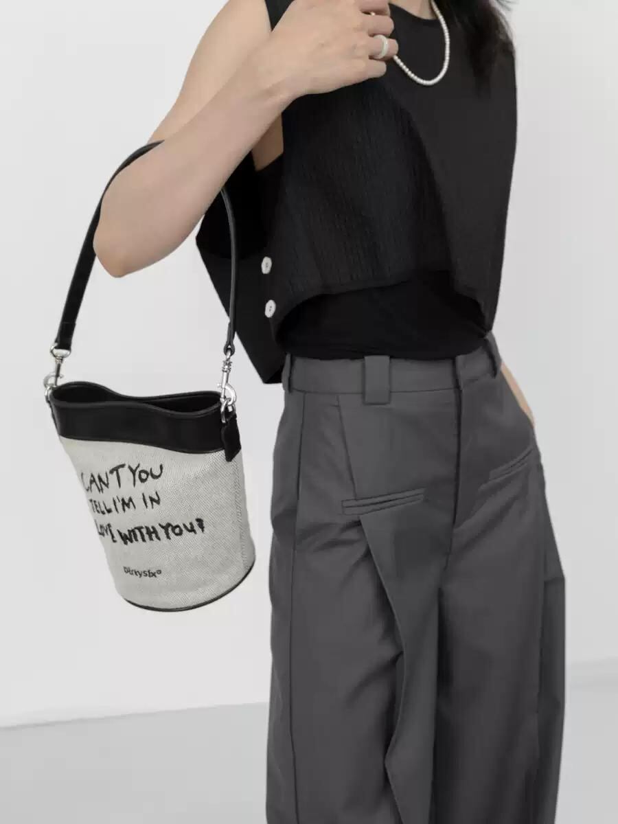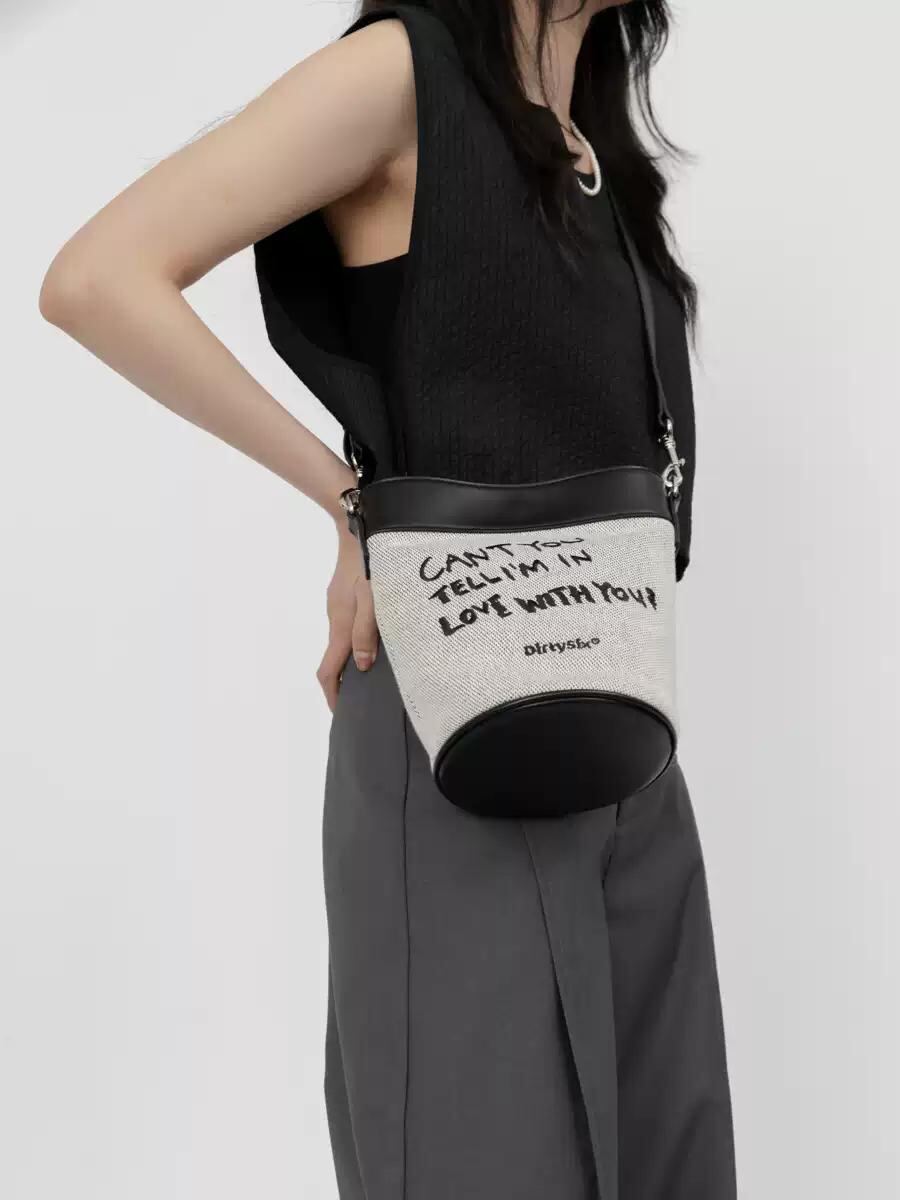[DIRTY SIX] "Amourie Bucket" Embroidered Leather Patchwork Shoulder Bag | creeptrey