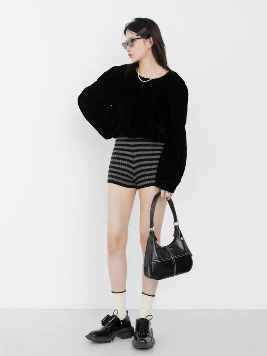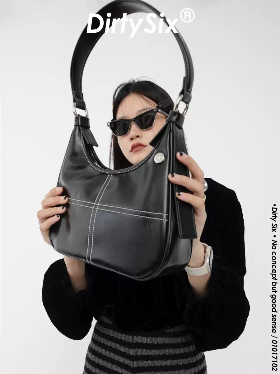 [DIRTY SIX] "Blacktail HOBO" Soft Glossy Leather Cross-stitched Underarm Bag | creeptrey