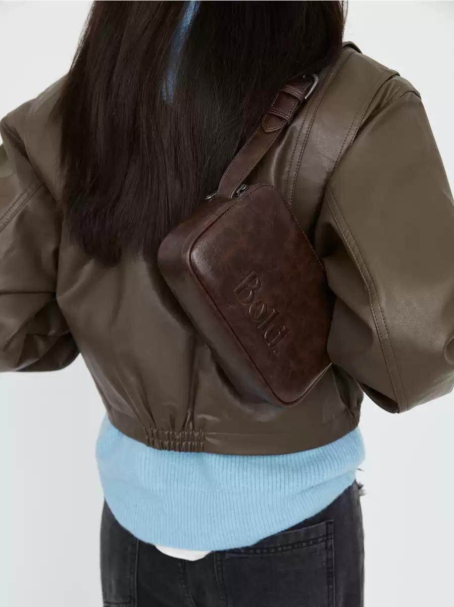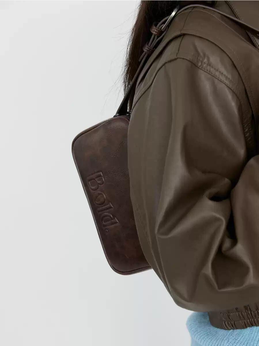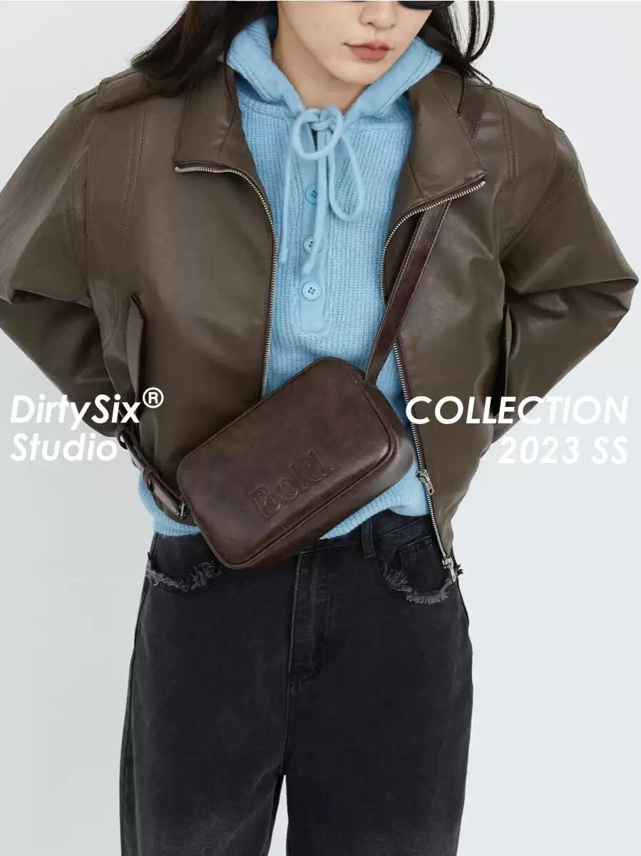 [DIRTY SIX] "Bold Convex" Vintage Dyed Leather 3-layer Zipper Box Bag | creeptrey