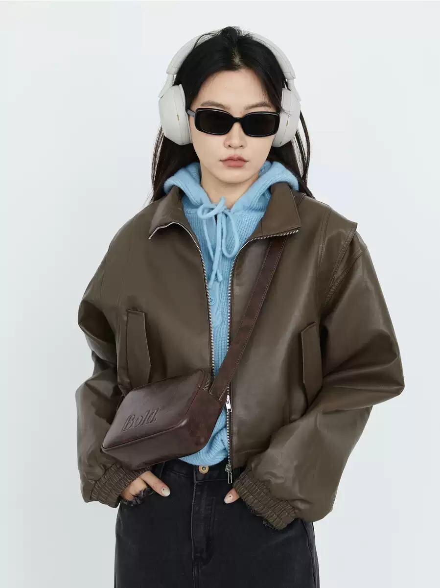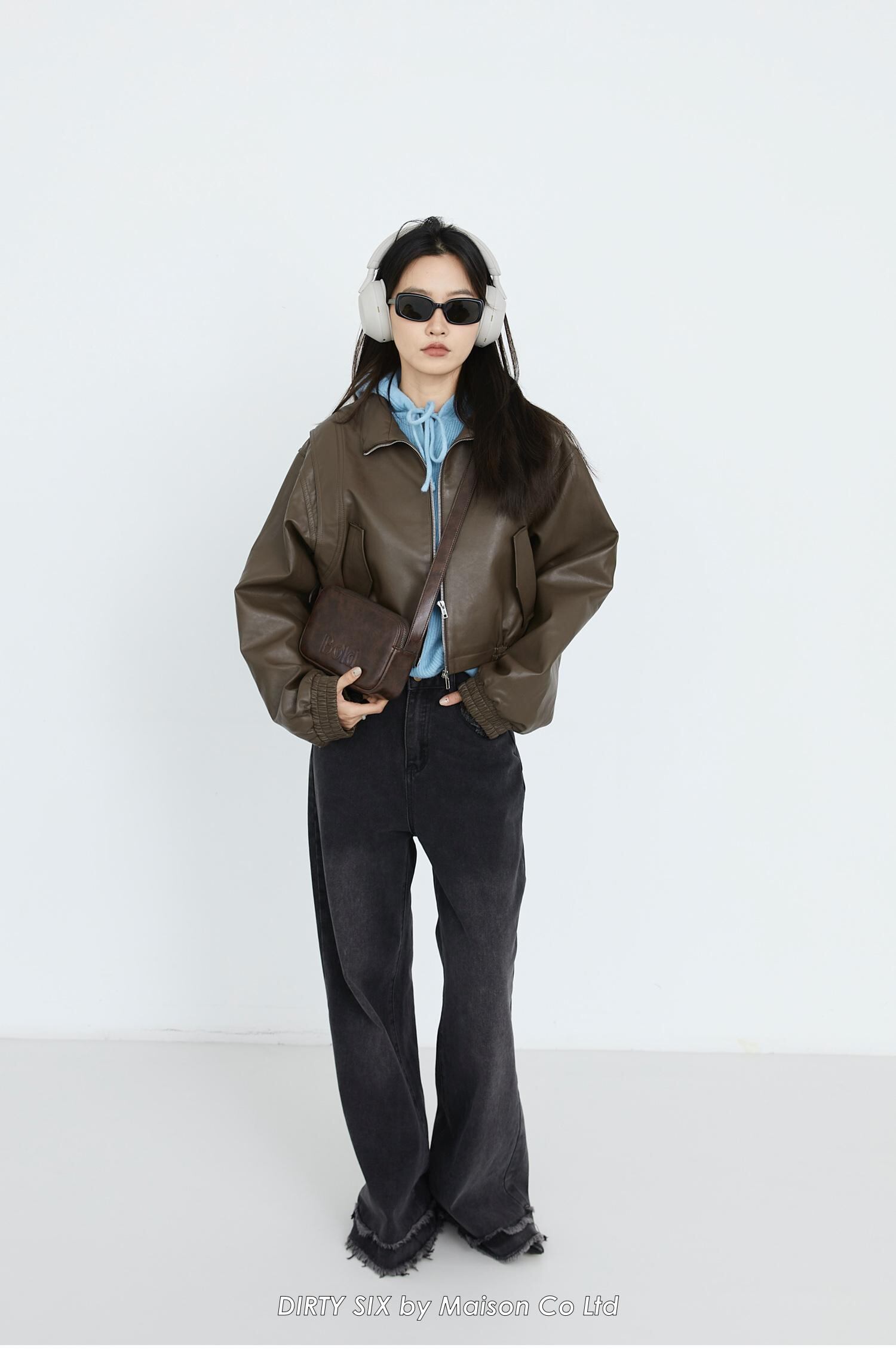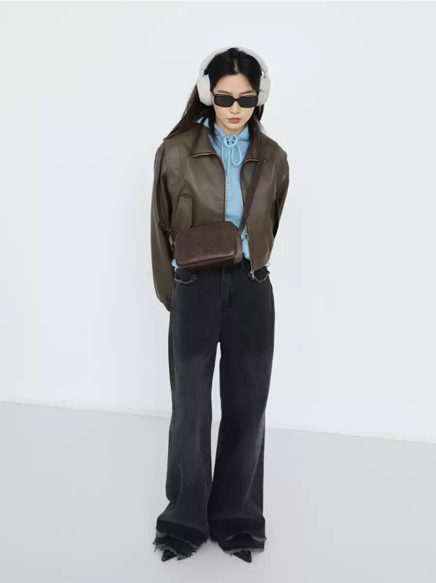 [DIRTY SIX] "Bold Convex" Vintage Dyed Leather 3-layer Zipper Box Bag | creeptrey