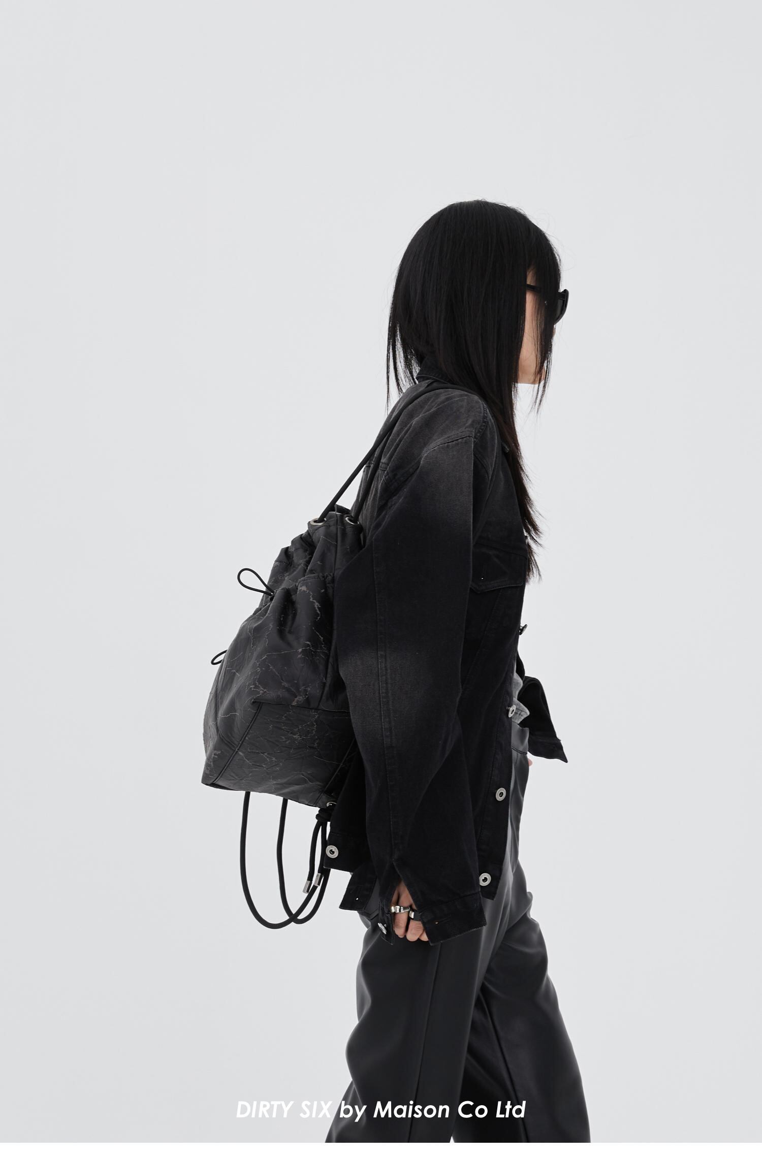 [DIRTY SIX] "Whiplash Max" Wrinkled Drawstring Backpack | creeptrey