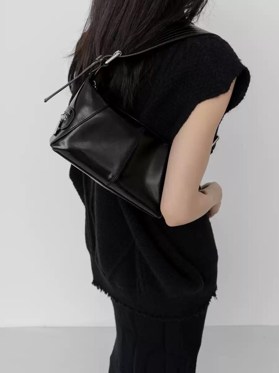 [DIRTY SIX] "Grant Motorcycle" Bag - Double-hole Glossy Leather Underarm Bag | creeptrey