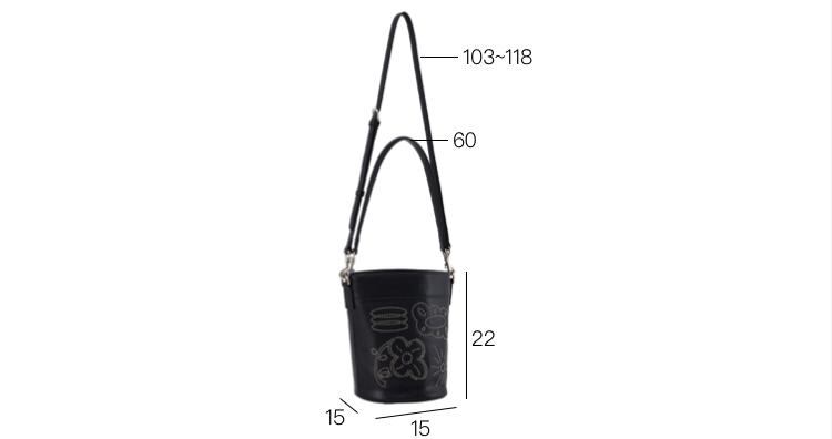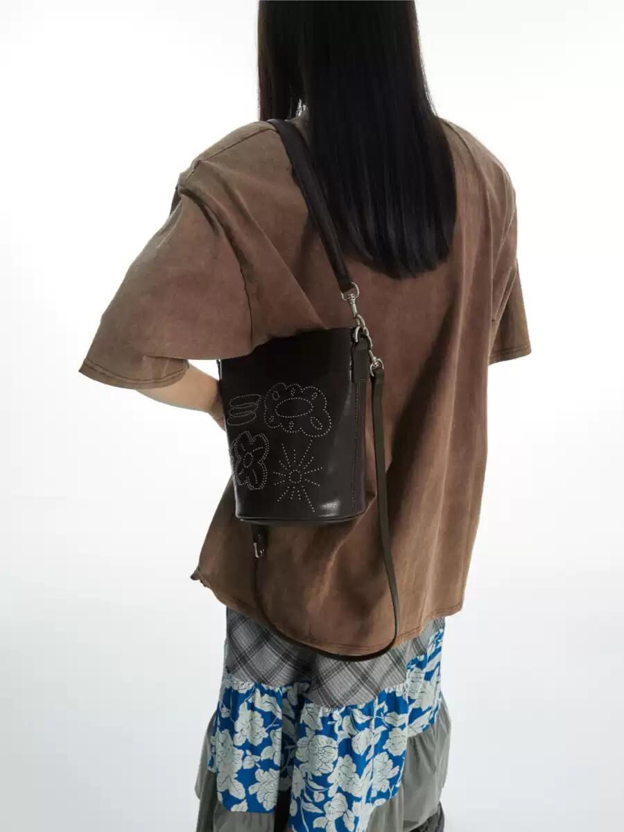 [DIRTY SIX] "FAFA Bang Bang Bucket" Leather Bucket Bag with Bead Studded Straps