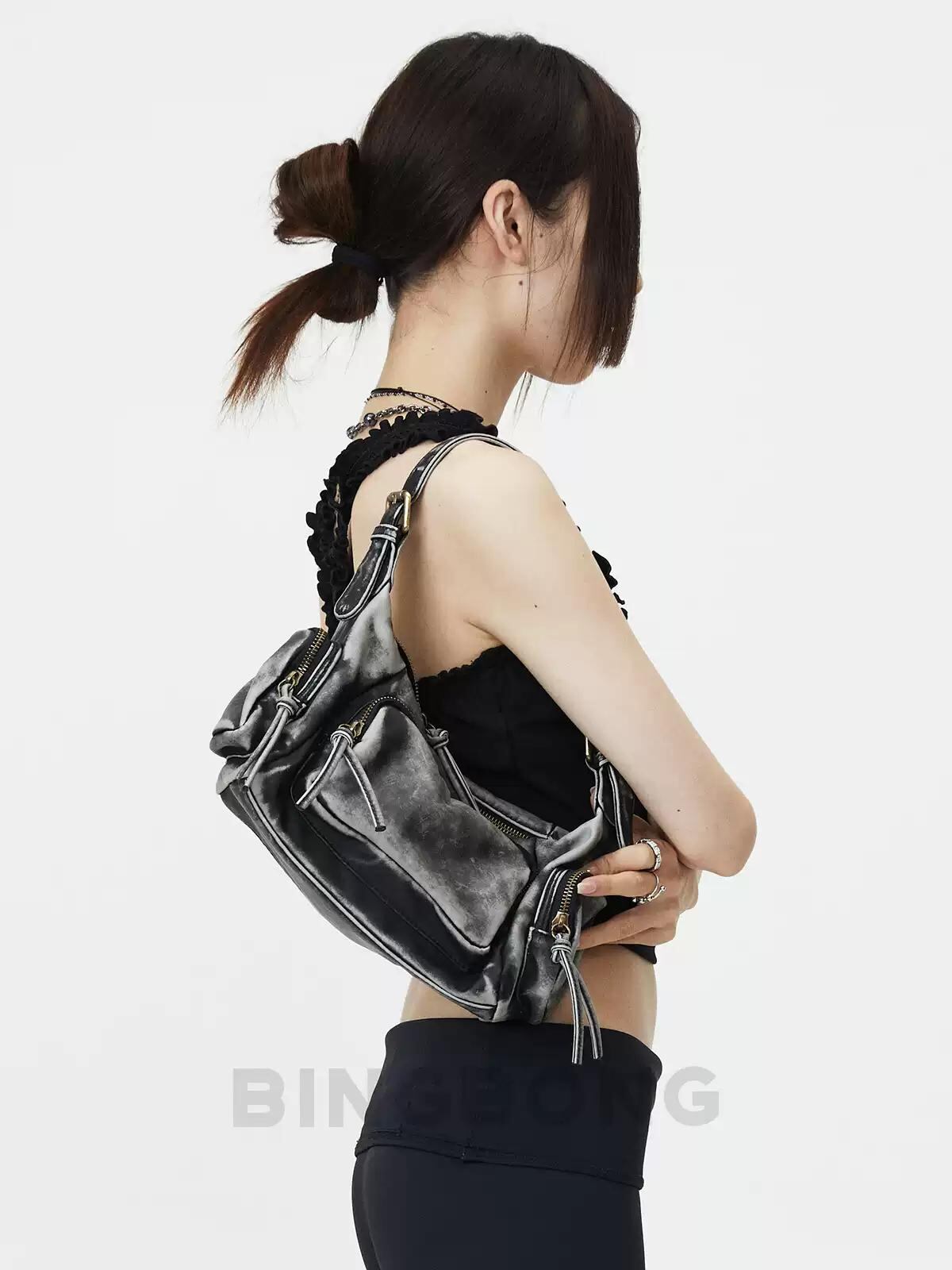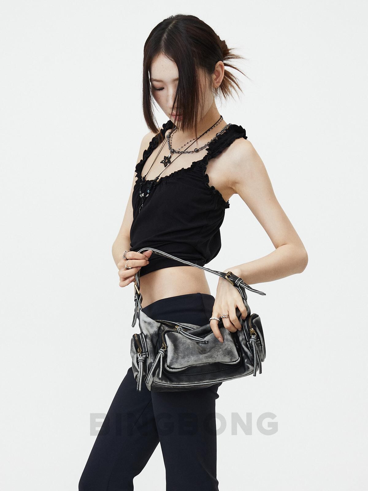 [BINGBONG] Babylon Retro Gray Motorcycle Shoulder Bag | creeptrey