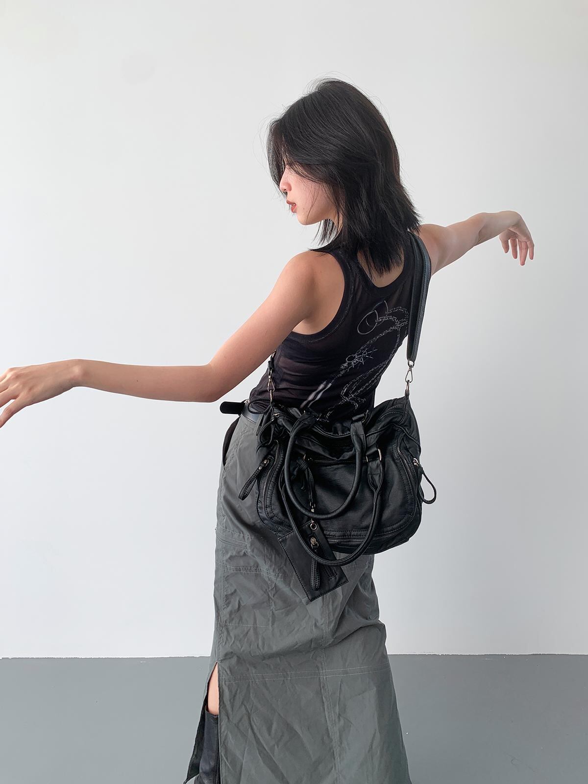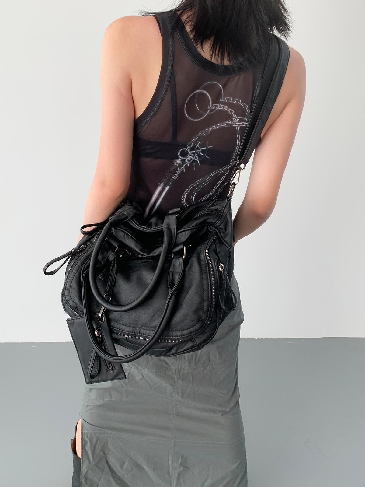 [BINGBONG] Soft Large Capacity Dark Retro Motorcycle Tote Bag | creeptrey