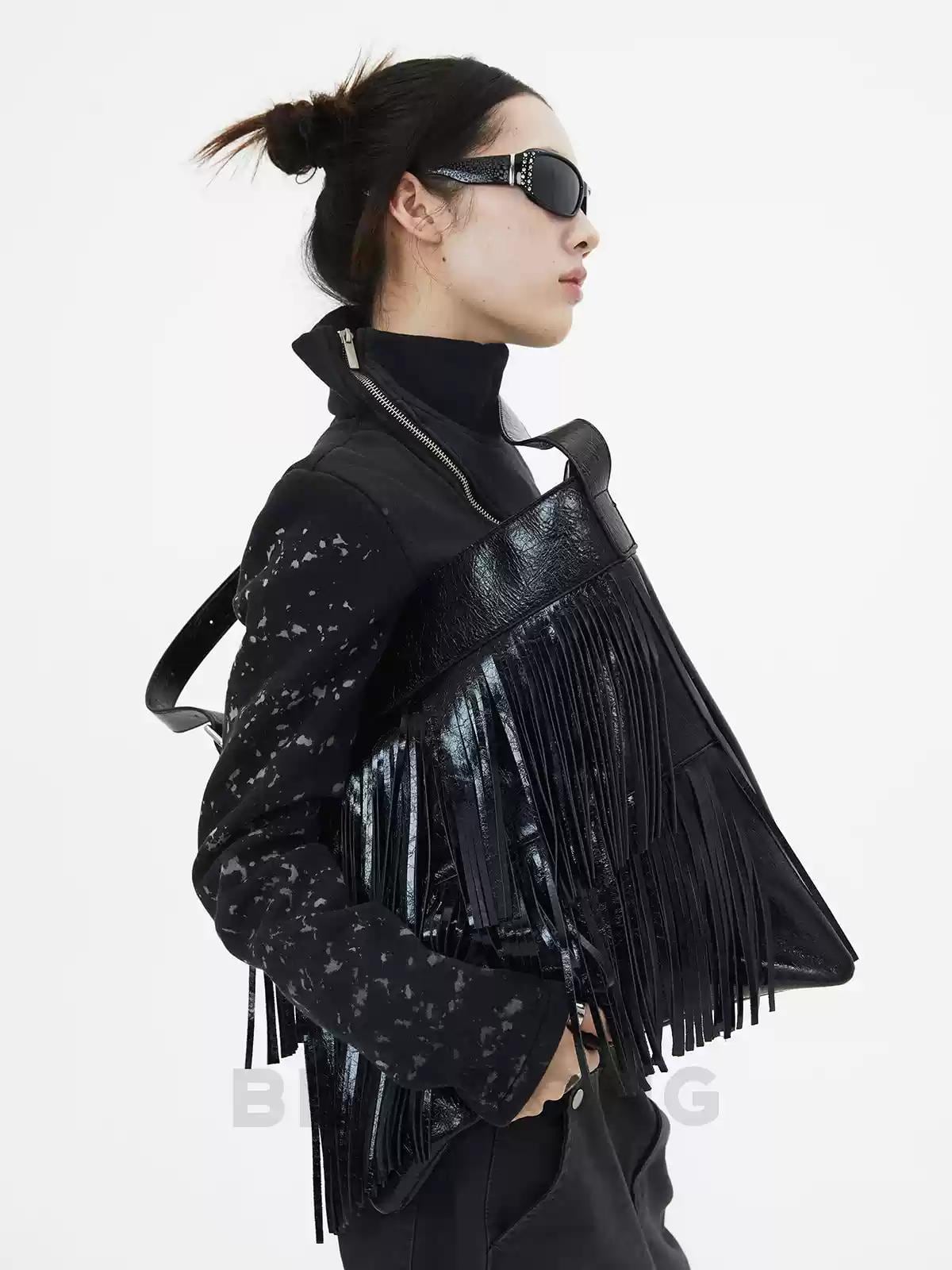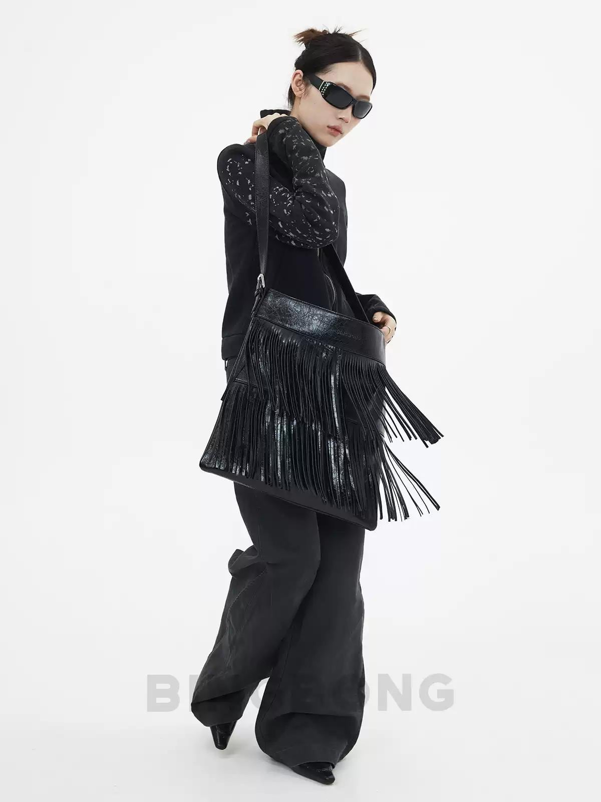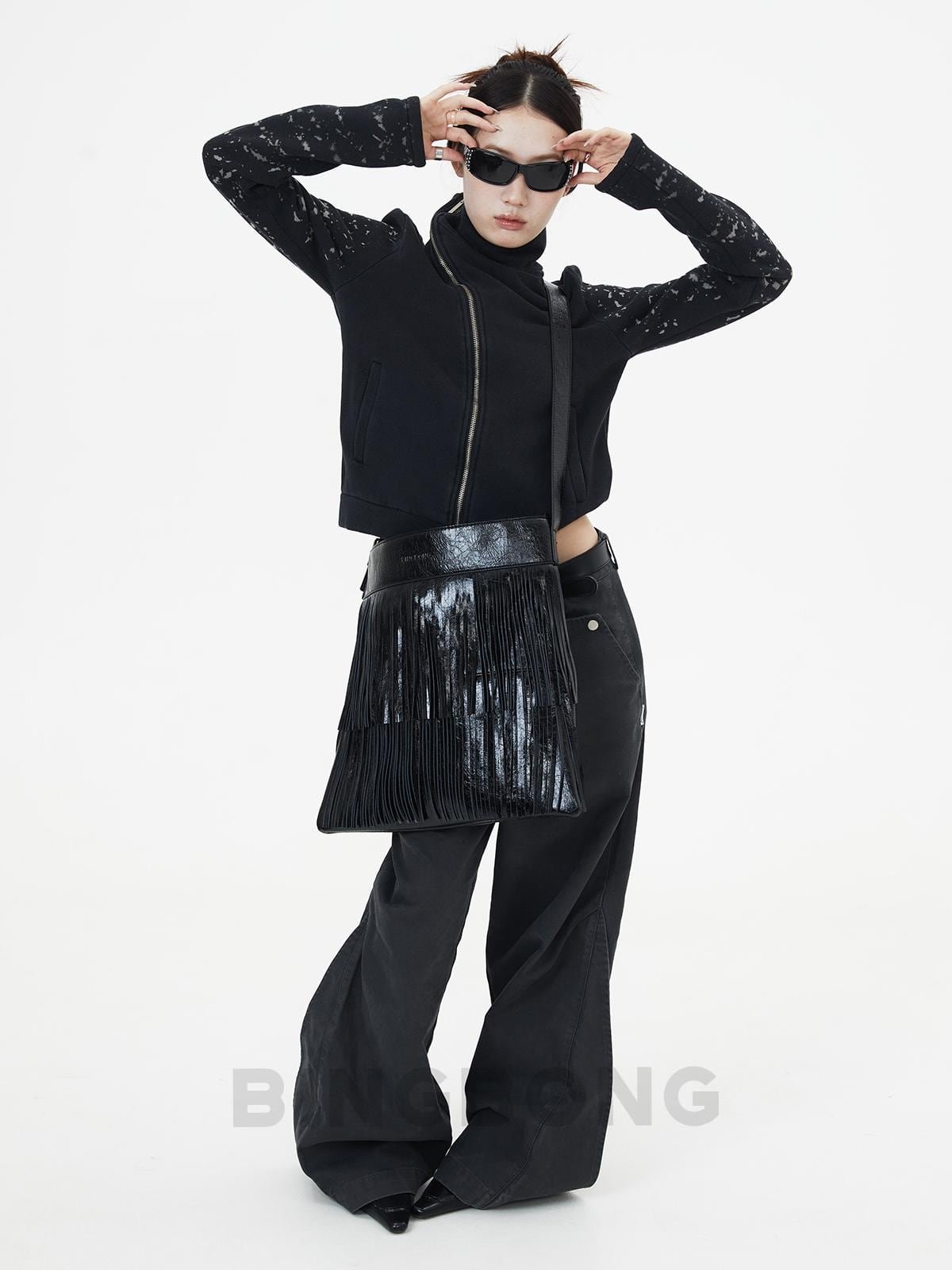[BINGBONG] Samurai Fringe Distressed Black Hippie Crossbody Bag | creeptrey